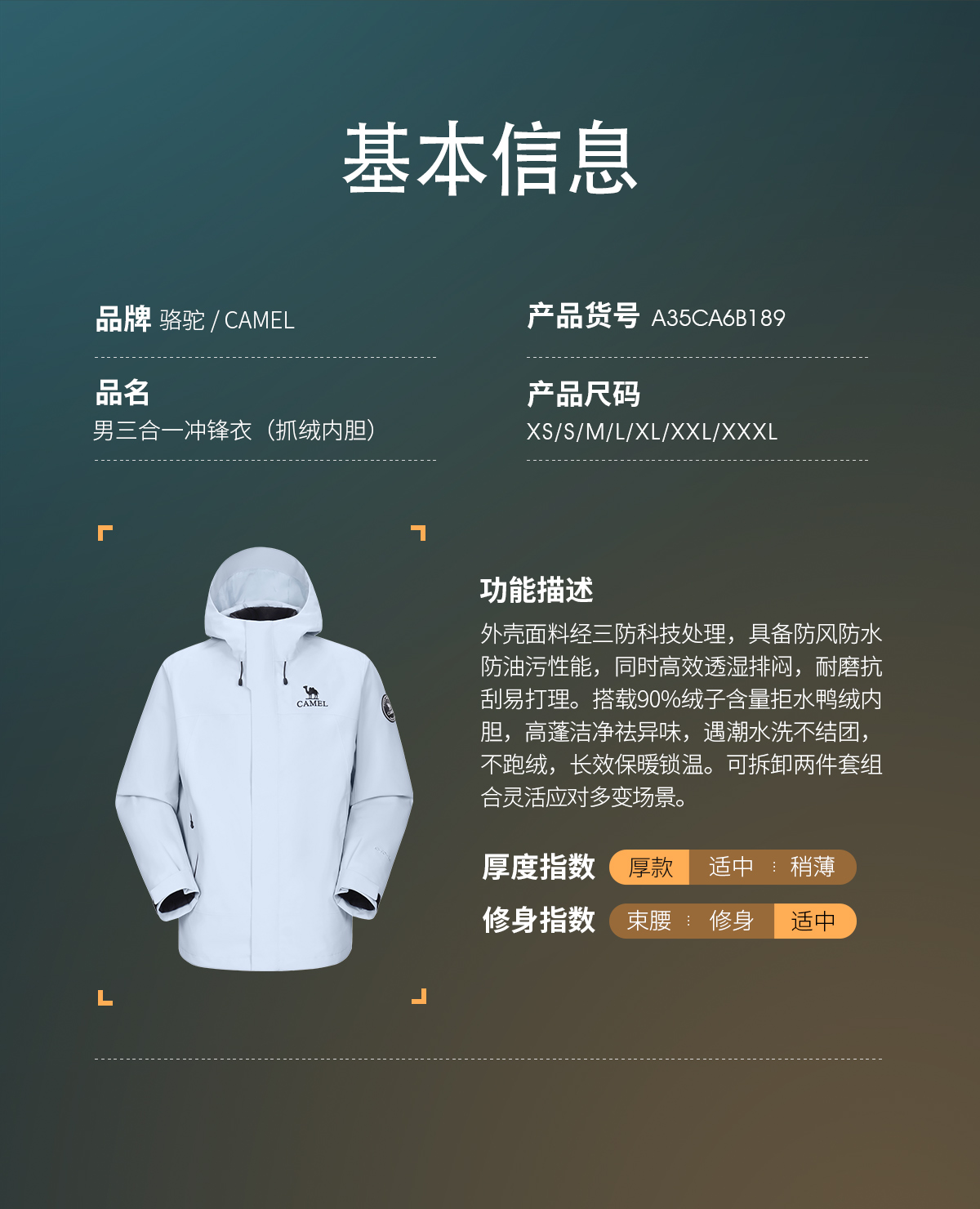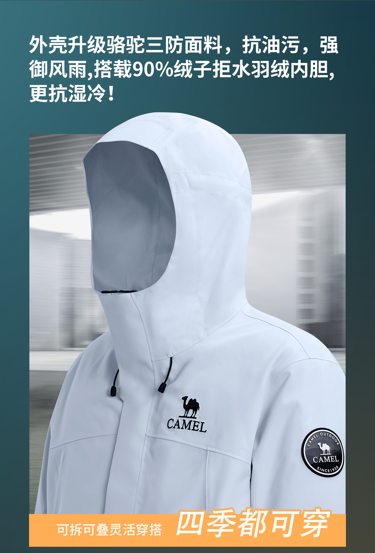 Camel Brand Three-In-One down Jacket for Men and Women, New Winter down Liner Jacket, Windproof and Waterproof Mountaineering Clothing