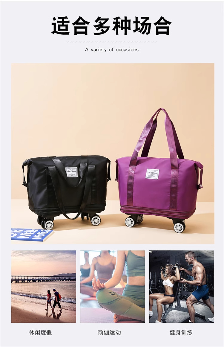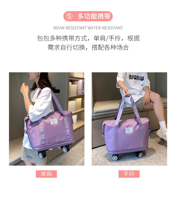 Nianduoduo Travel Bag with Detachable Wheels, Luggage Bag, Checked Bag, Dry and Wet Separation, Short-Distance Multi-Functional Large Handbag