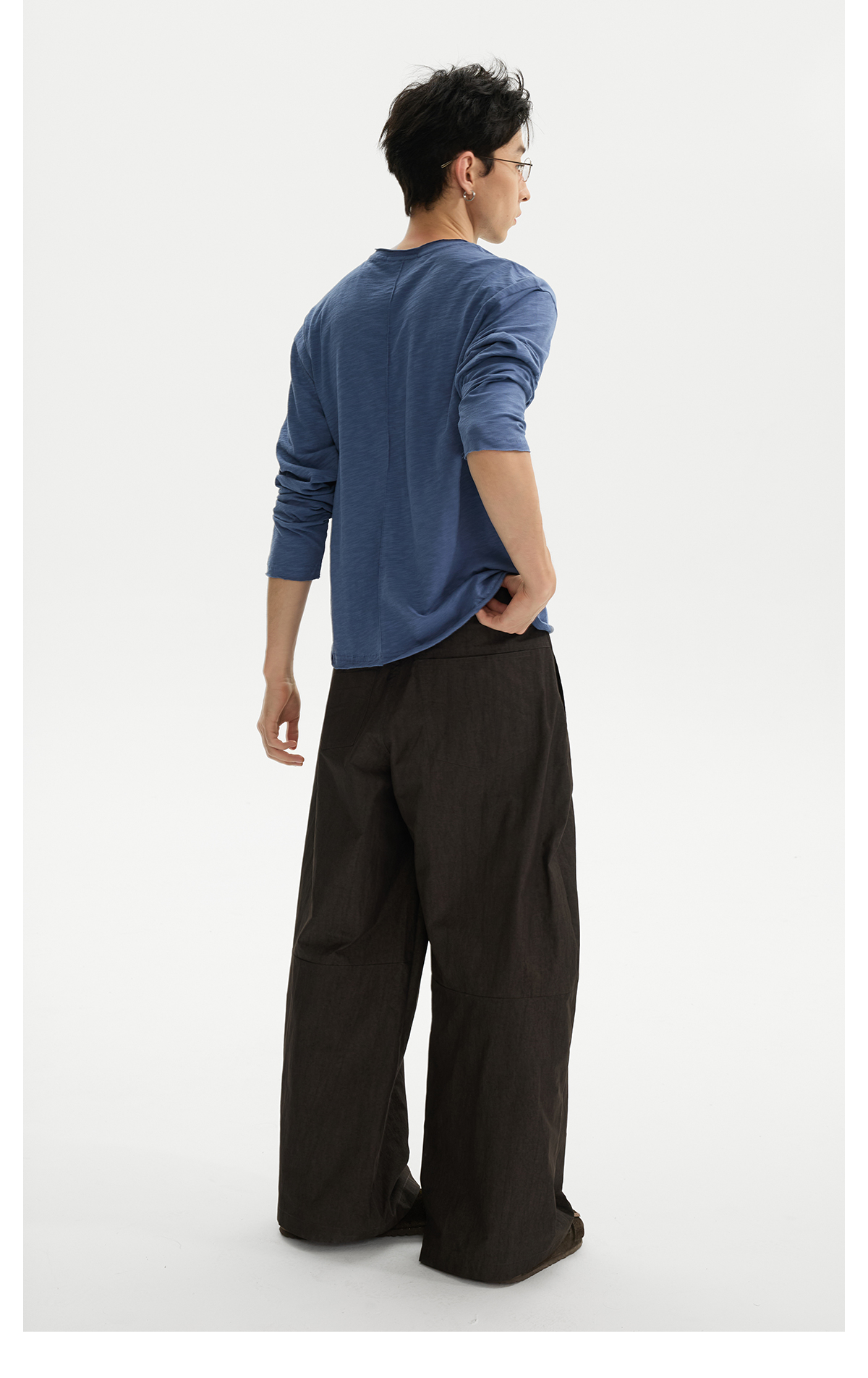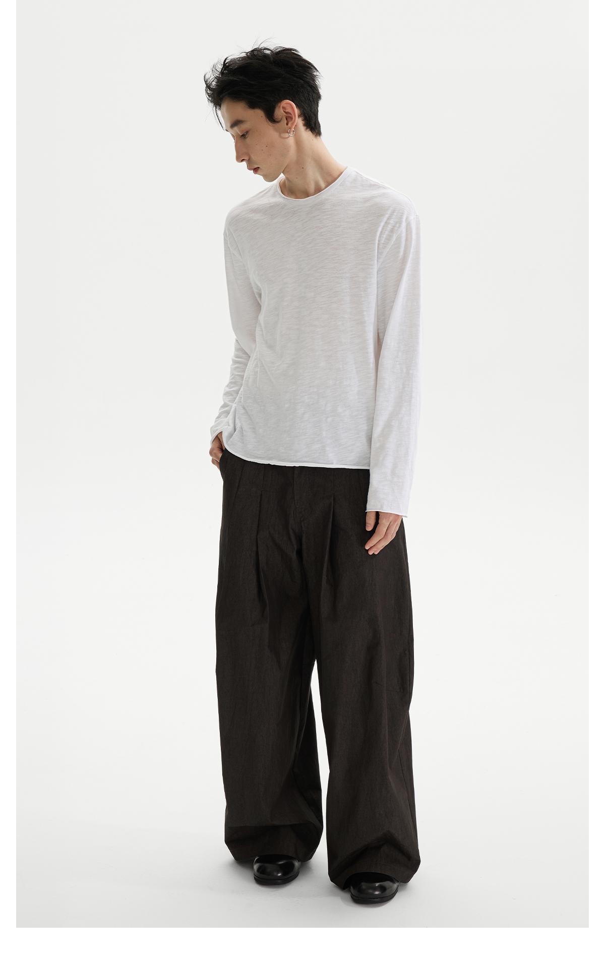 Esat Three-Color Rolled-Edge Toothpick Pleated Bamboo Pattern Casual Long-Sleeve Base Shirt
