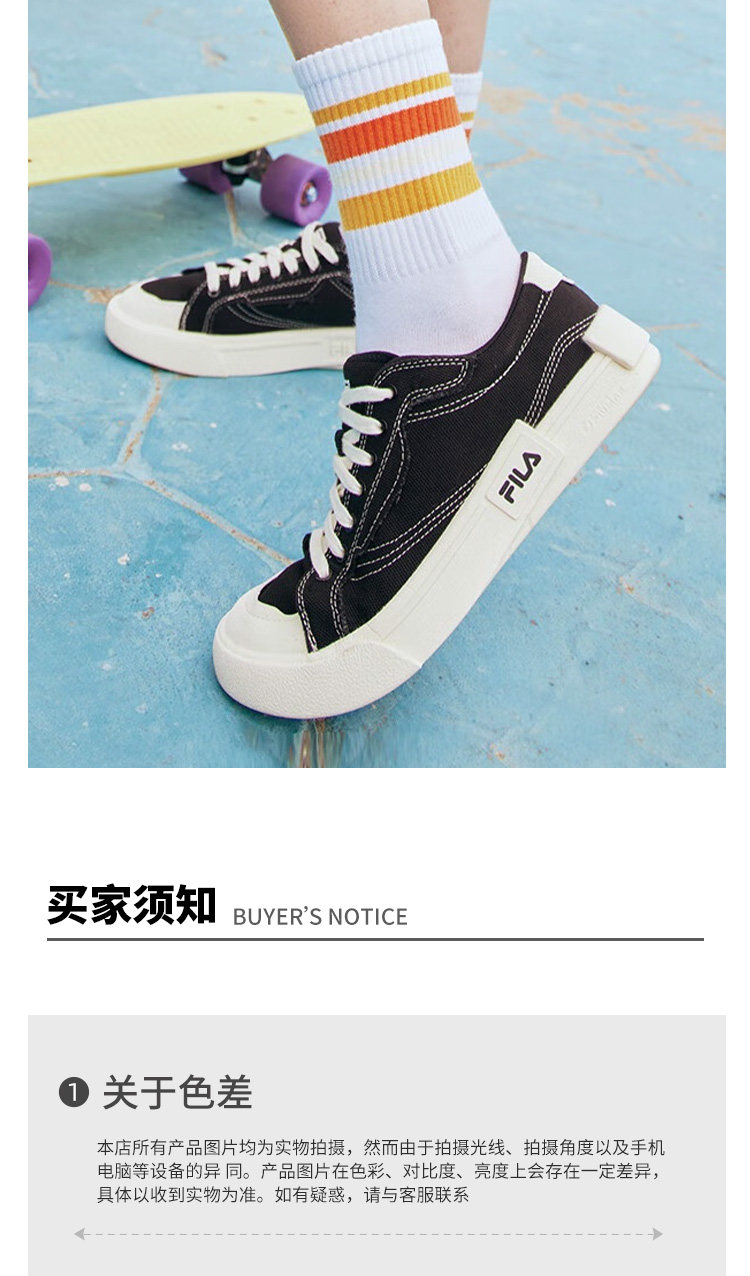 Fila Pop Men's and Women's Low-Top Canvas Shoes Black and White Casual Spring and Summer Couple Sports Sneakers T12W125107