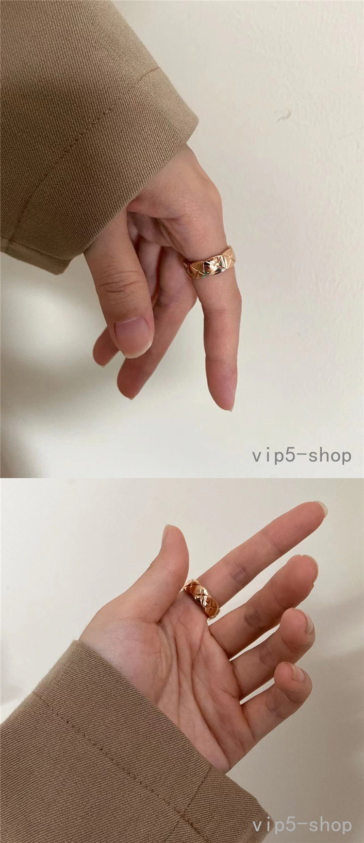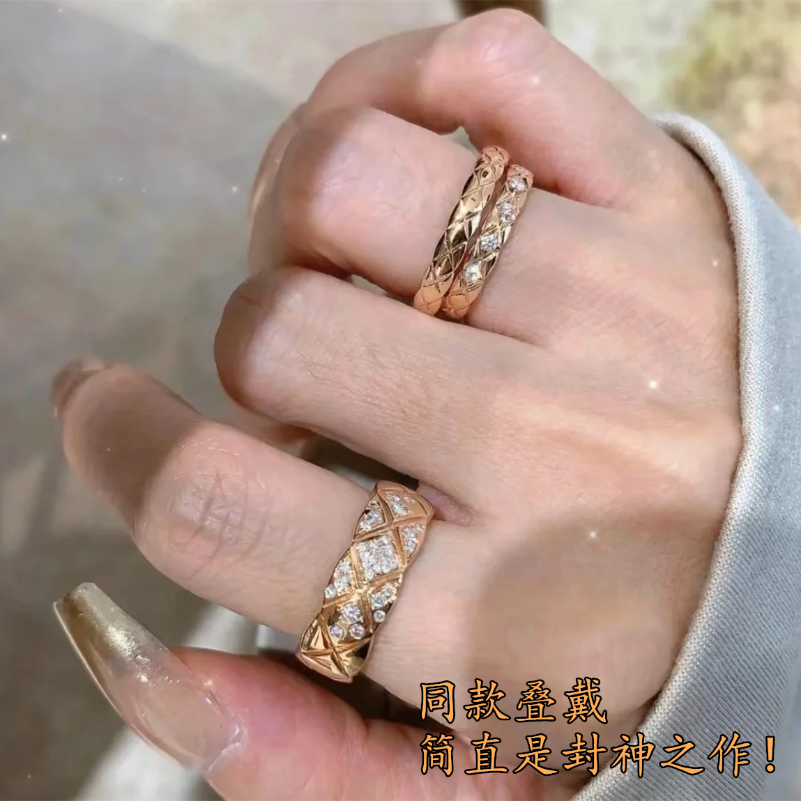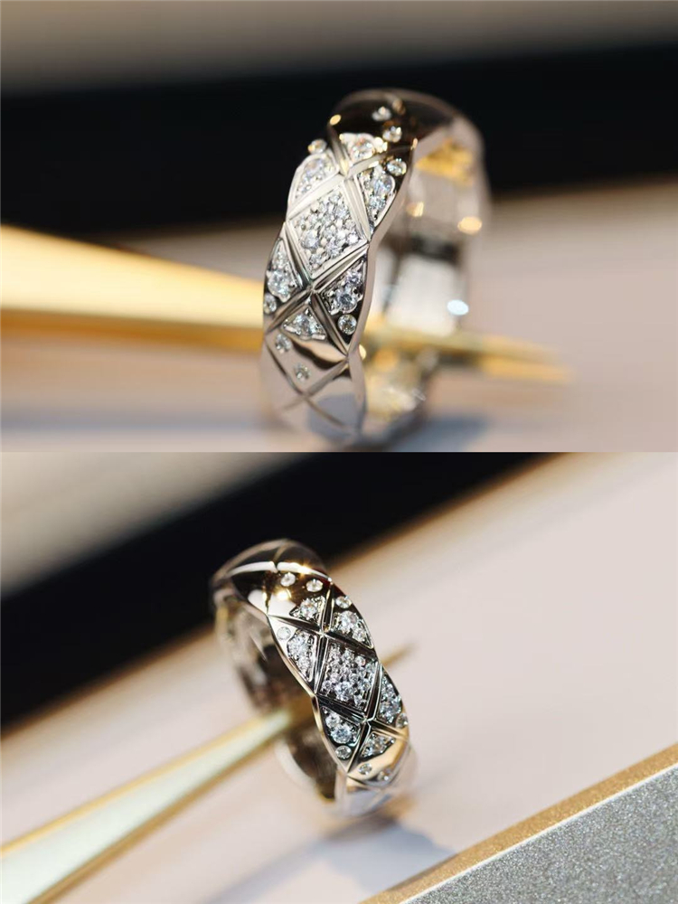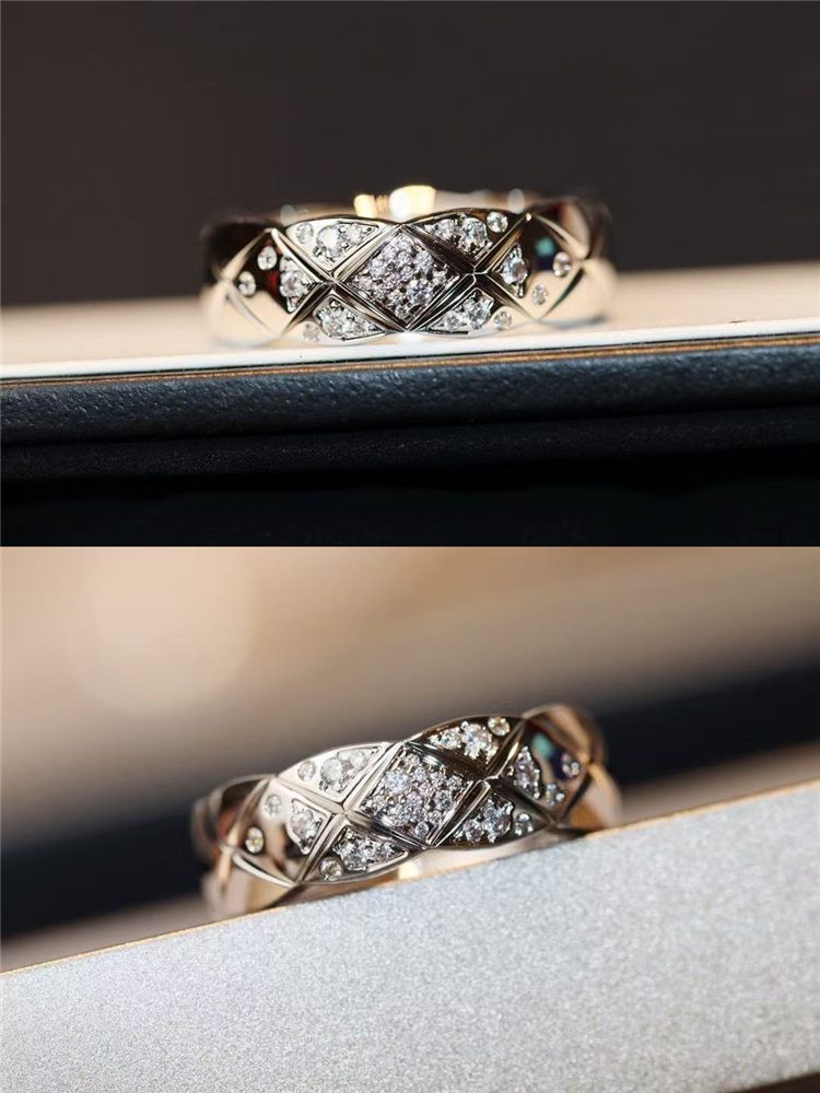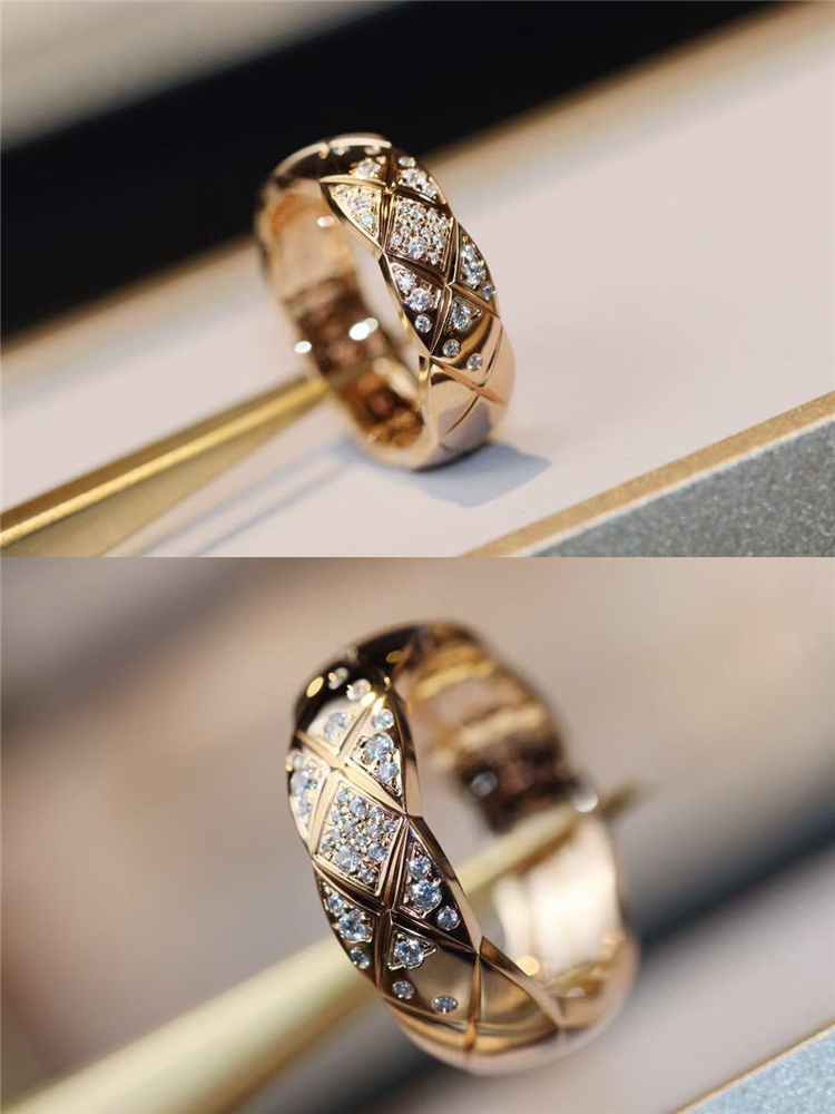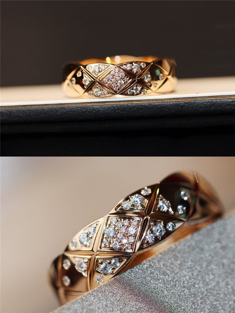 High-End Diamond-Patterned Ring for Women, Rose Gold, Niche Design, Internet Celebrity, Light Luxury, ins Chanel-Style Coco Index Finger Ring