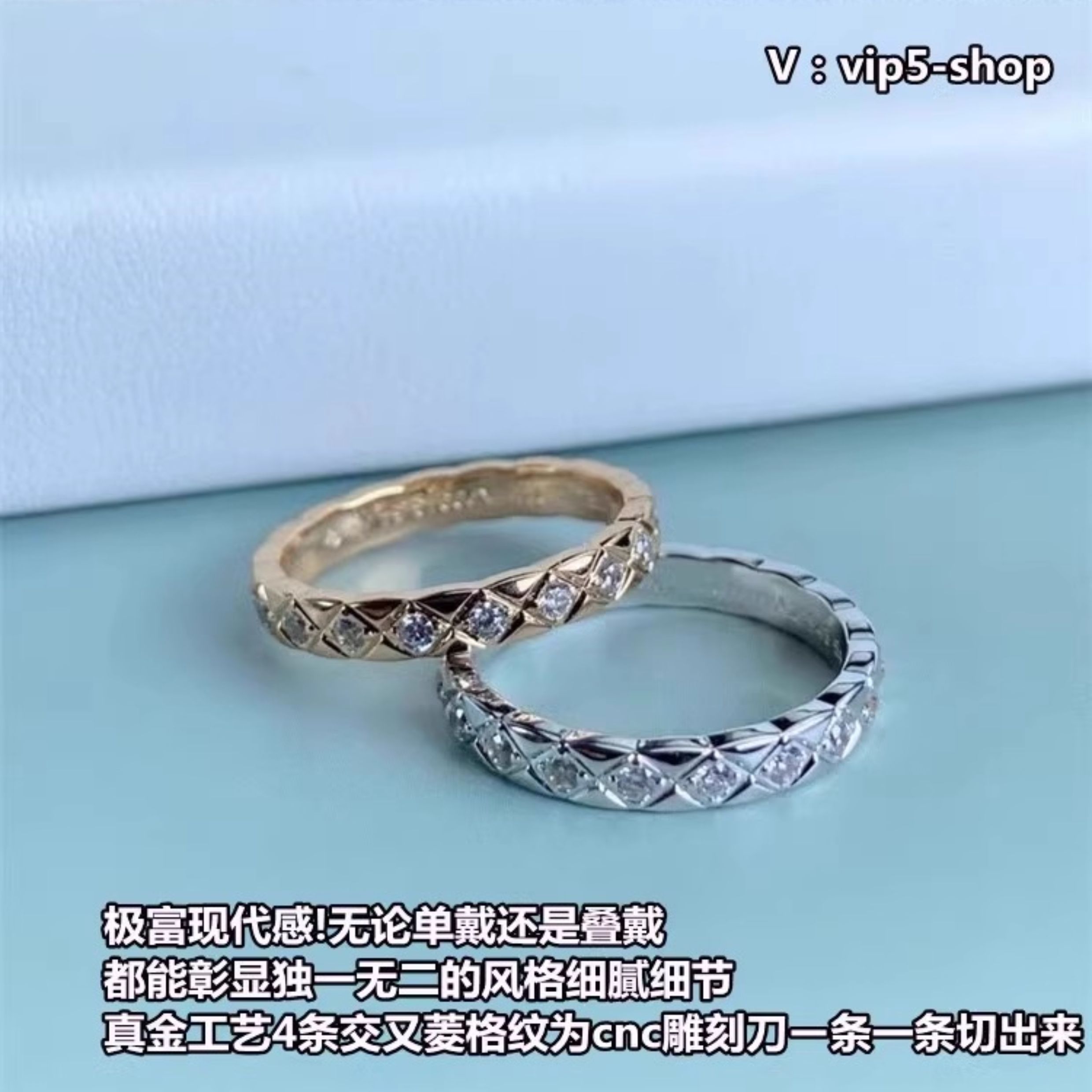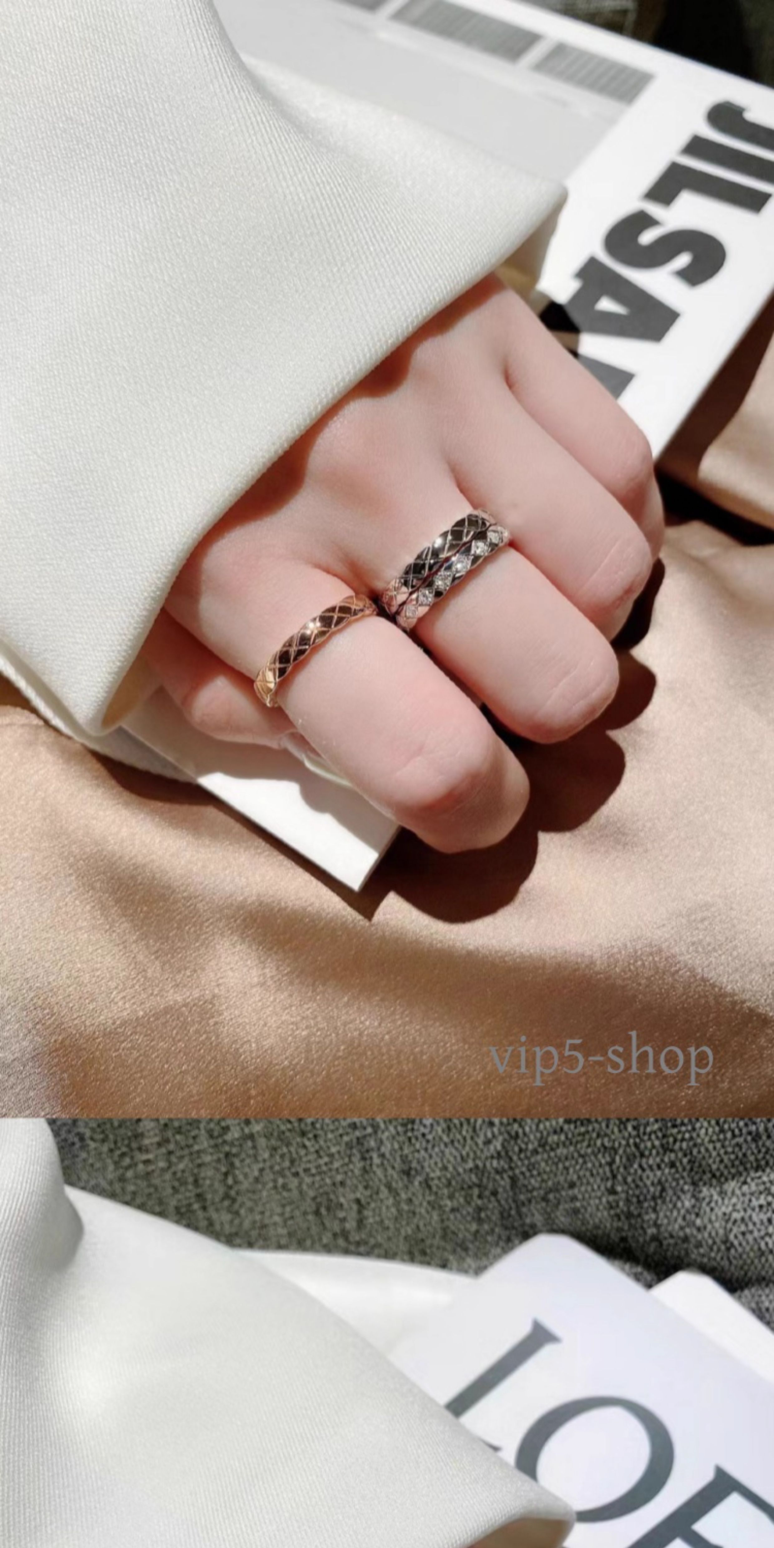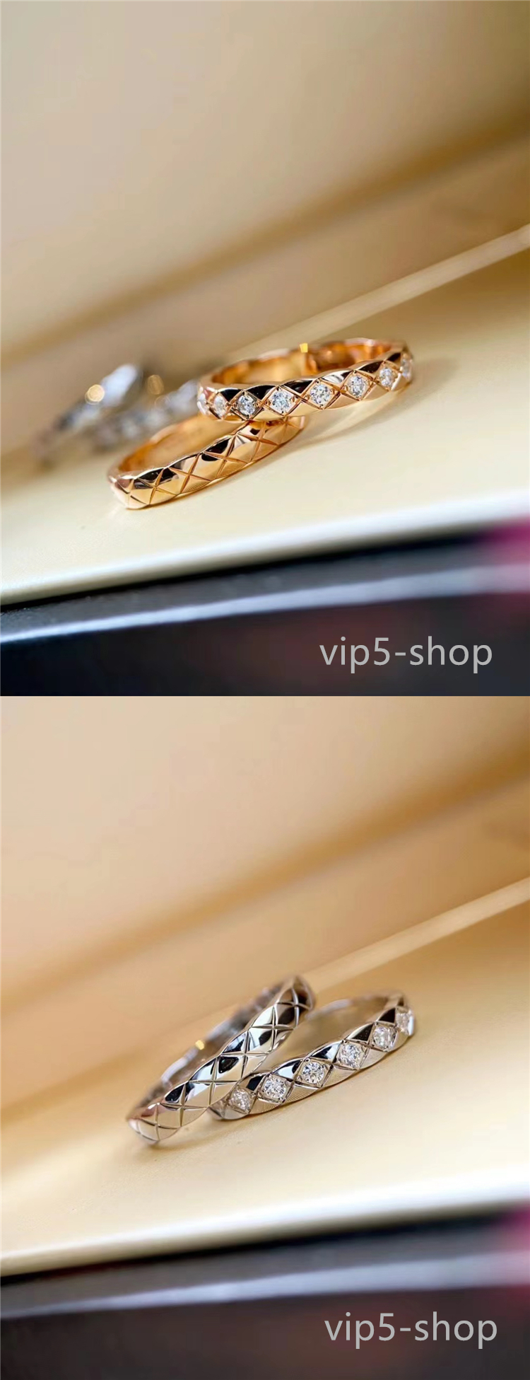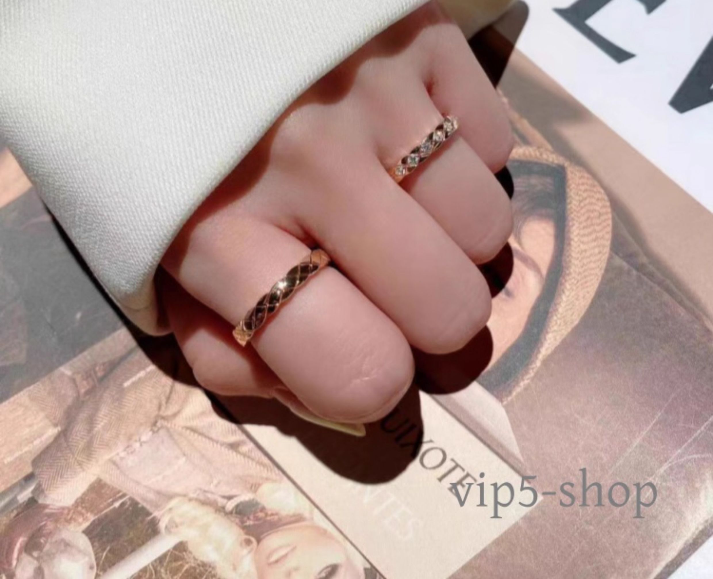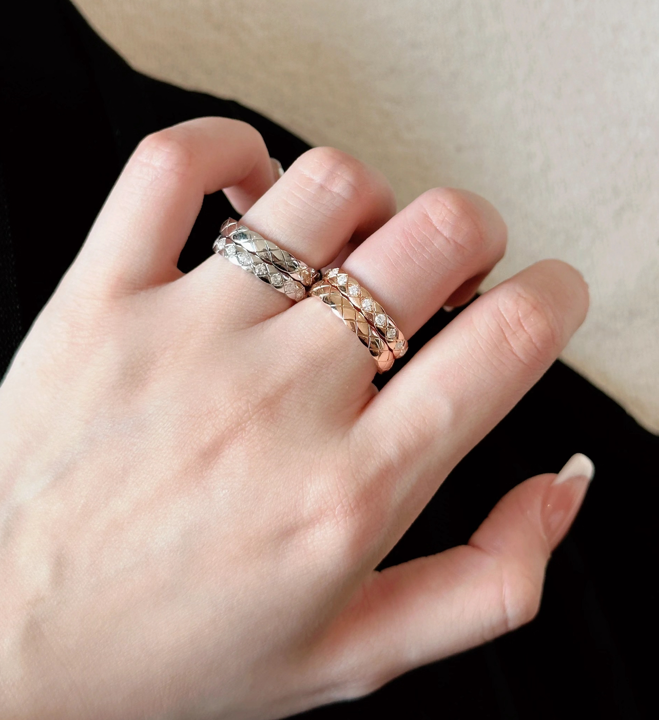 High-End Diamond-Patterned Ring for Women, Rose Gold, Niche Design, Internet Celebrity, Light Luxury, ins Chanel-Style Coco Index Finger Ring