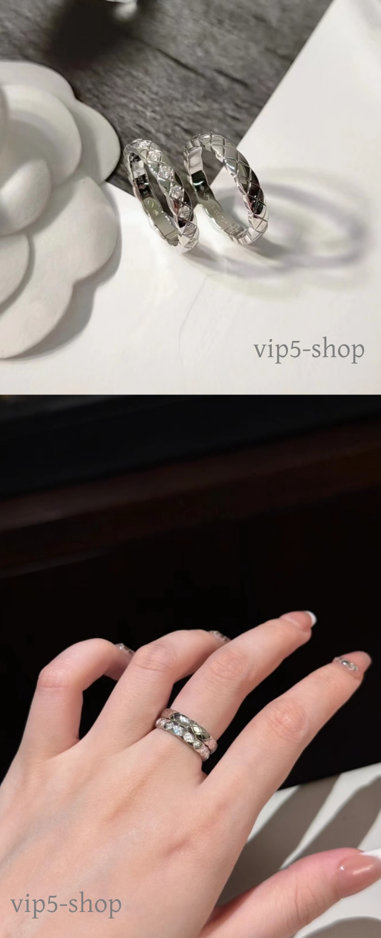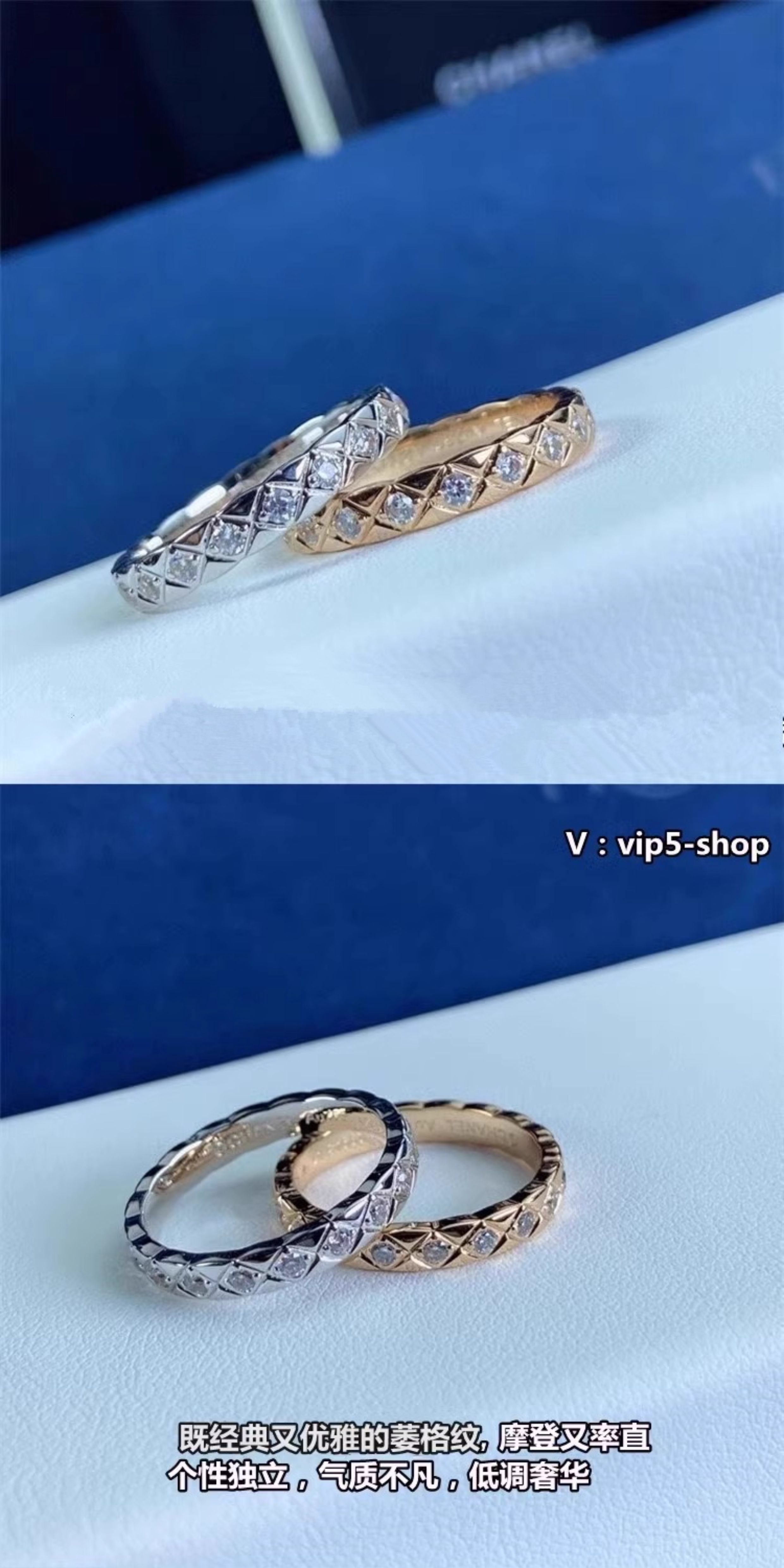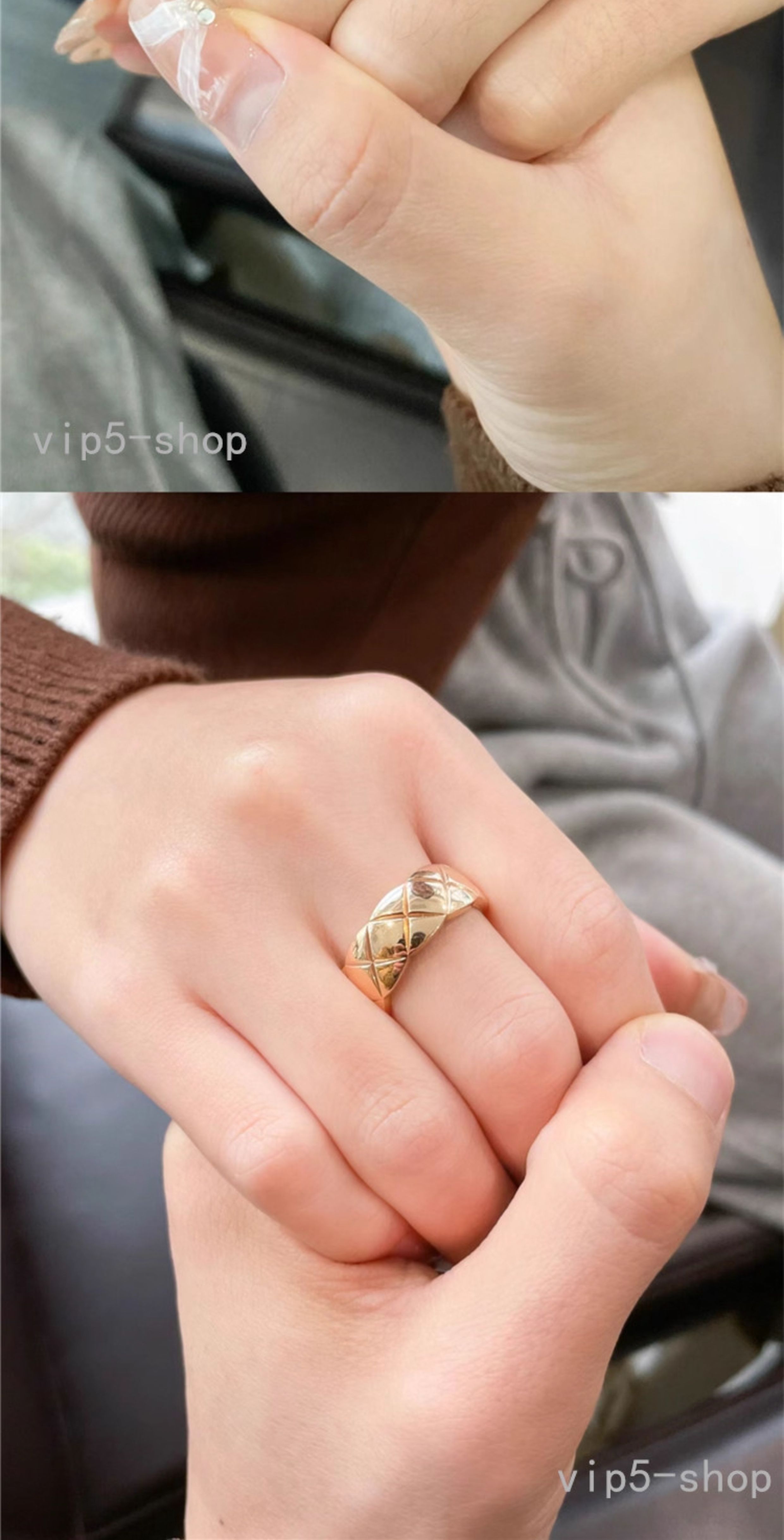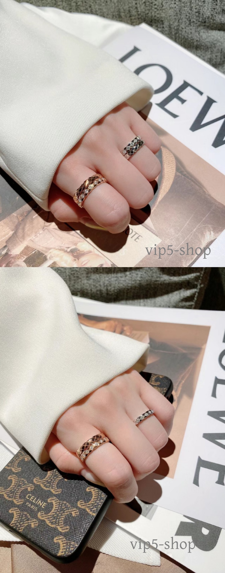 High-End Diamond-Patterned Ring for Women, Rose Gold, Niche Design, Internet Celebrity, Light Luxury, ins Chanel-Style Coco Index Finger Ring