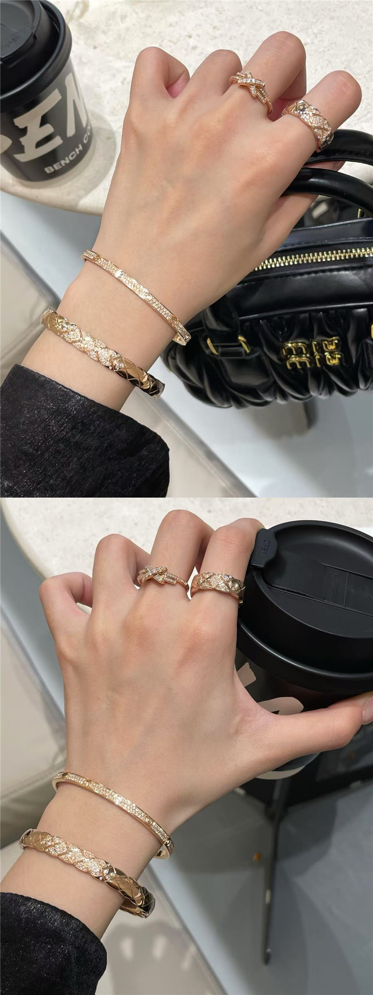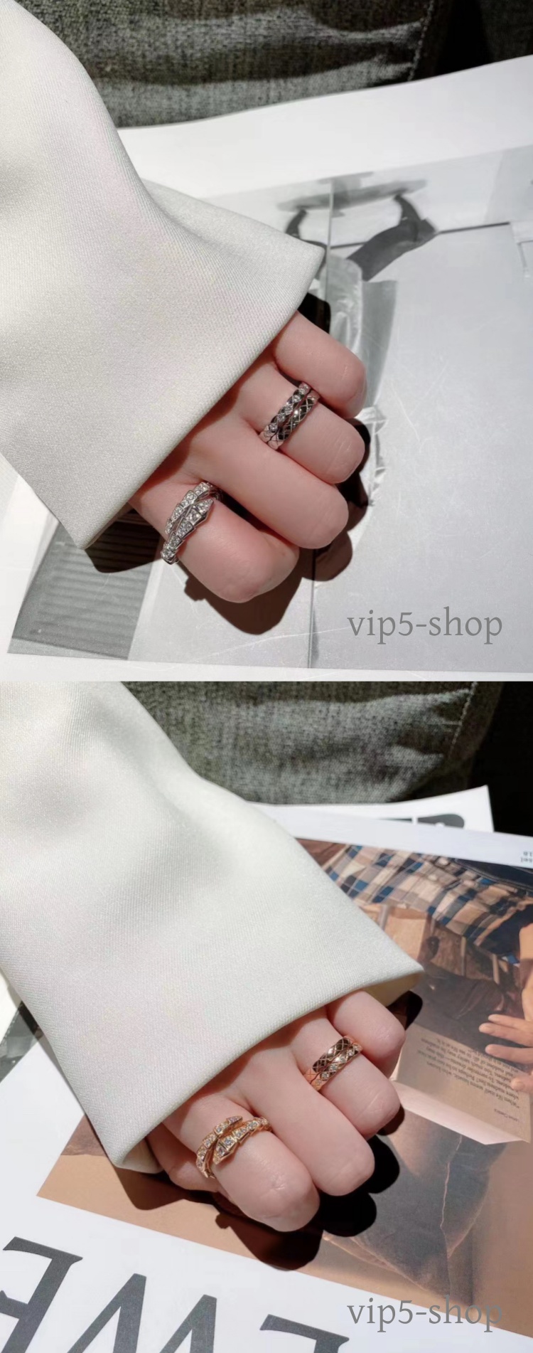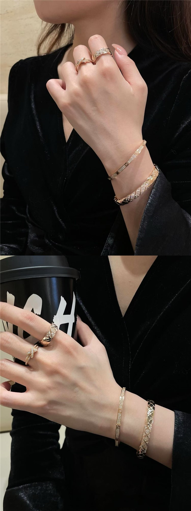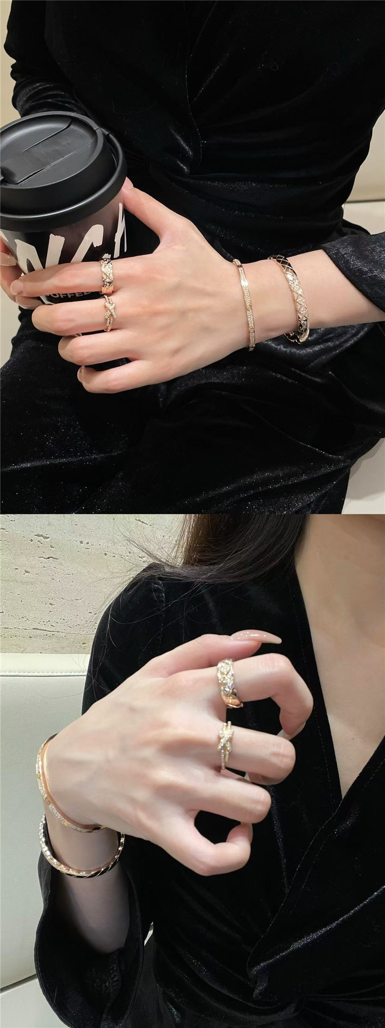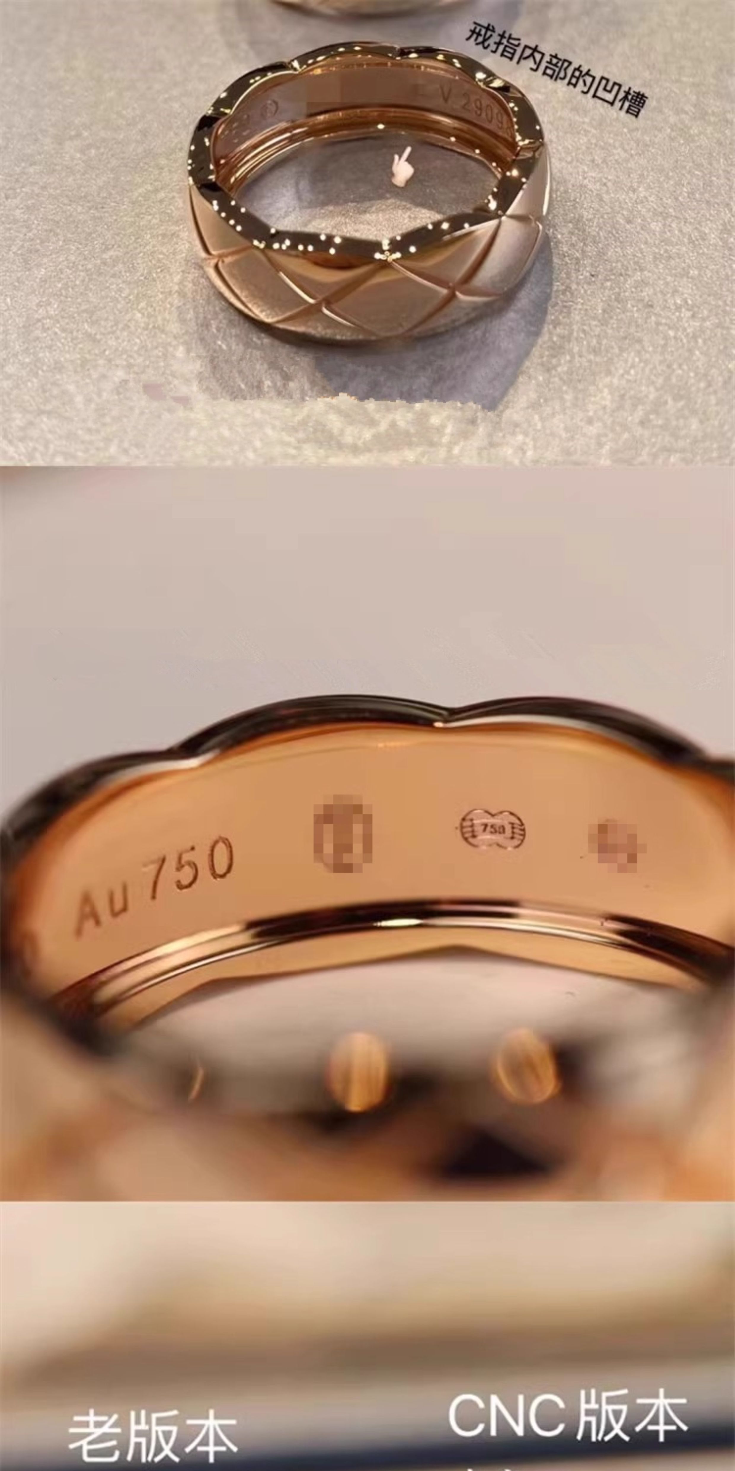 High-End Diamond-Patterned Ring for Women, Rose Gold, Niche Design, Internet Celebrity, Light Luxury, ins Chanel-Style Coco Index Finger Ring