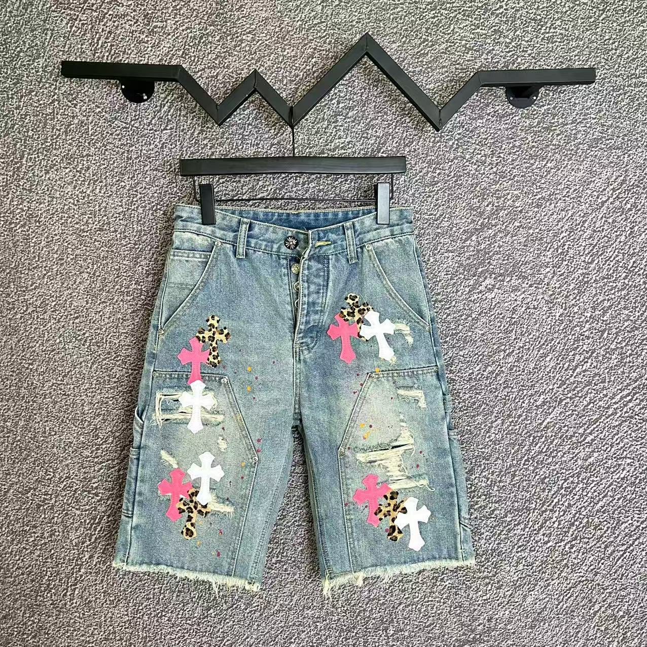 Trendy Brand Fekro Heart Shorts Flagship Store Authentic 25Ss New American High Street Leather Cross Five-Point Shorts