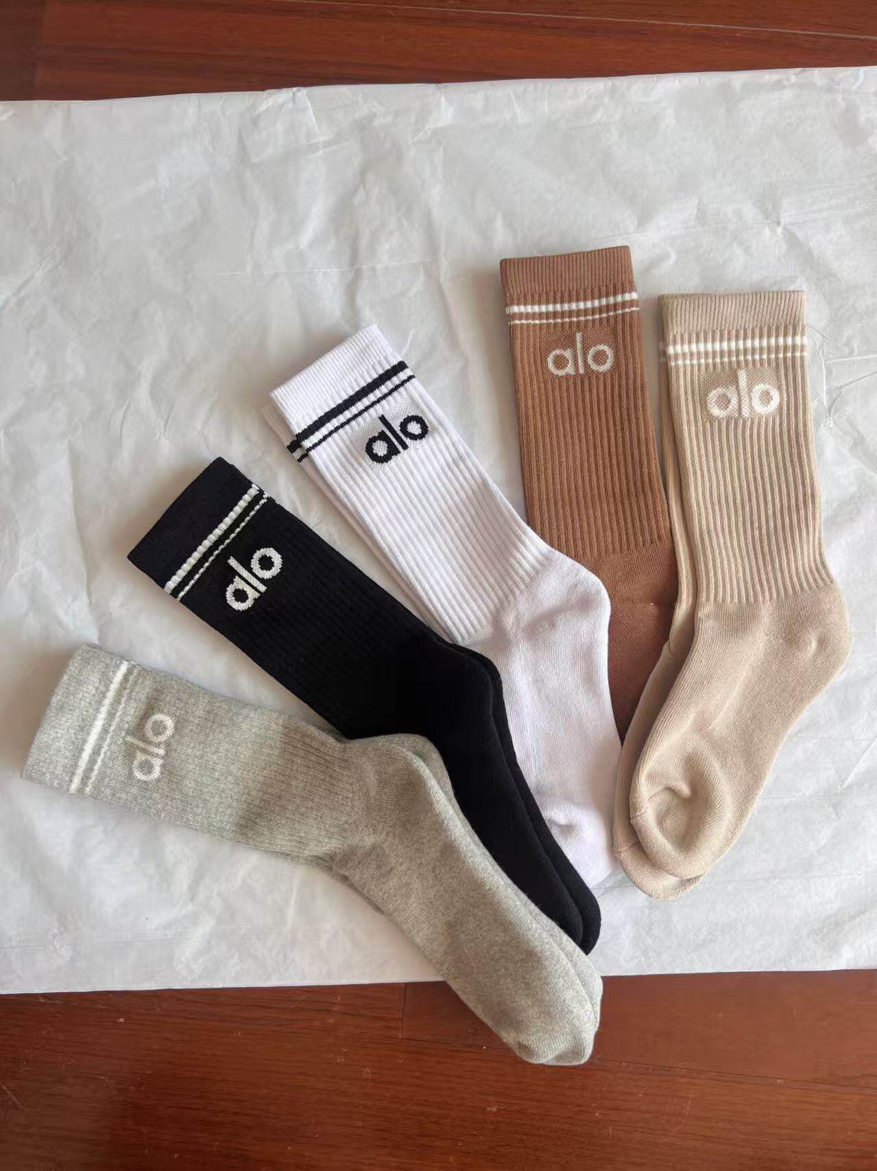 Alo Men and Women Couple Long Cotton Socks Deodorant Socks Spring and Summer Versatile Suitable for Running Sports Yoga Socks