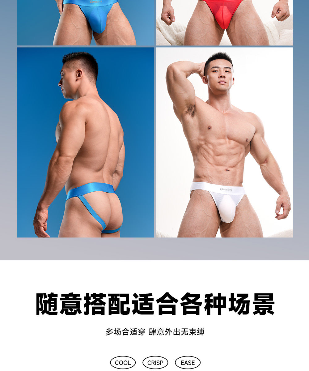 Molibang Double Thong Underwear for Men, Semi-Transparent, Low-Waist, Sexy, Bulge-Enhancing, Breathable, Sporty, Cool and Comfortable Thong
