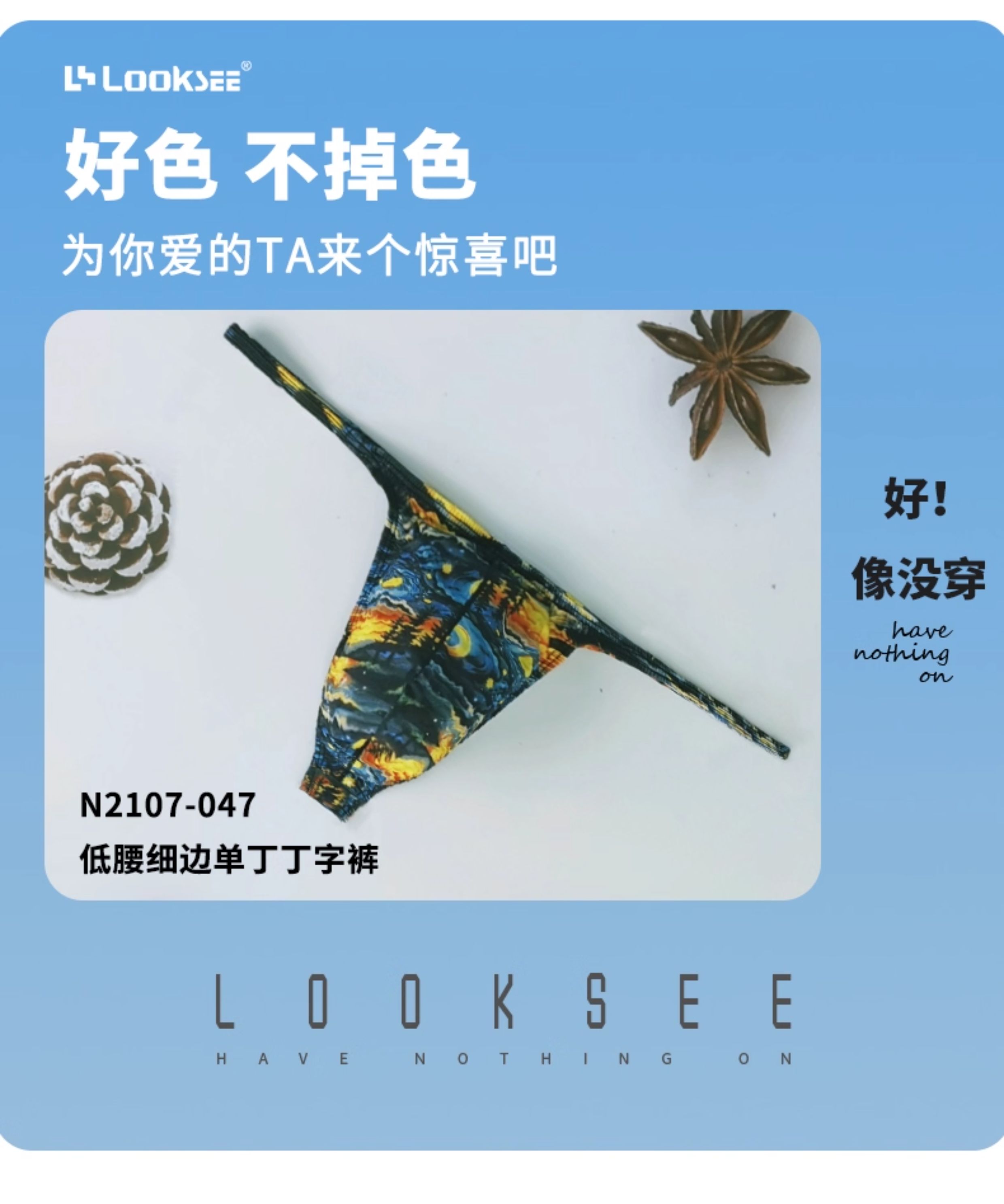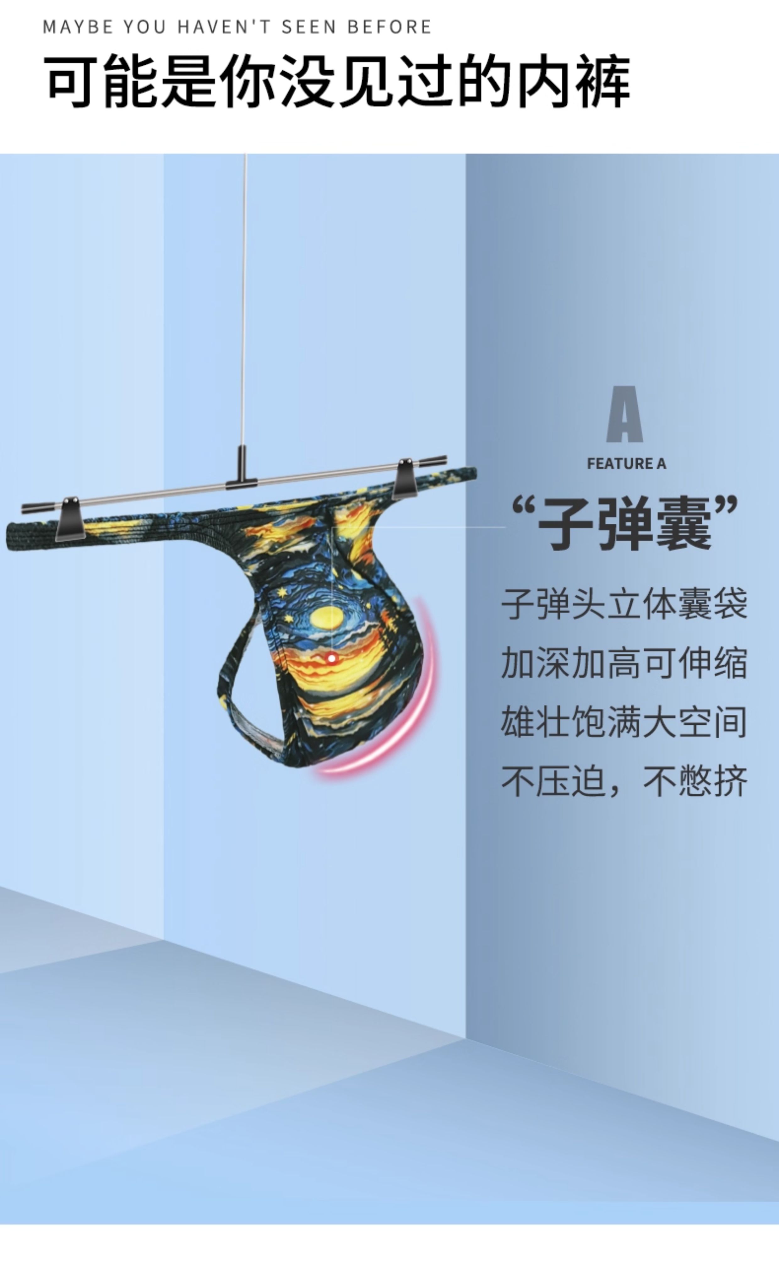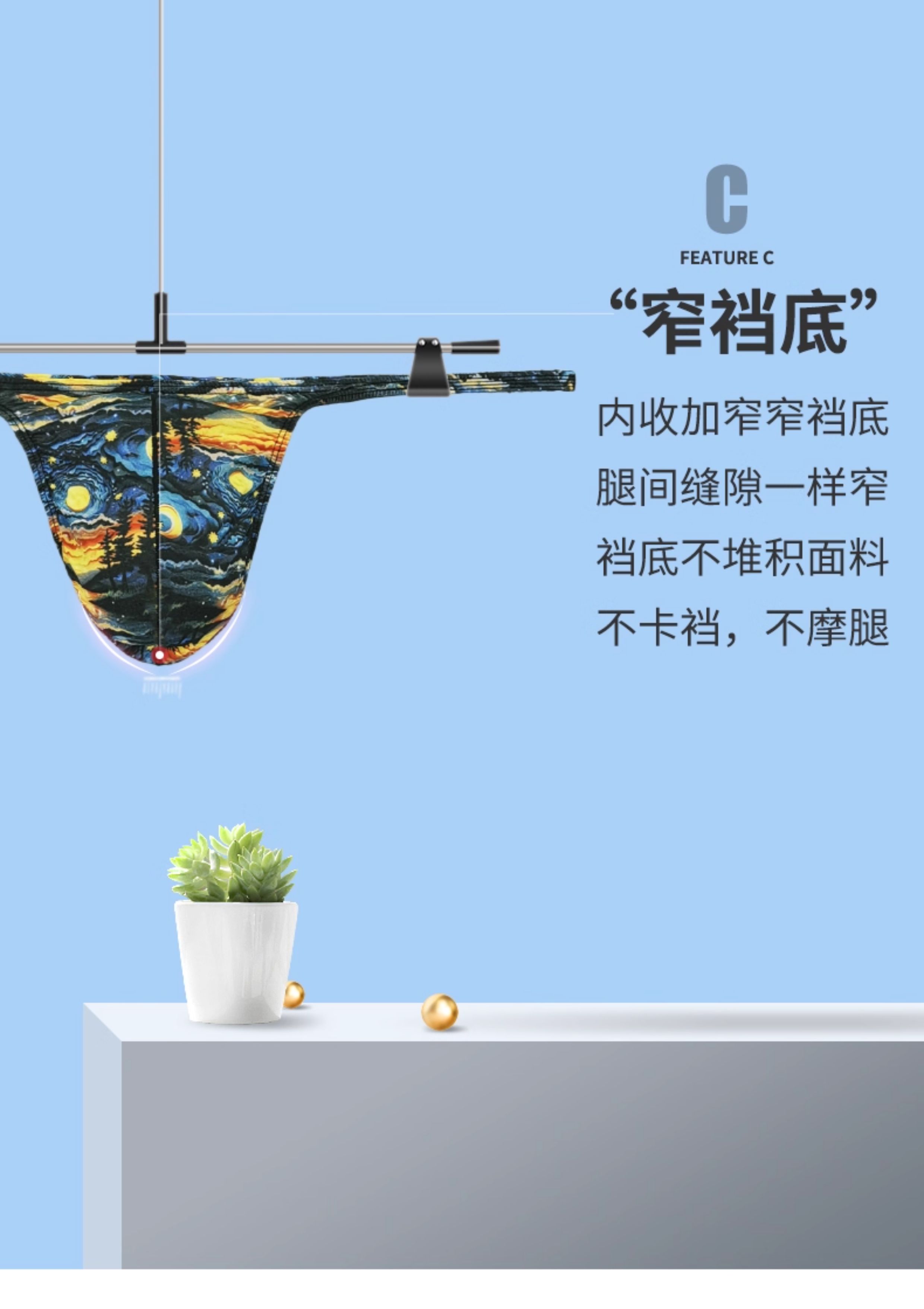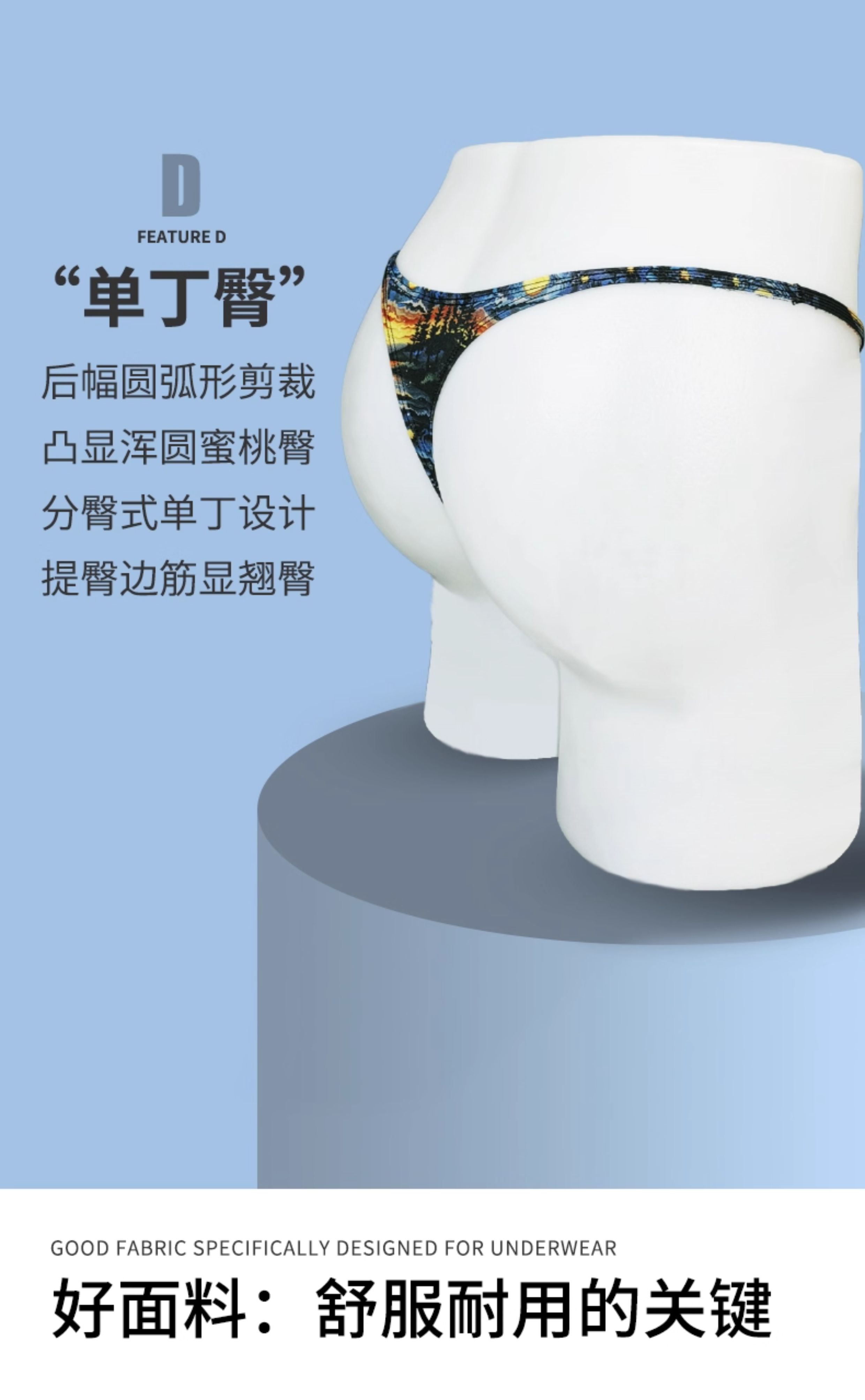 Ultra-Thin Ice Silk Low-Rise Thong Underwear for Men with Printed Design, U-Convex, Sexy T-Pants, Trendy