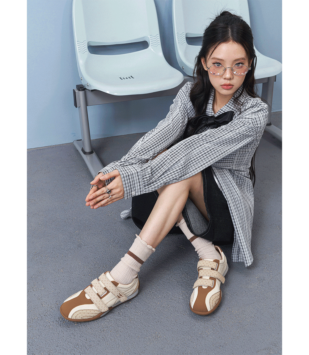 Masuism 2025 New Velcro Casual Shoes Lightweight Sneakers Versatile Flat Shoes Women's Autumn Polka Dot