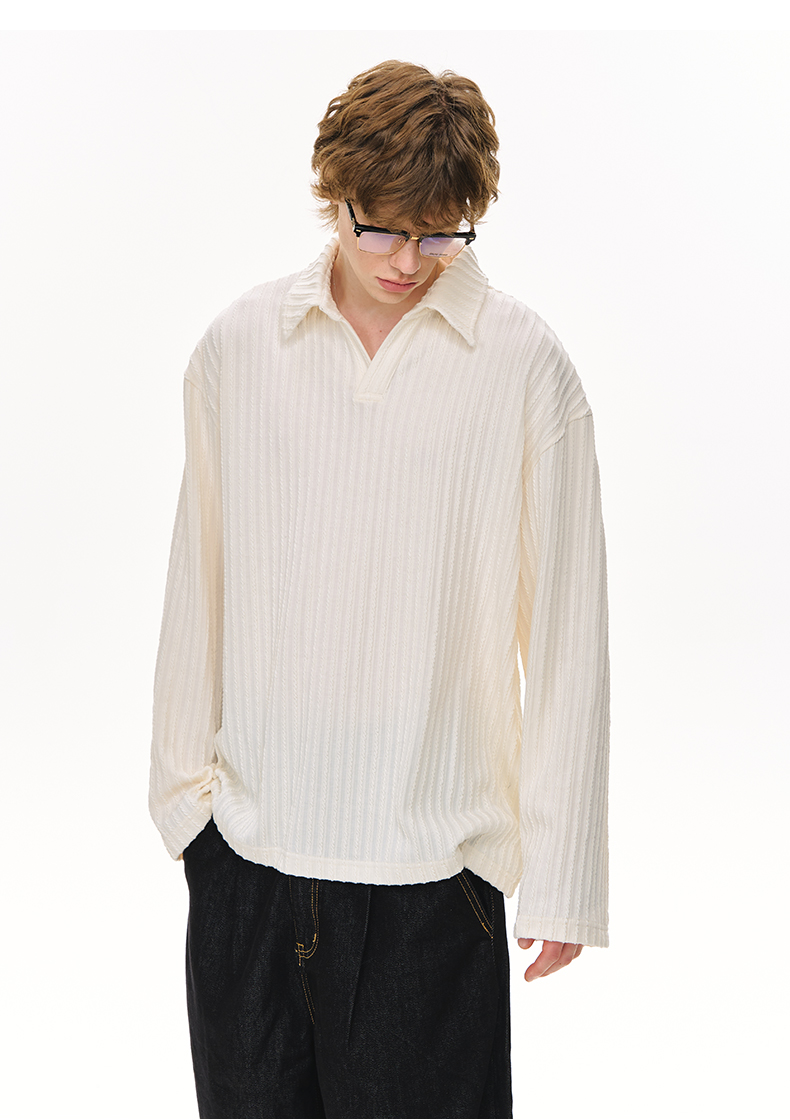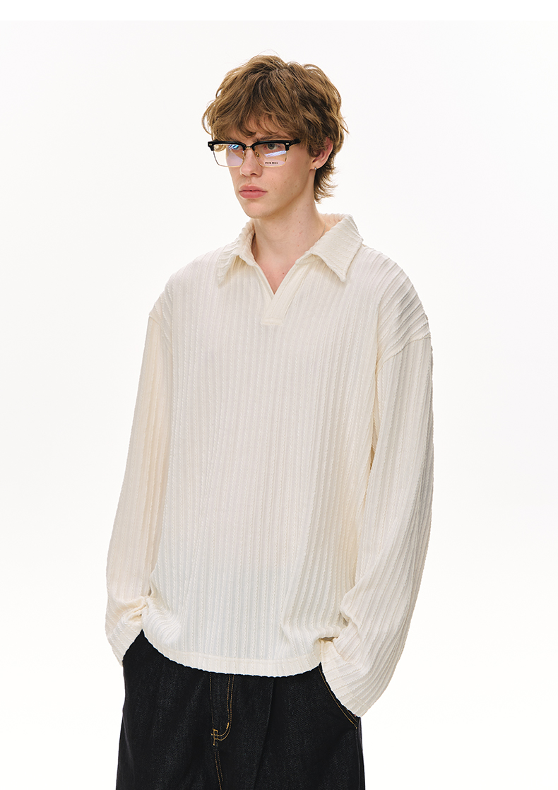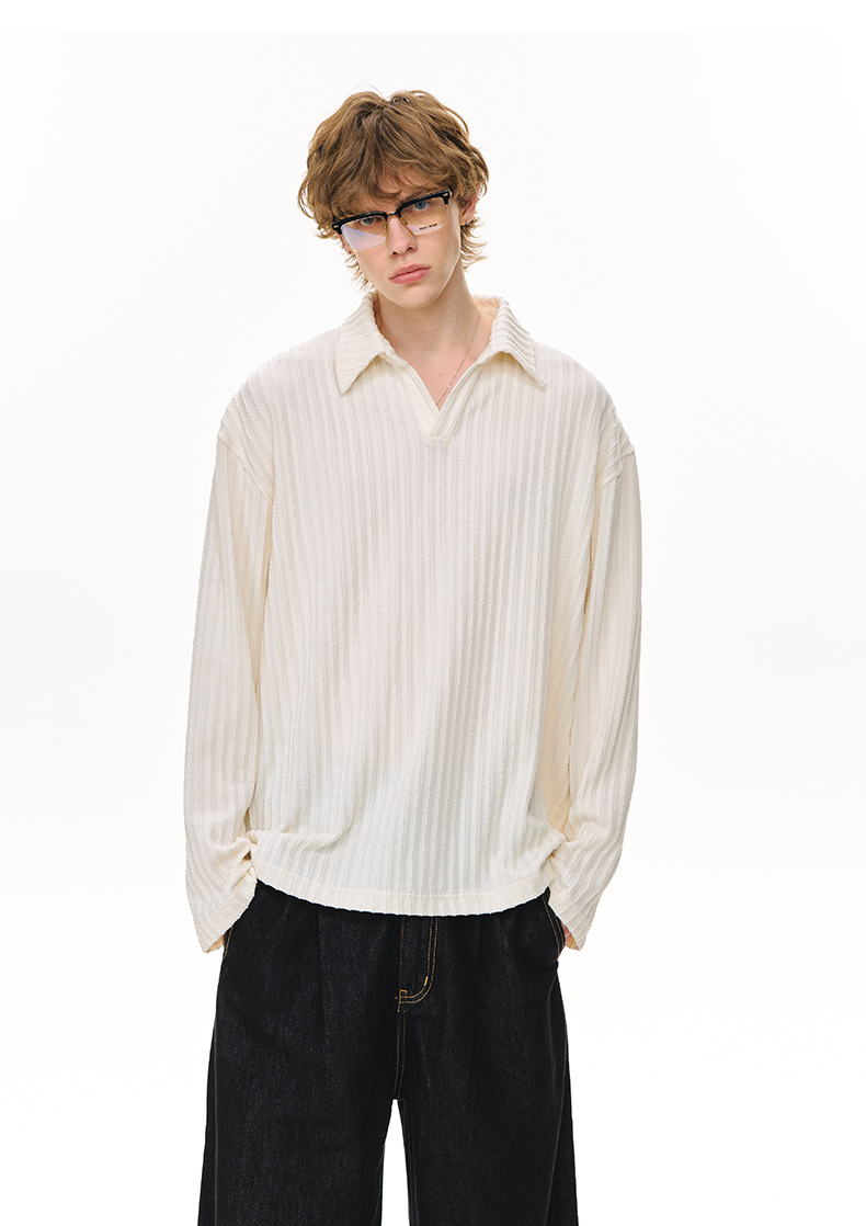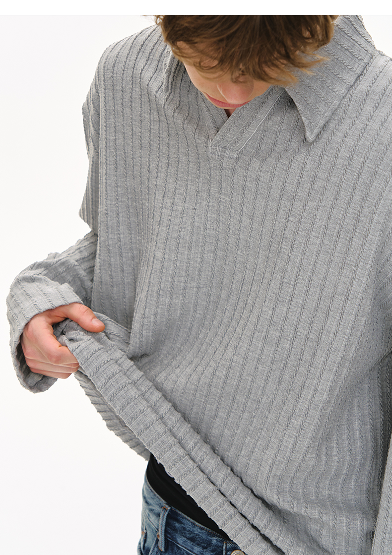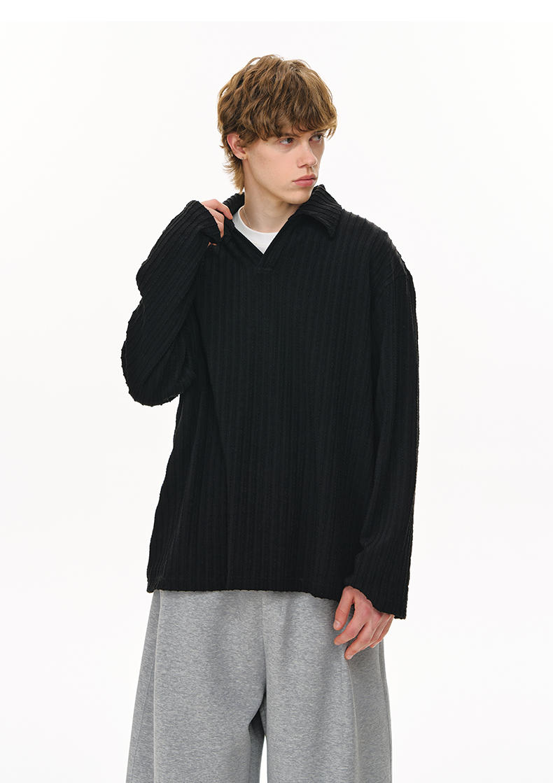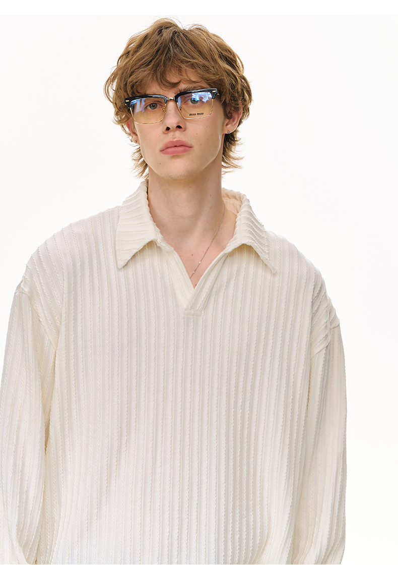 Climax Vision Old Money Style Comfortable and Lazy Wheat Pattern Knit Polo Shirt High-End V-Neck Long-Sleeve T-Shirt