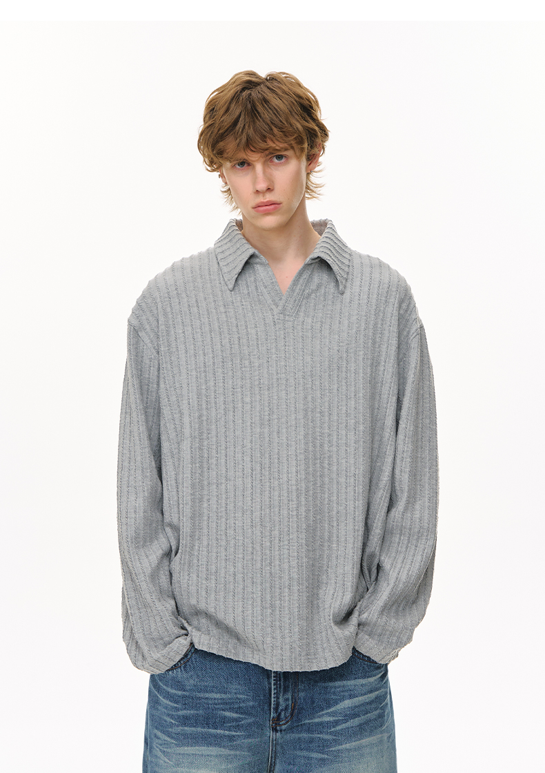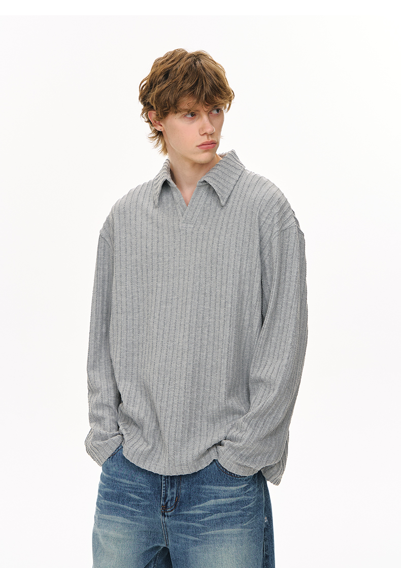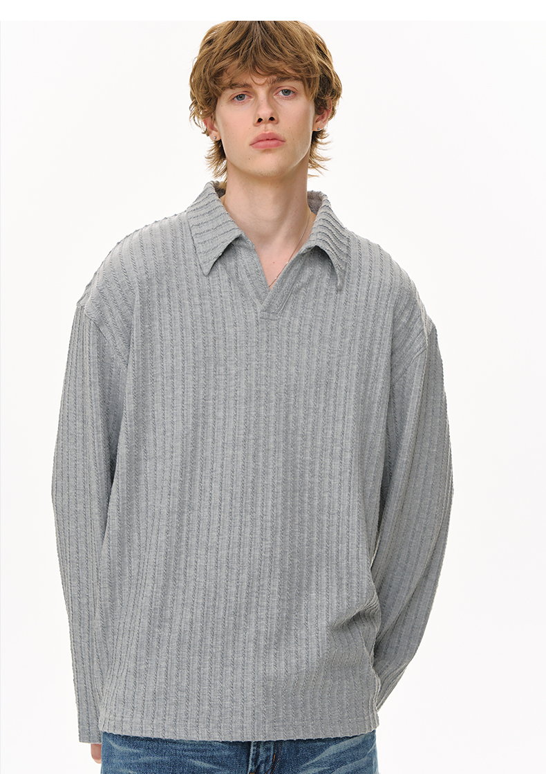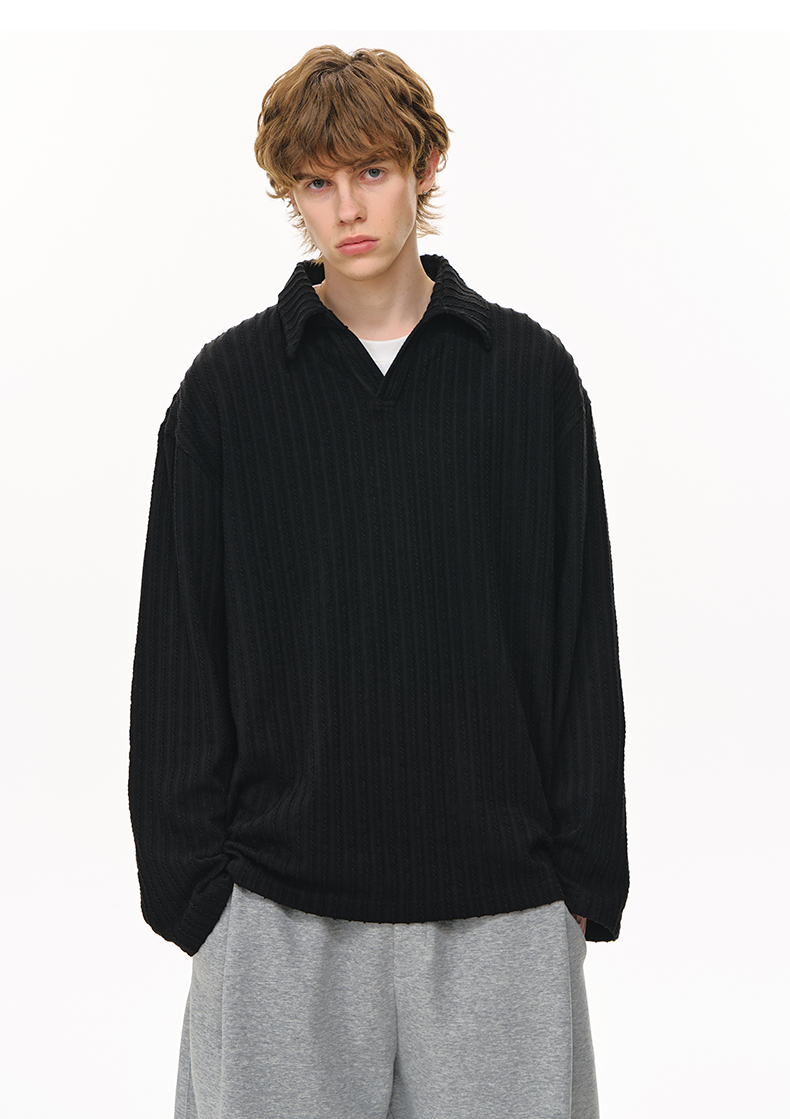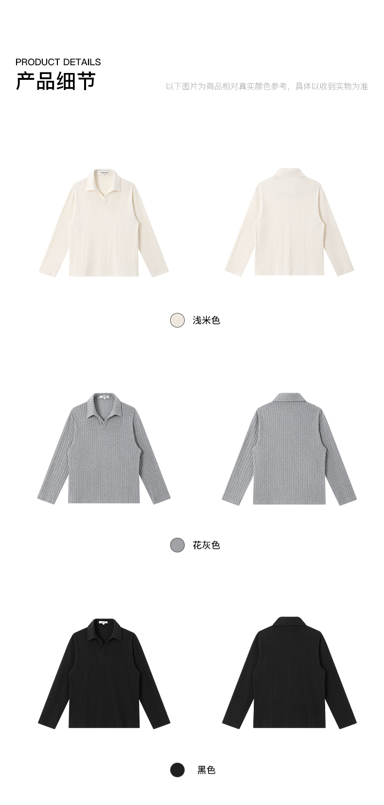 Climax Vision Old Money Style Comfortable and Lazy Wheat Pattern Knit Polo Shirt High-End V-Neck Long-Sleeve T-Shirt