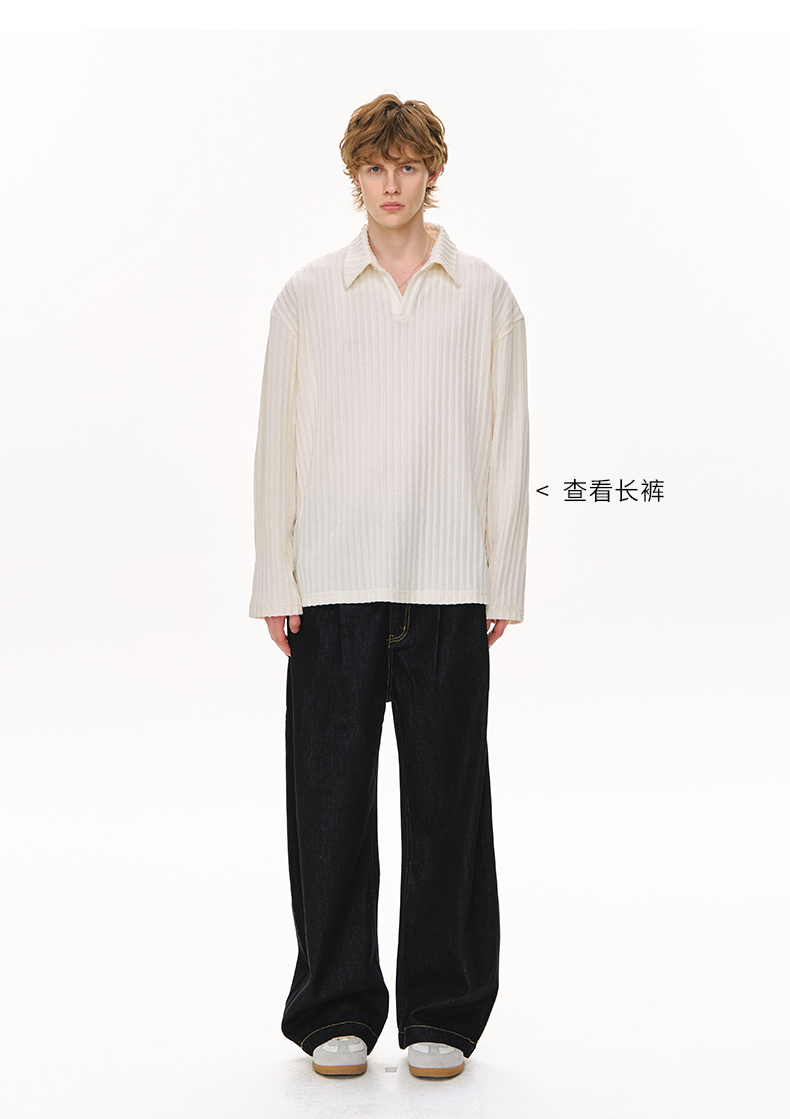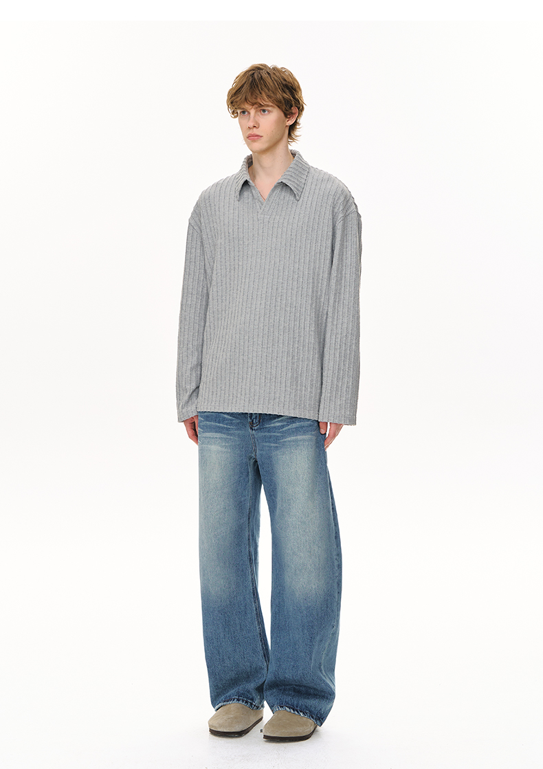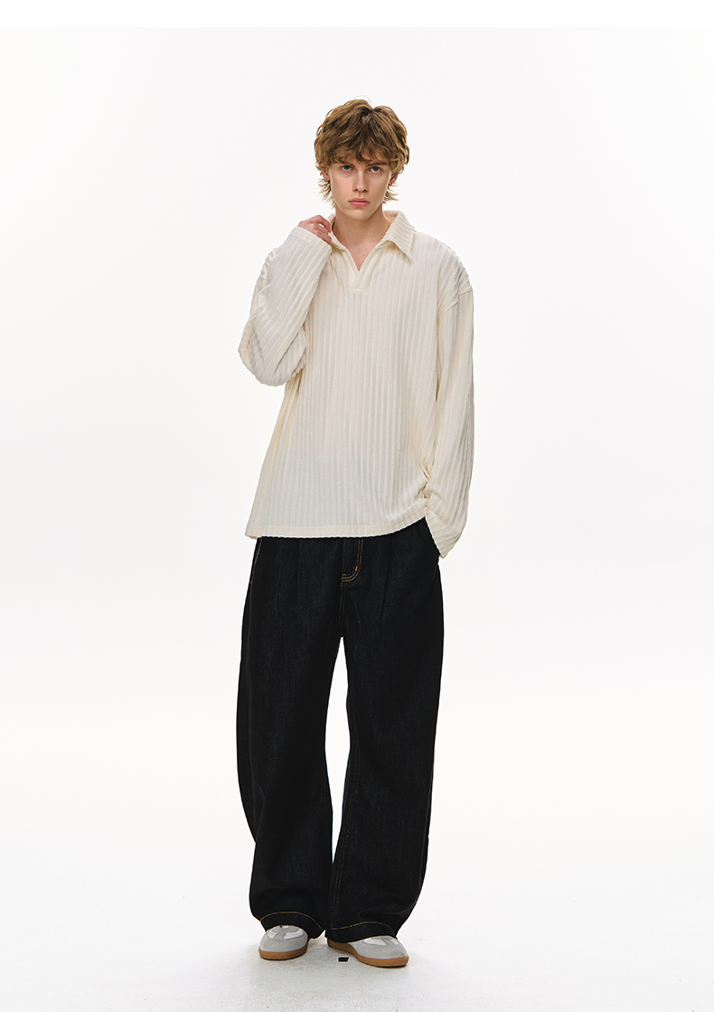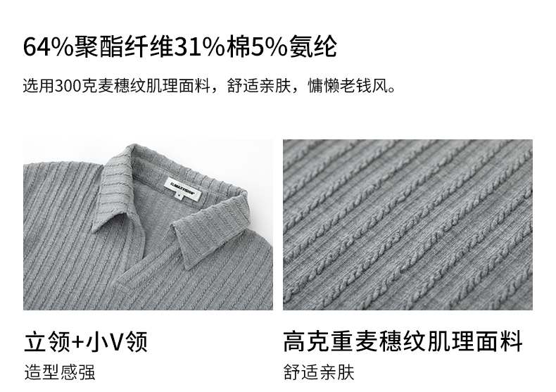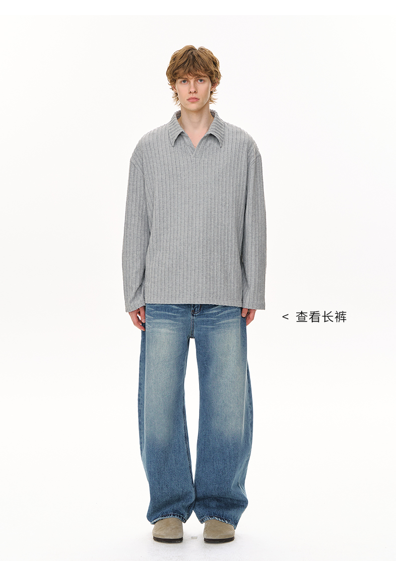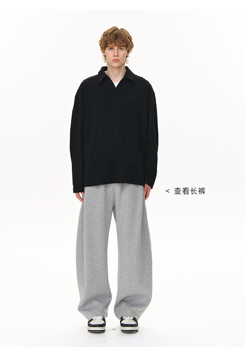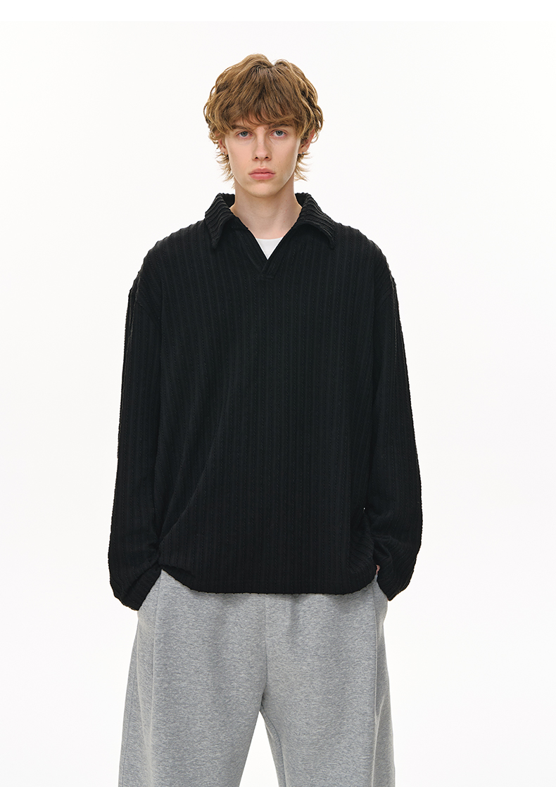Climax Vision Old Money Style Comfortable and Lazy Wheat Pattern Knit Polo Shirt High-End V-Neck Long-Sleeve T-Shirt