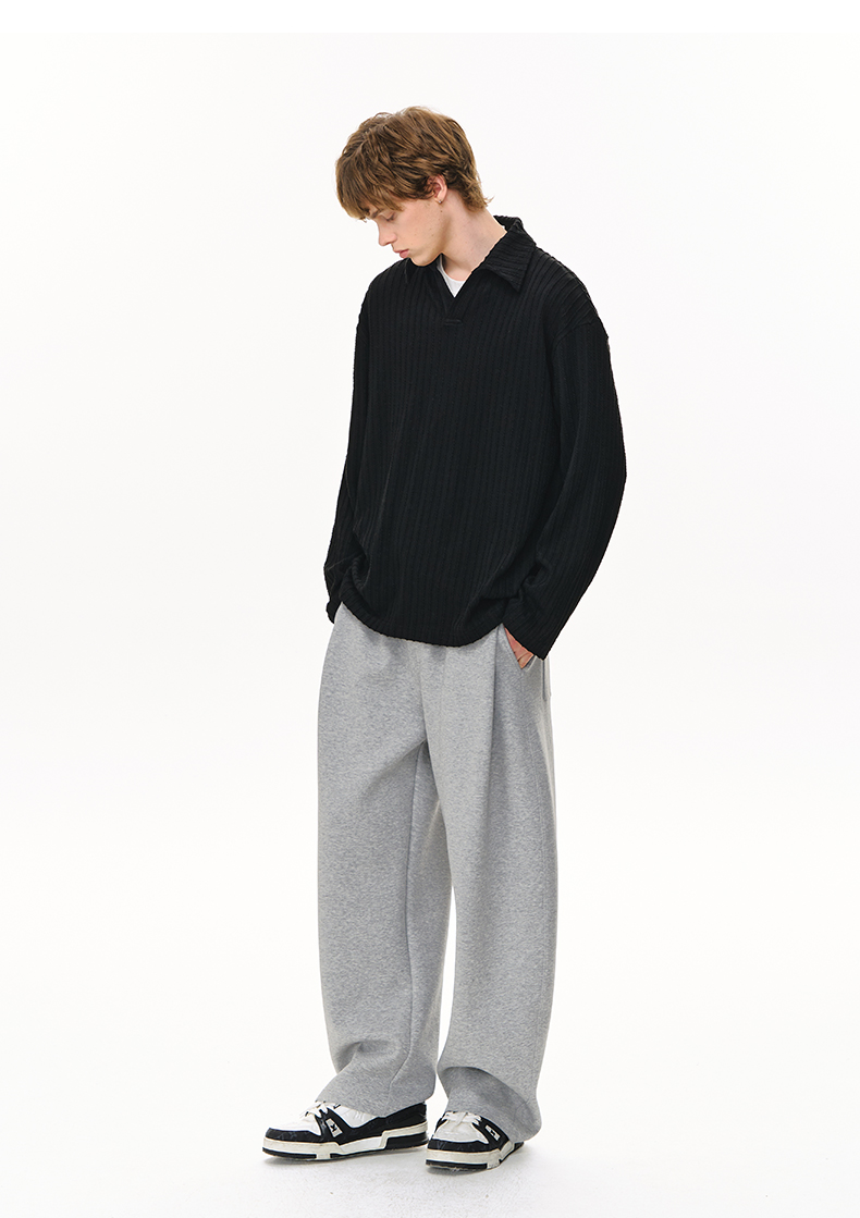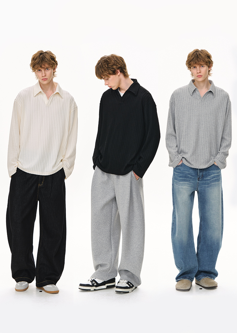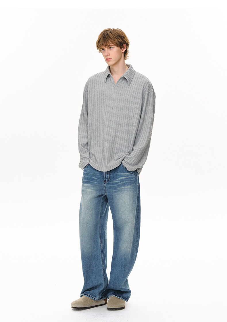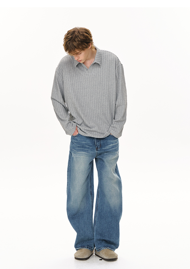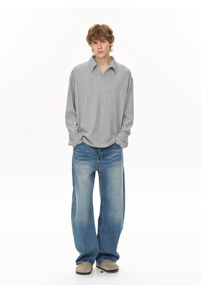 Climax Vision Old Money Style Comfortable and Lazy Wheat Pattern Knit Polo Shirt High-End V-Neck Long-Sleeve T-Shirt