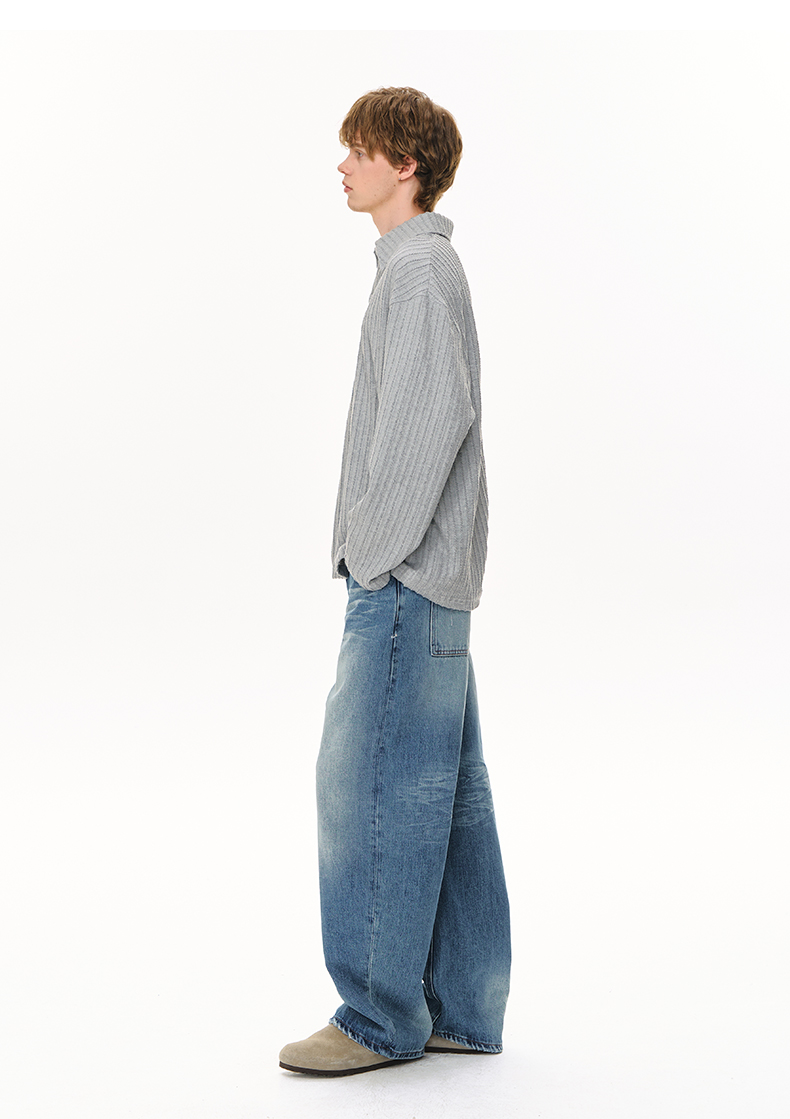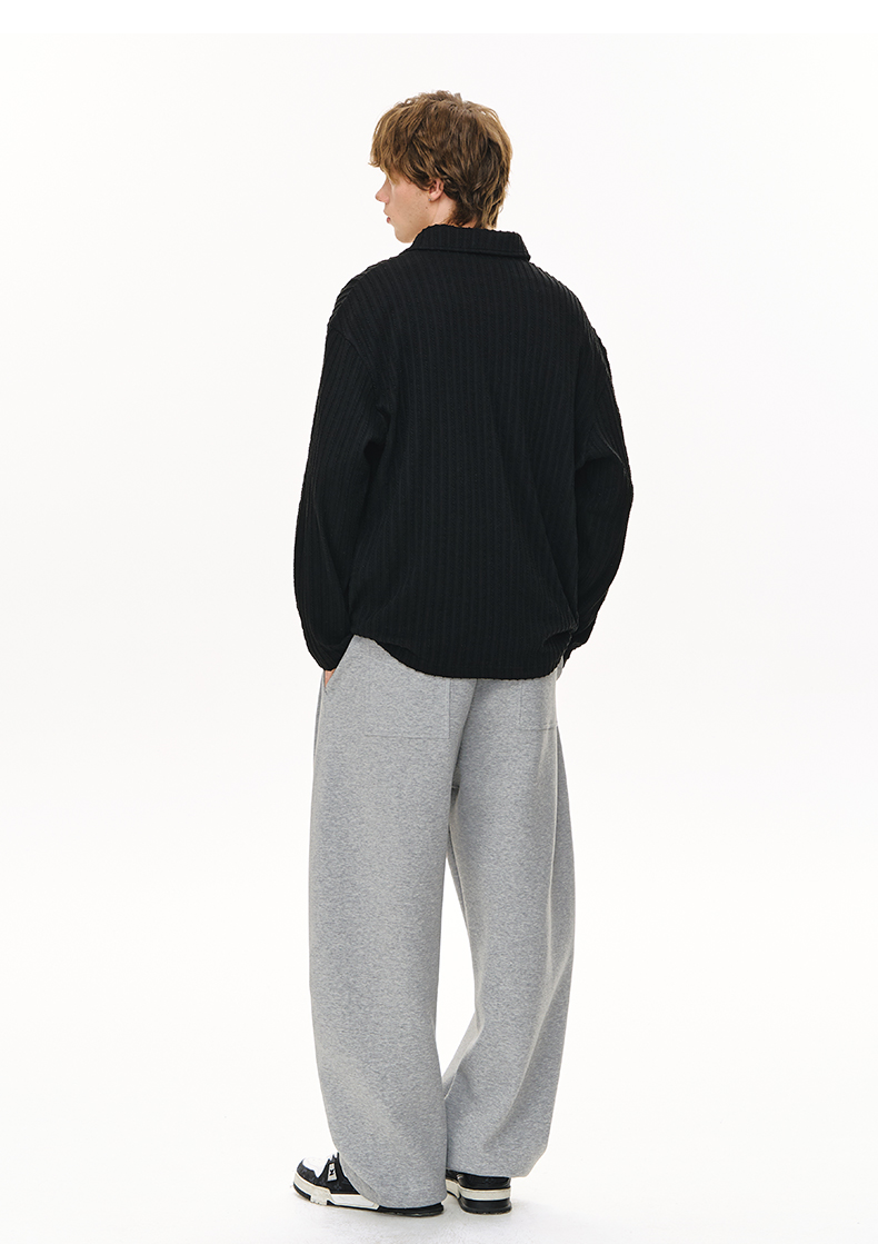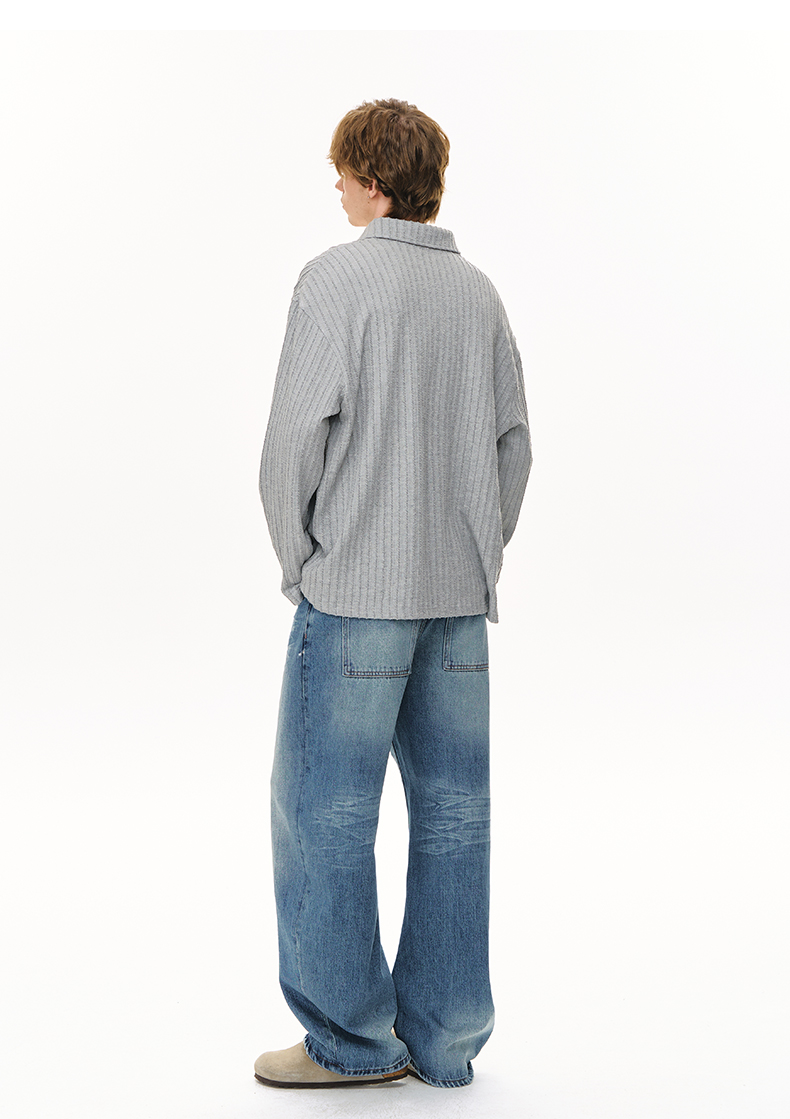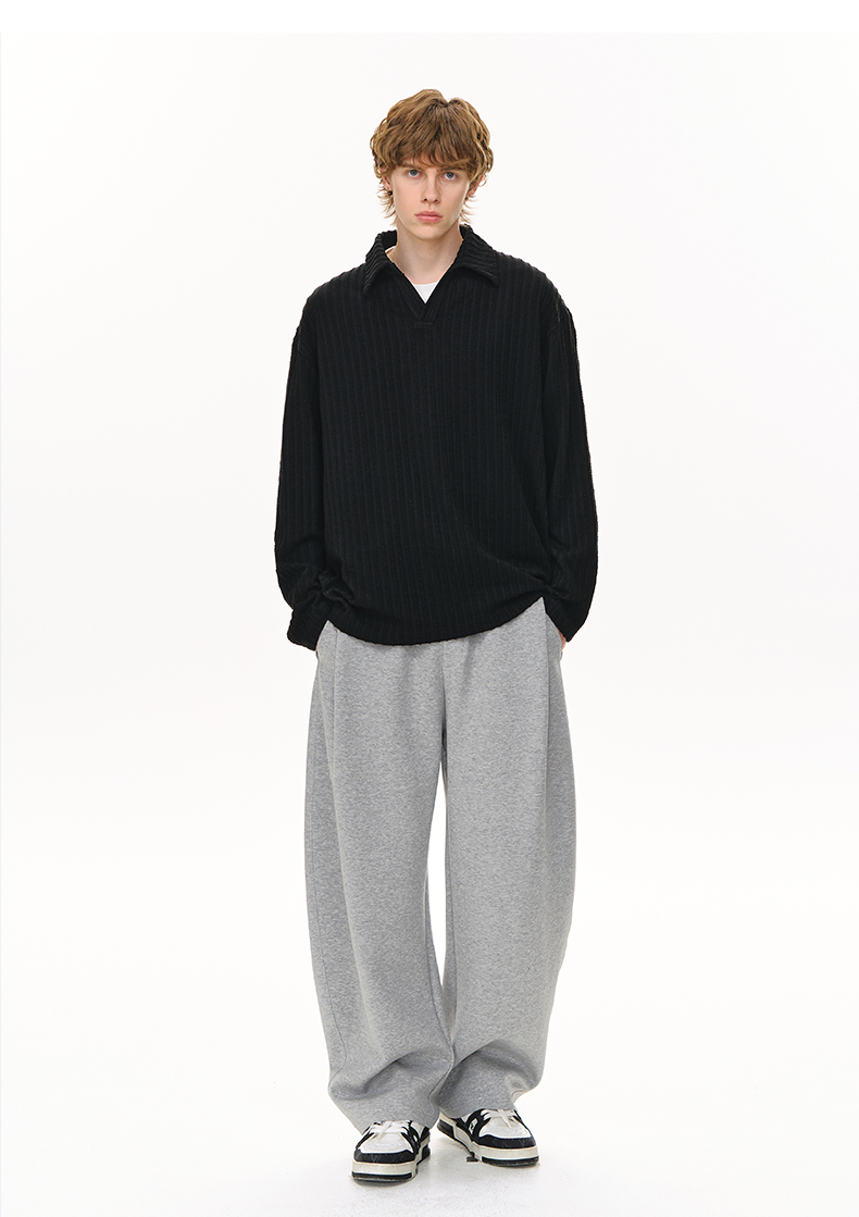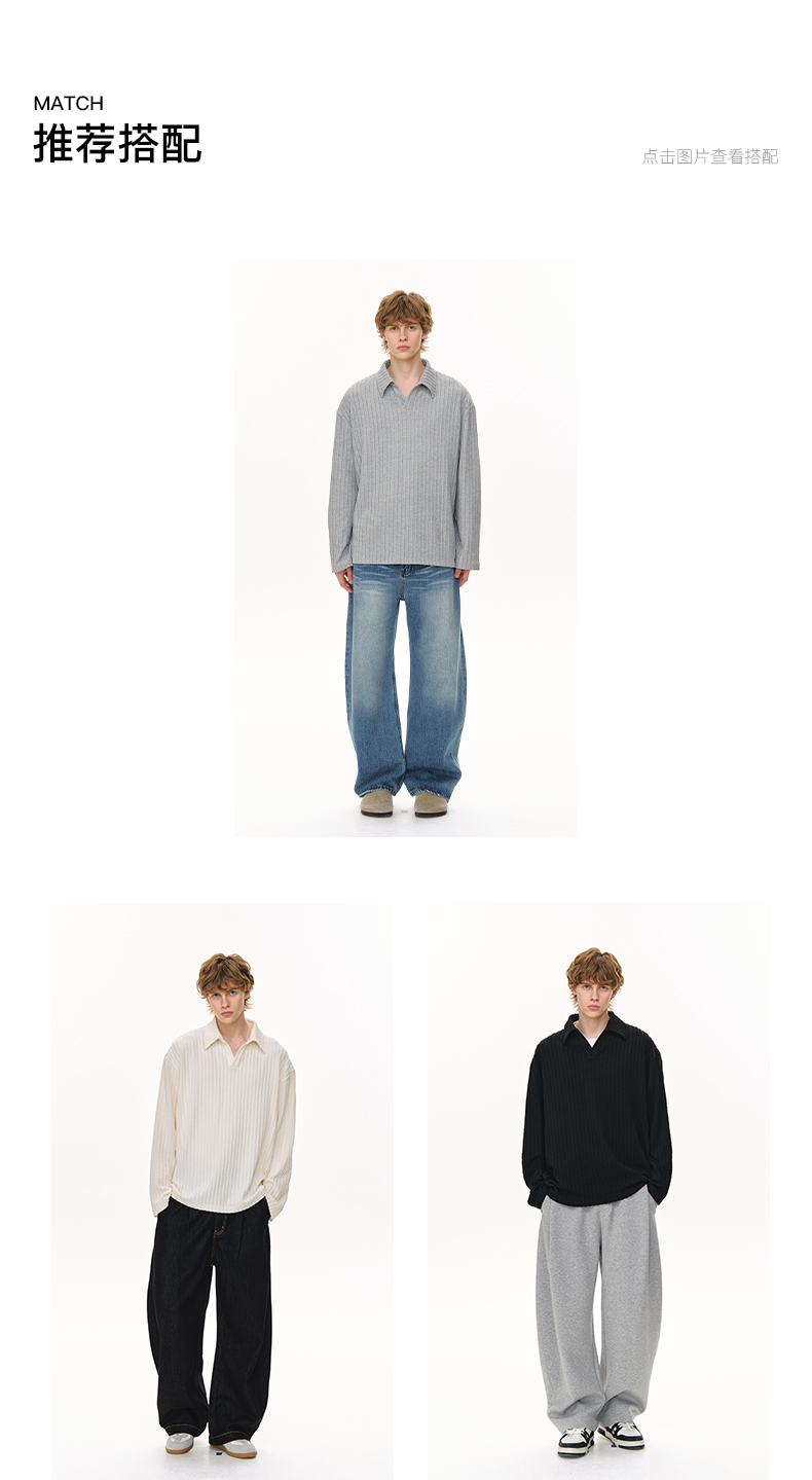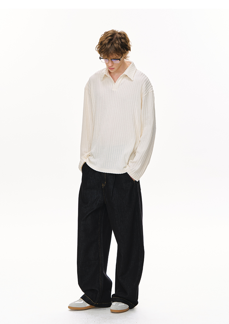 Climax Vision Old Money Style Comfortable and Lazy Wheat Pattern Knit Polo Shirt High-End V-Neck Long-Sleeve T-Shirt