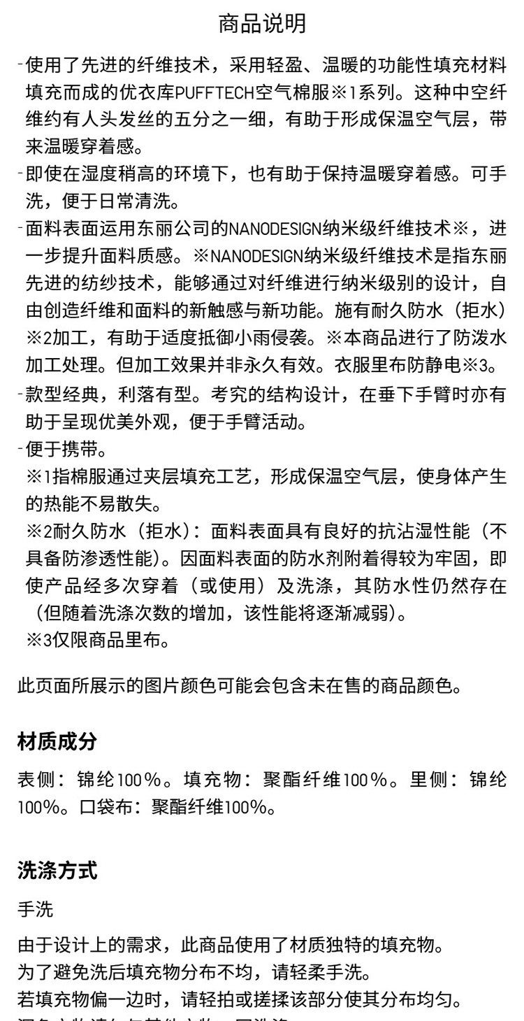 UNIQLO Mens PUFFTECH Air Cotton Jacket/Outwear jacket Portable 25 New arrival 479755