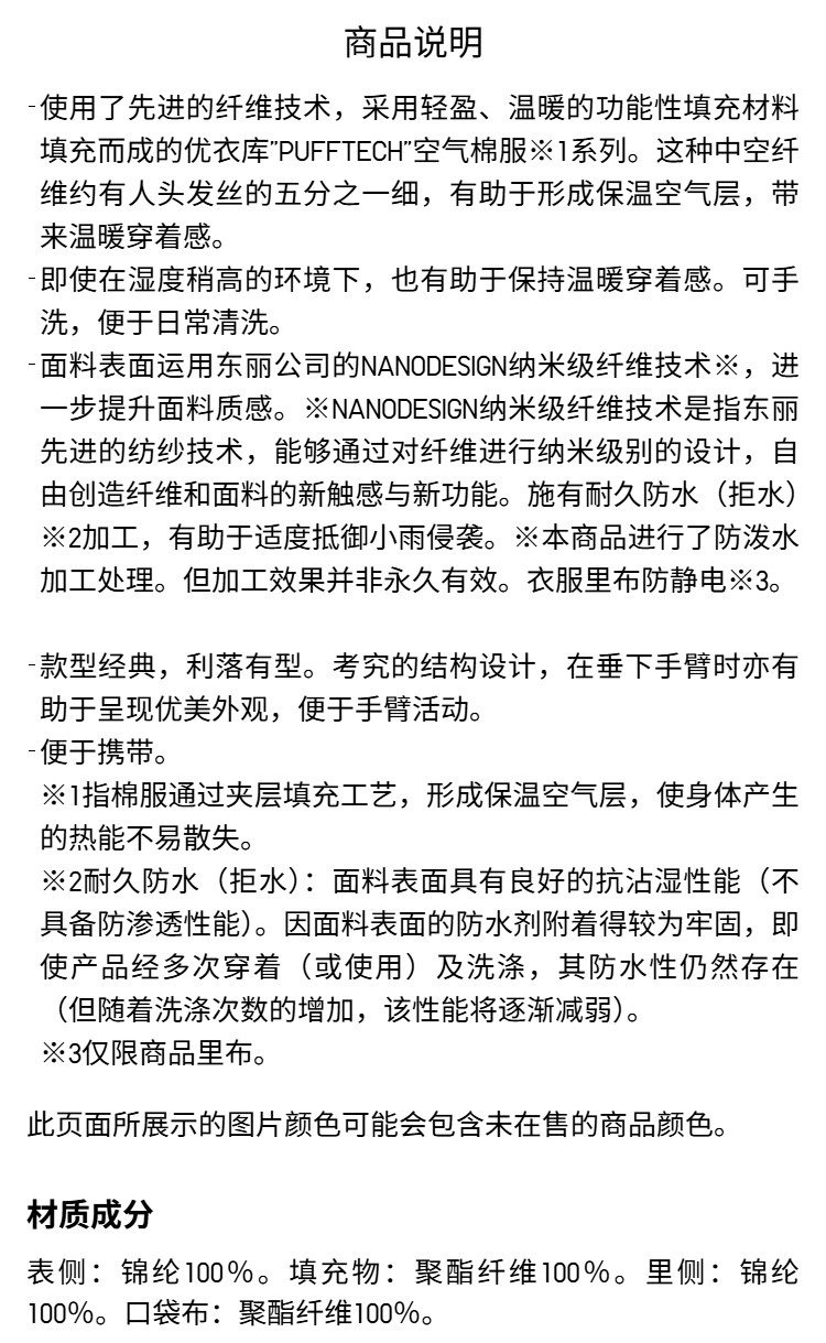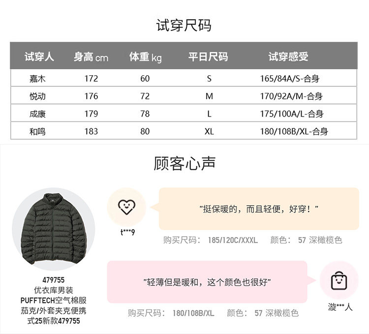 Uniqlo Men's Pufftech Air Cotton Jacket/Portable Puffer Jacket 479755
