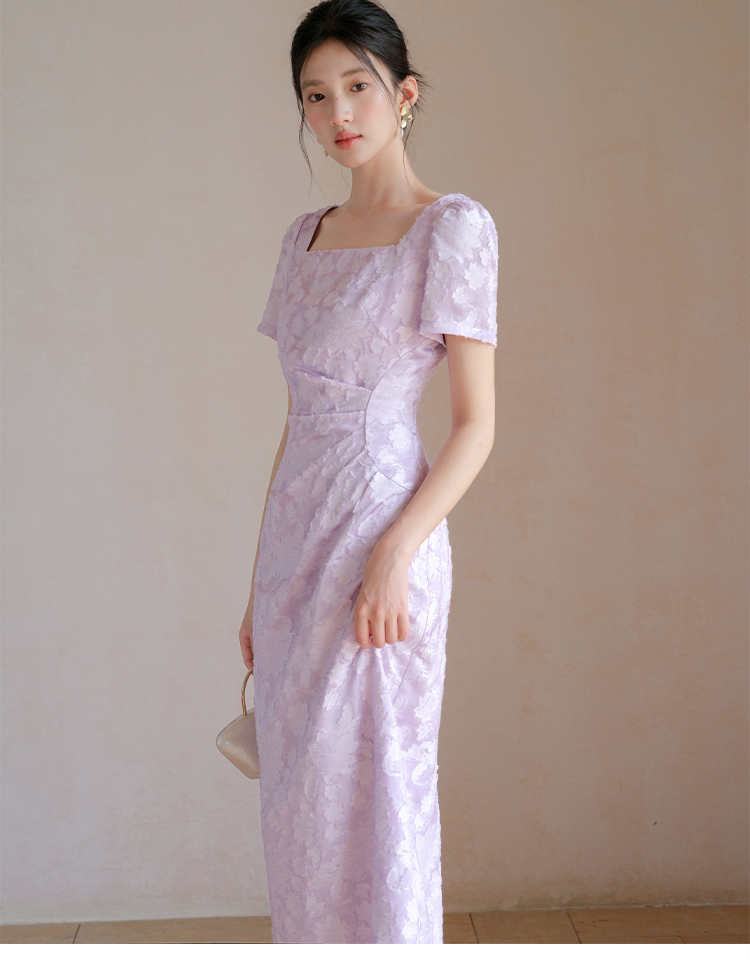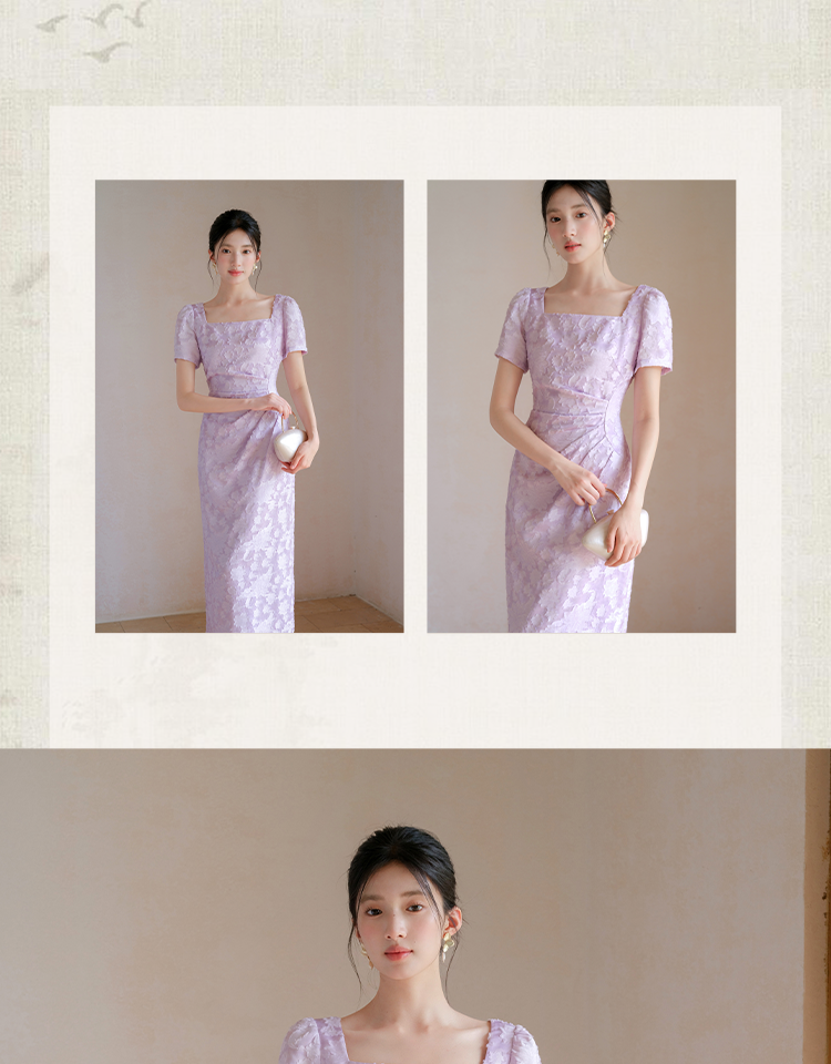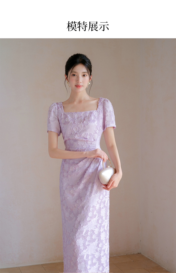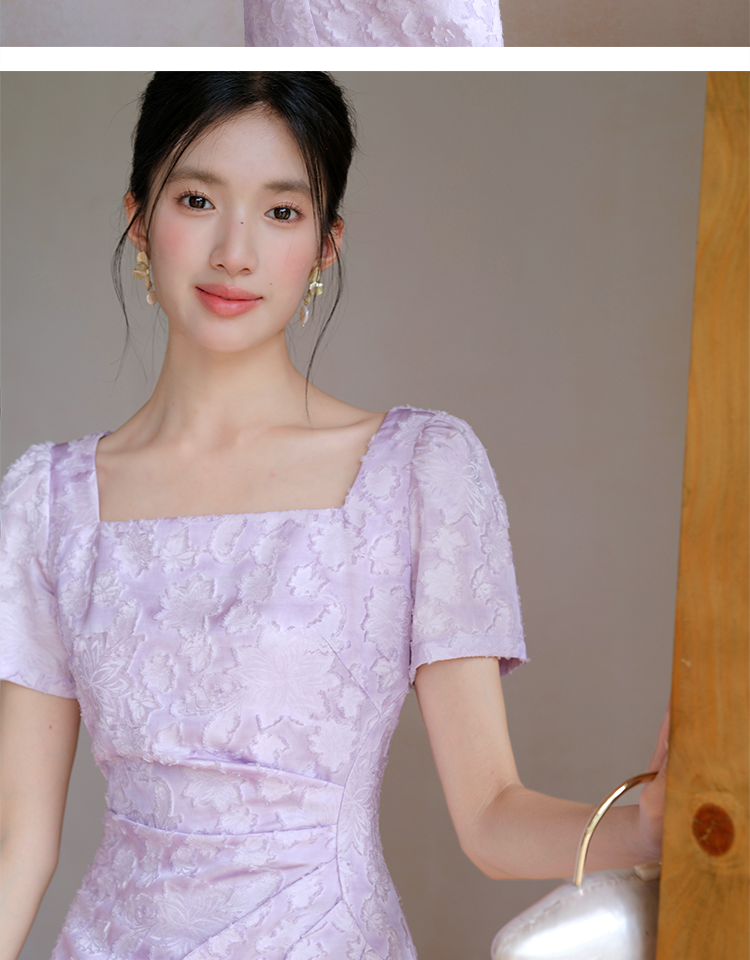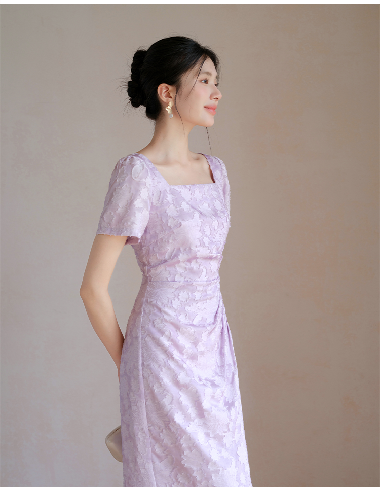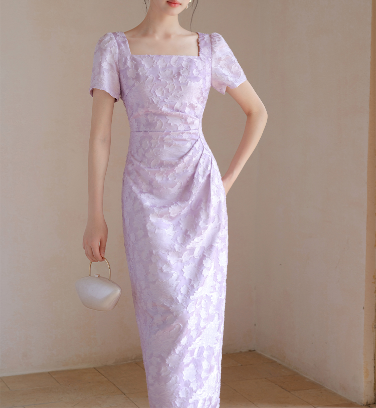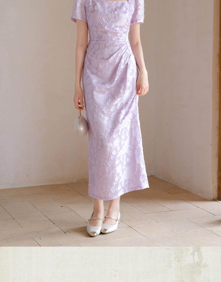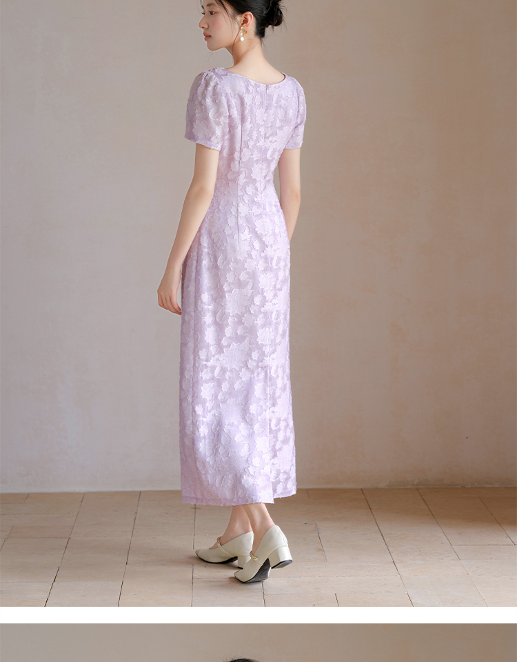 Chu Chanyi Purple Dress for Women 2025 Summer New Elegant Rayon Three-Dimensional Cut Flower Slim Pleated Long Dress