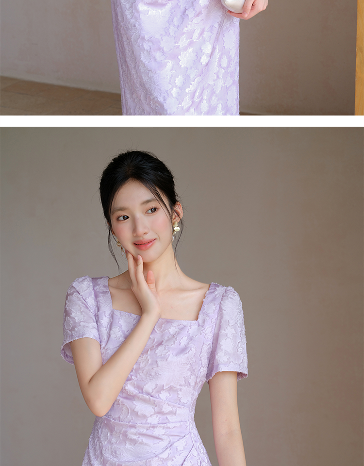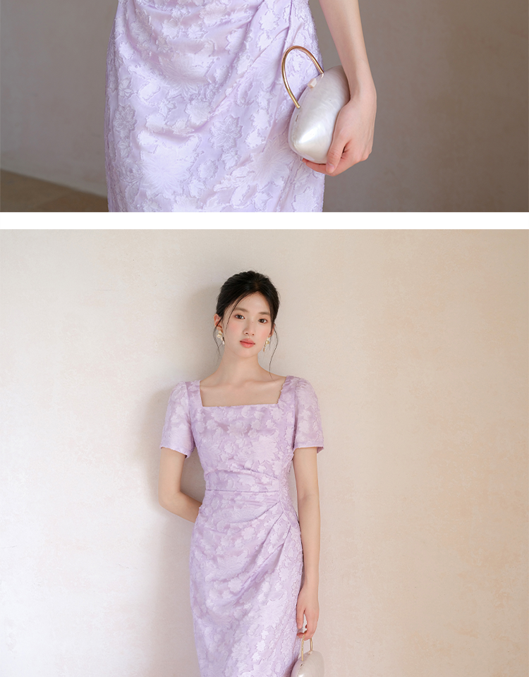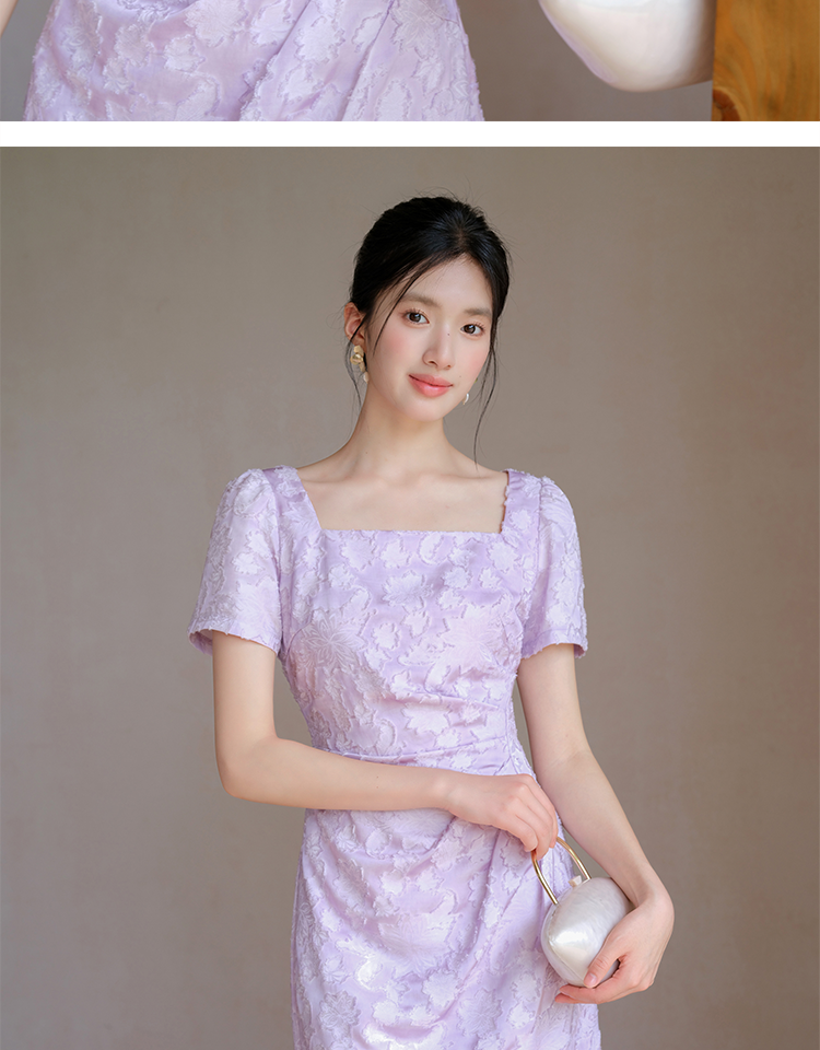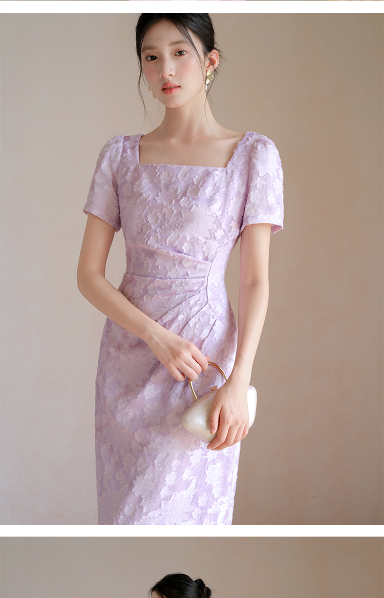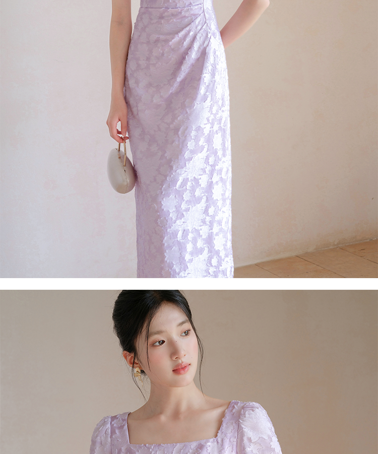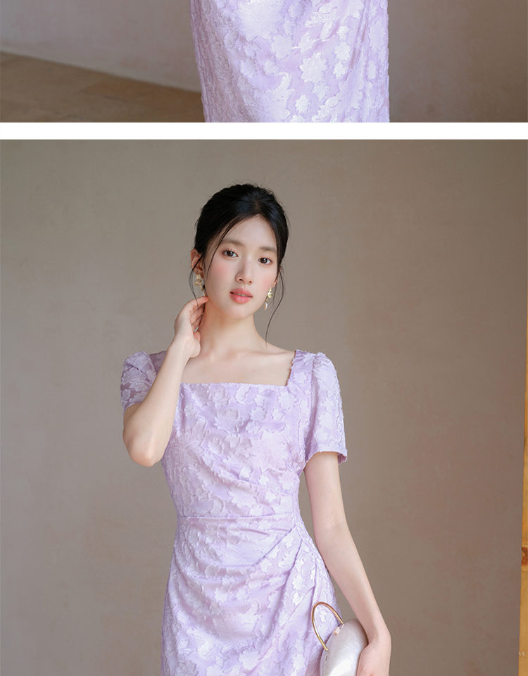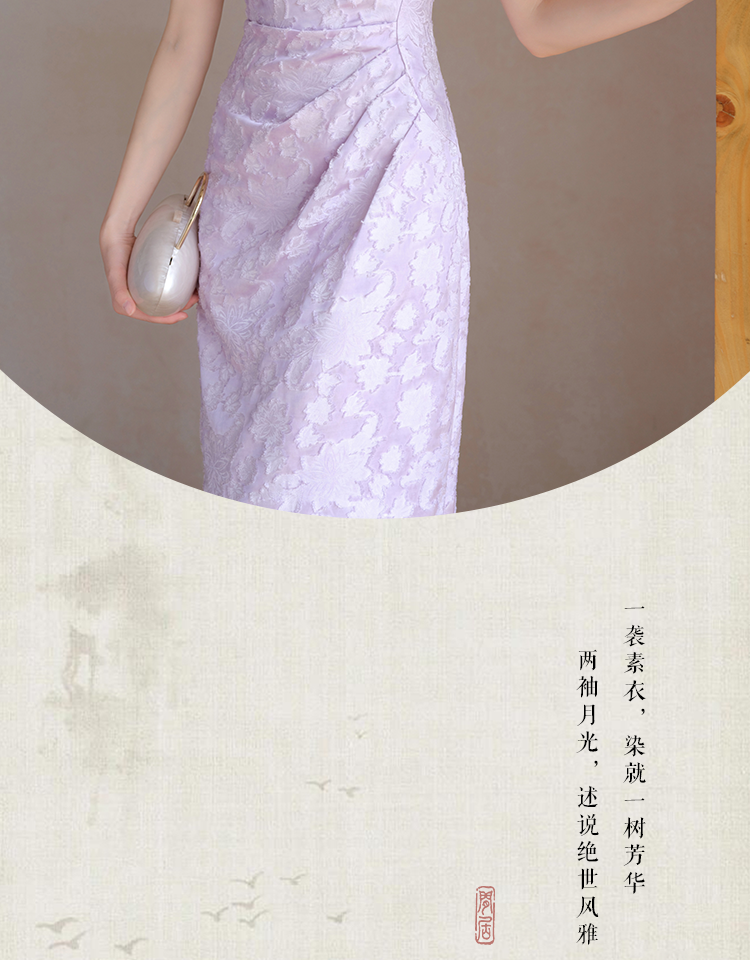 Chu Chanyi Purple Dress for Women 2025 Summer New Elegant Rayon Three-Dimensional Cut Flower Slim Pleated Long Dress