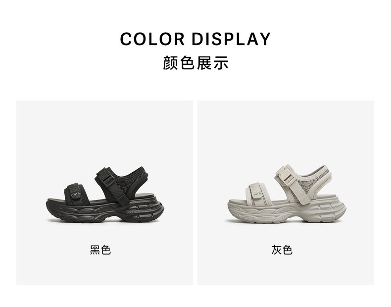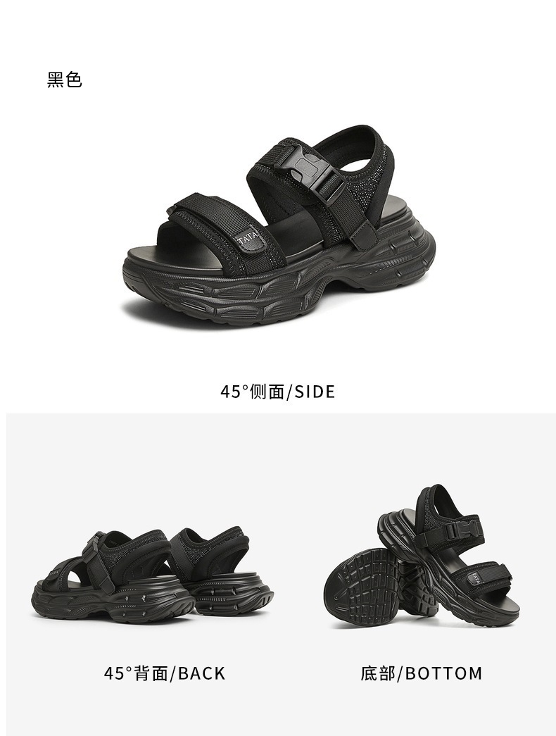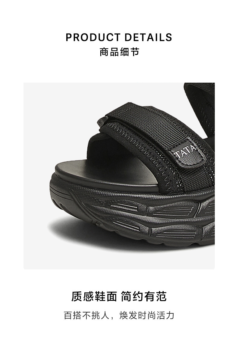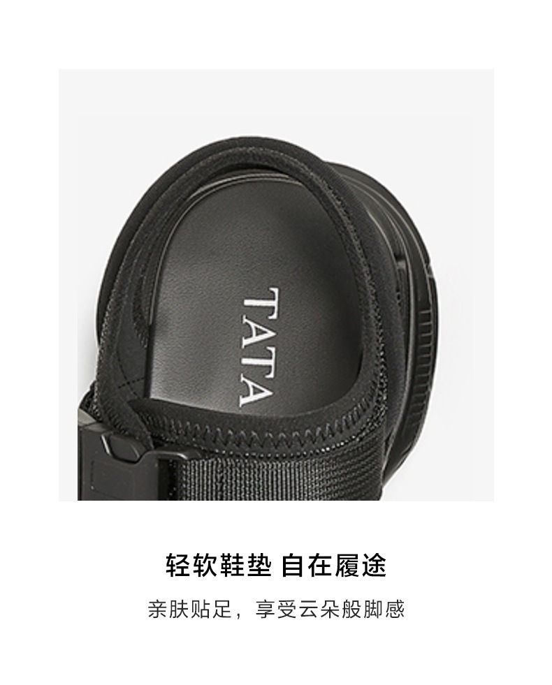 Tata Thick-Soled Beach Sandals for Women Black Sports Sandals Velcro Sandals 2025 Autumn New Cxm01Bl5