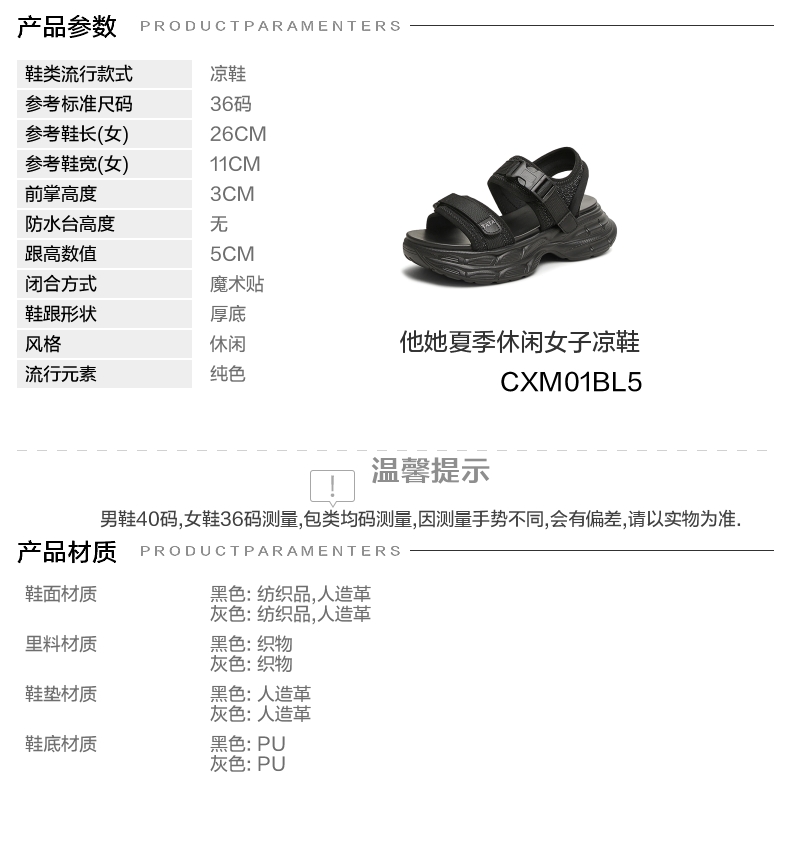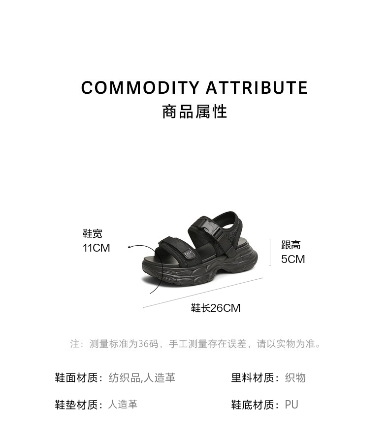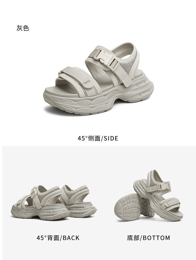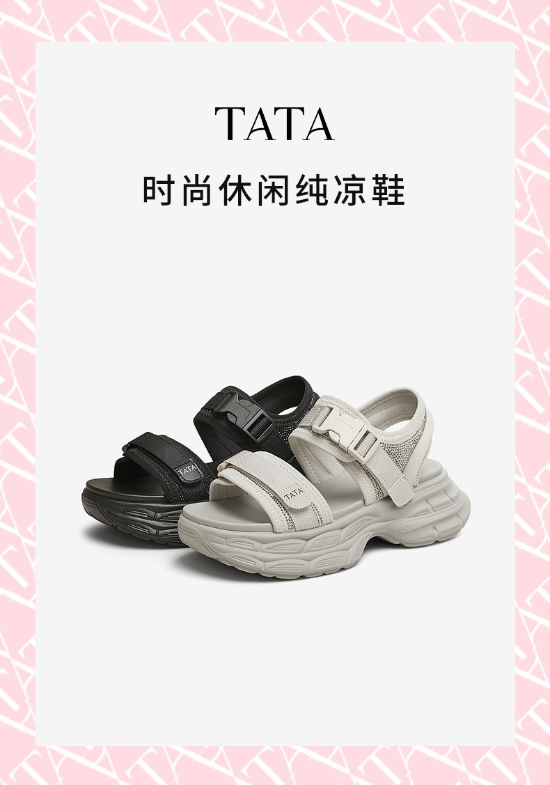 Tata Thick-Soled Beach Sandals for Women Black Sports Sandals Velcro Sandals 2025 Autumn New Cxm01Bl5