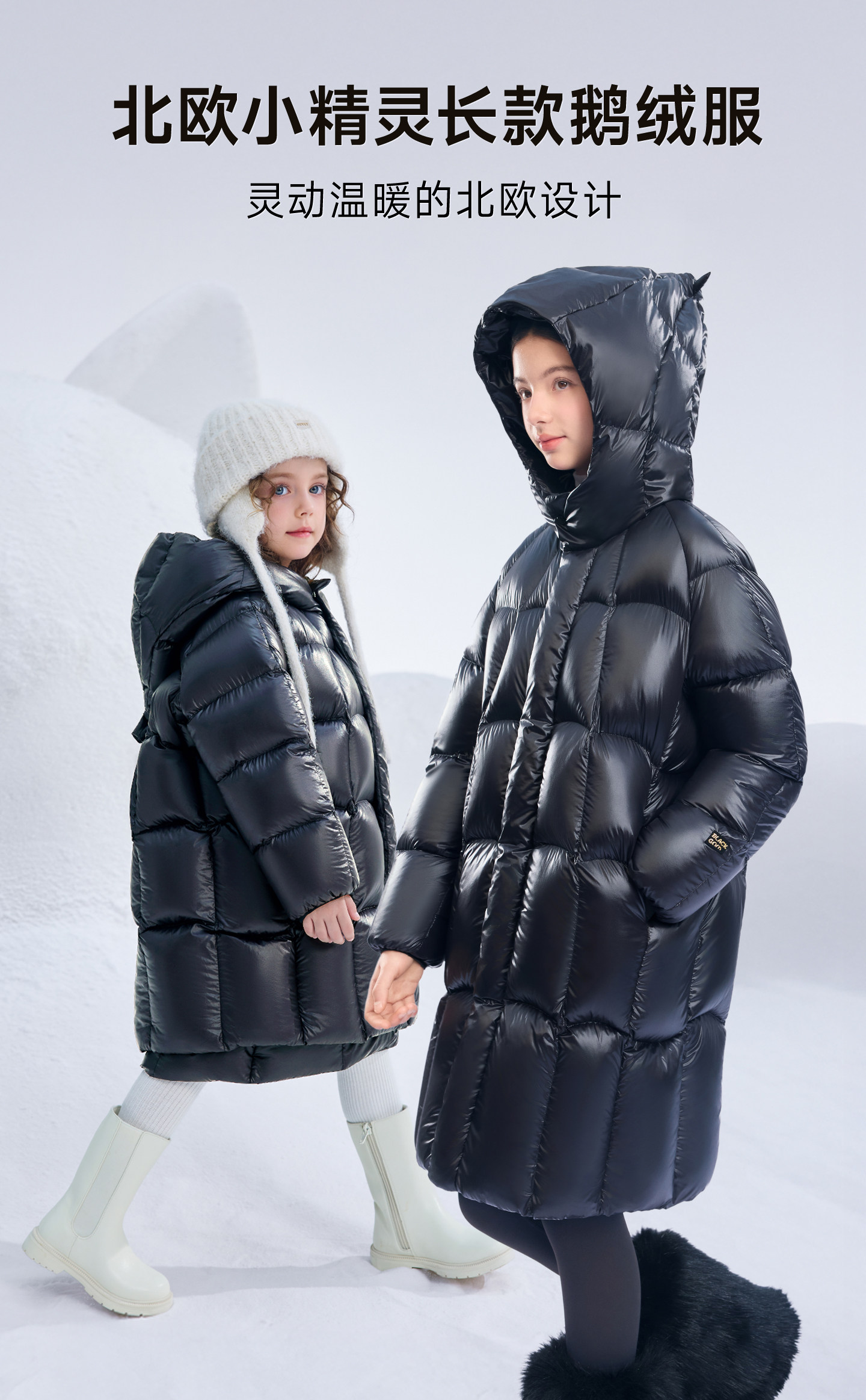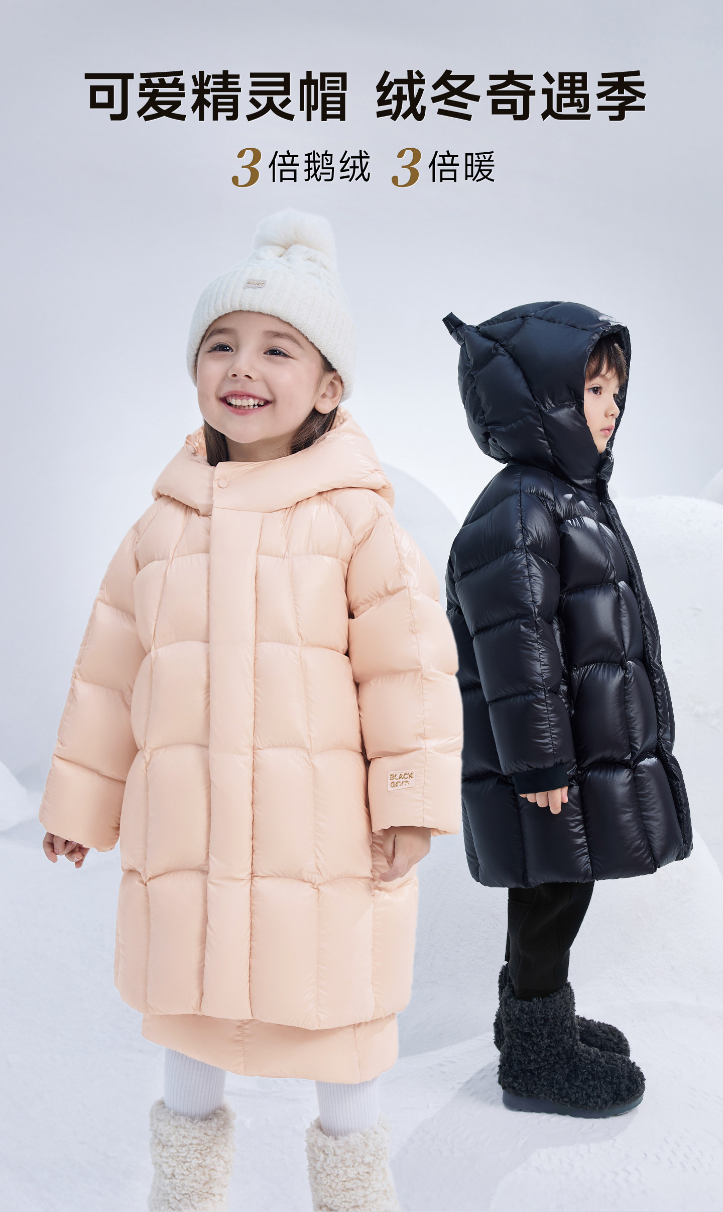 [New Year's Outfit] Gaofan Black Gold Children's Goose down Jacket 5.0 Long Thickened Nordic Elf Hat down Jacket Winter