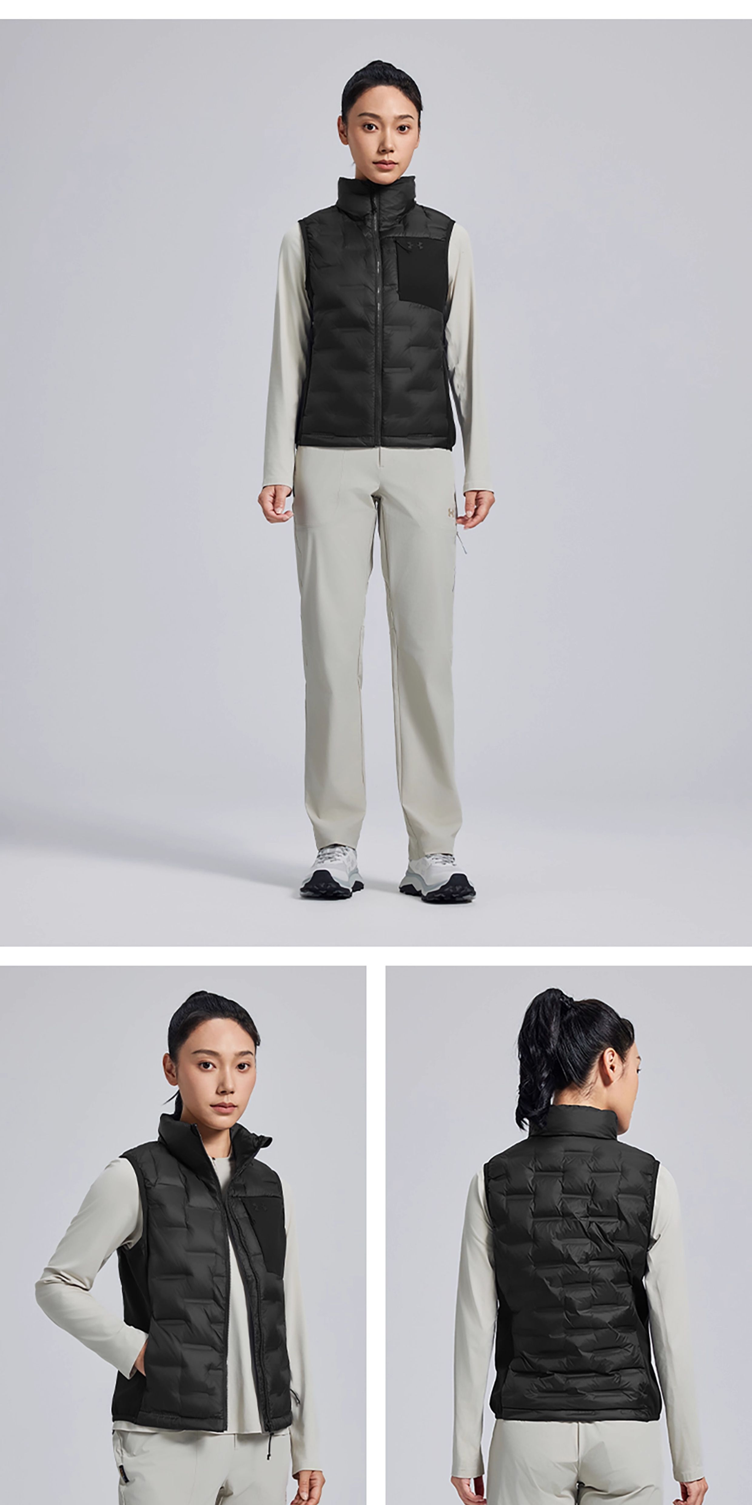 Under Armour Official 700 Fill Power down Vest for Women, Autumn and Winter Stand-Up Collar Vest, Windproof and Warm Duck down Lightweight down Jacket
