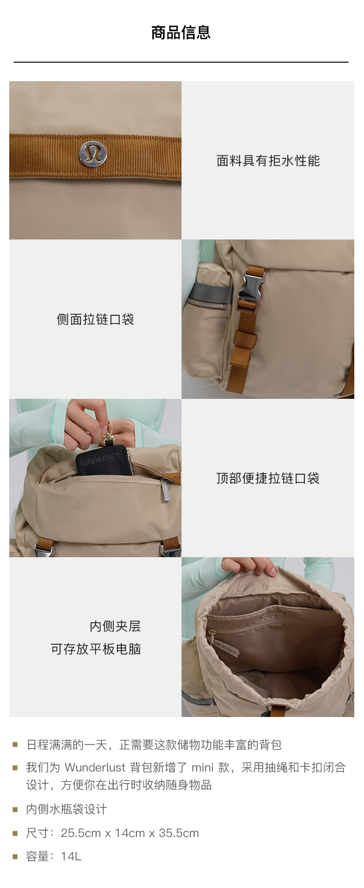 Wunderlust Backpack *Mini Water-Repellent Backpack丨Lululemon丨Lu9B23S