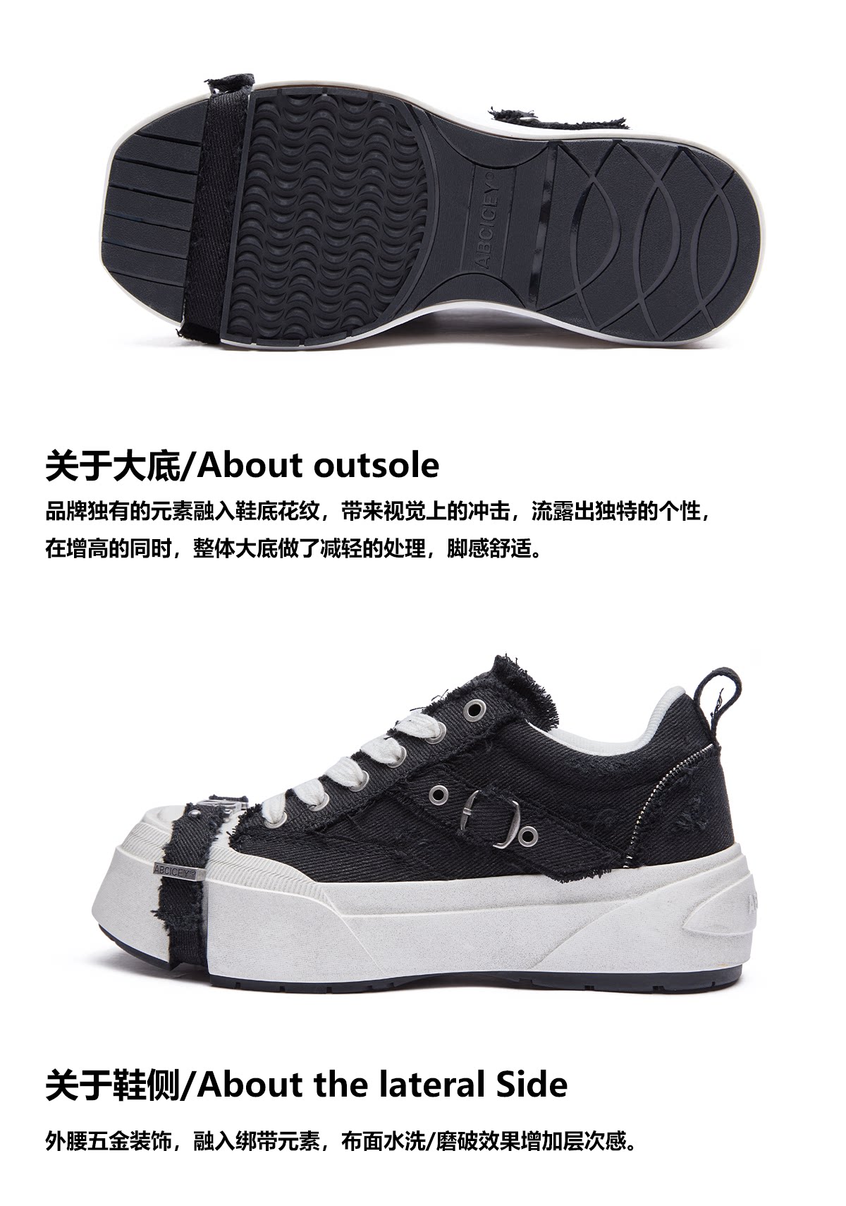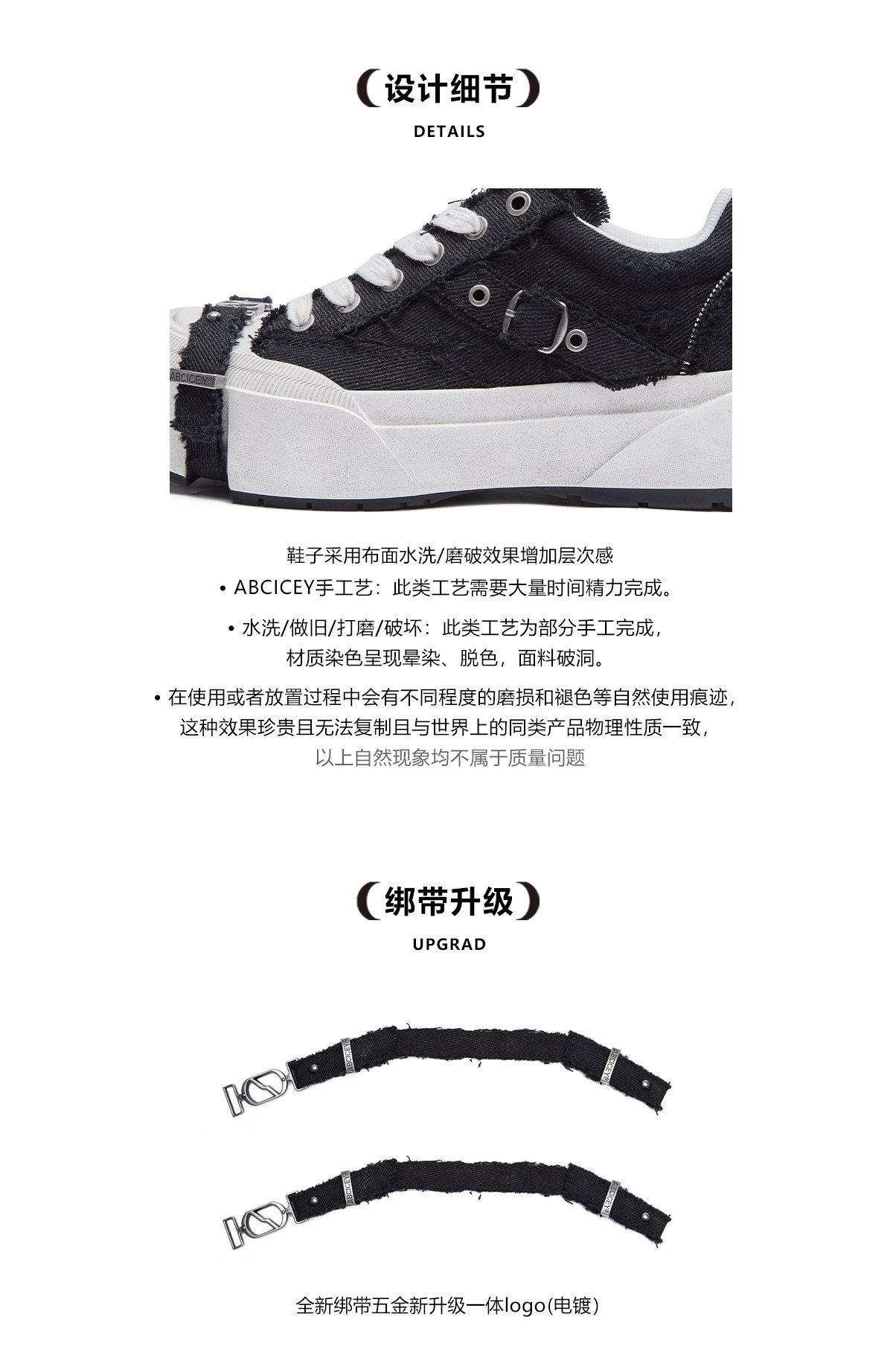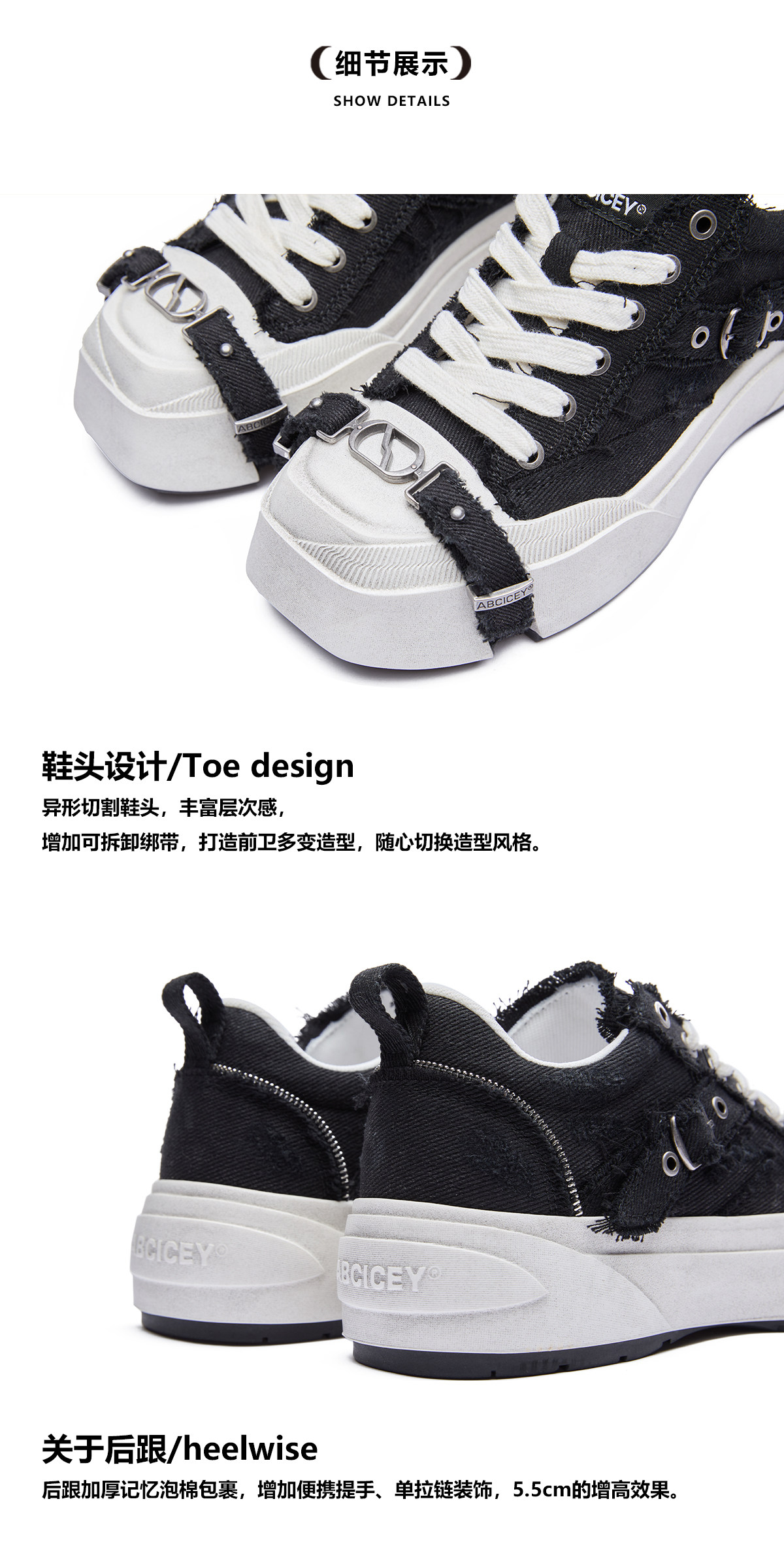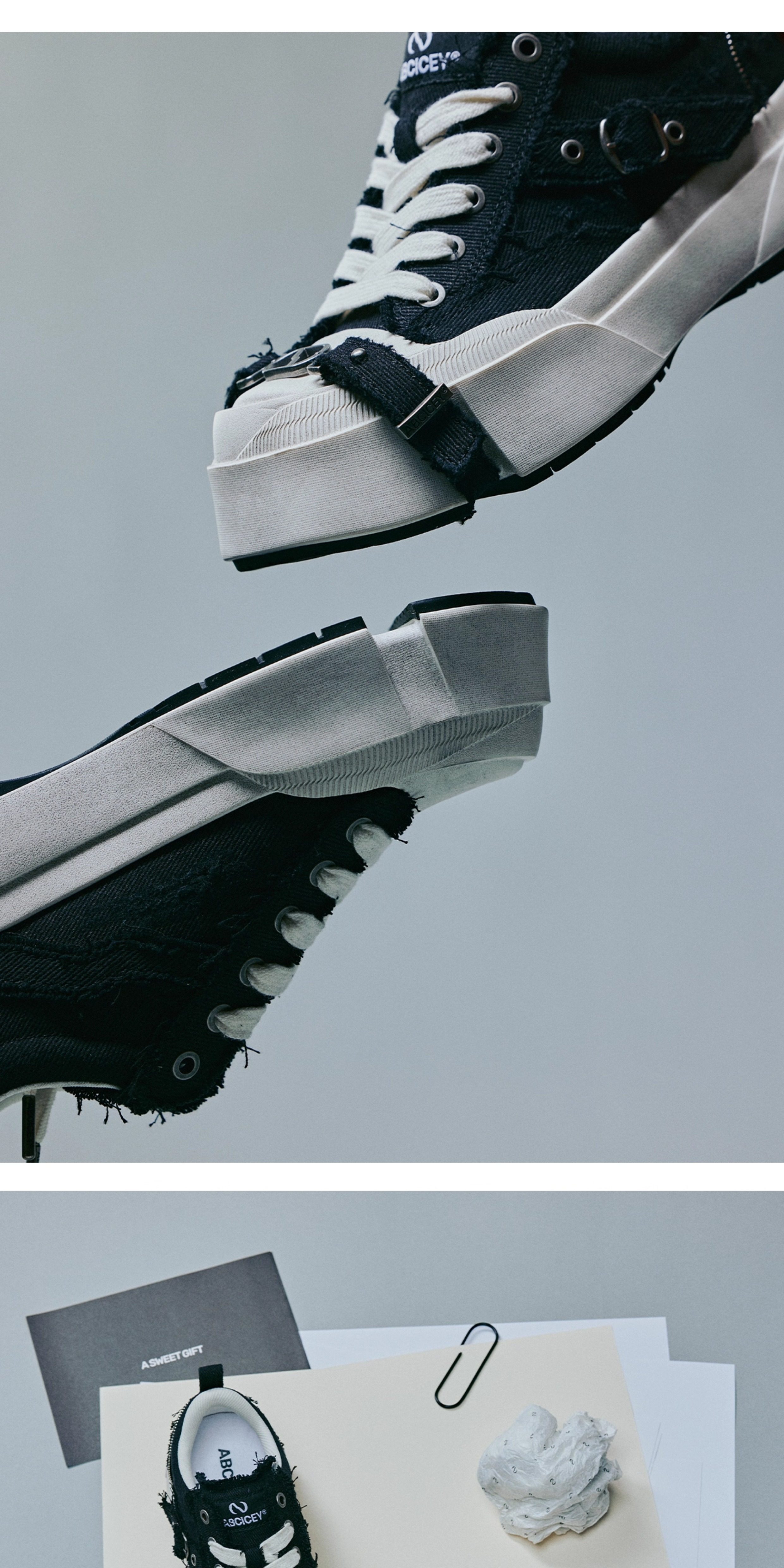 Abcicey Gravity Series Square-Toe Canvas Shoes, Washed Black, Niche Casual Lace-Up Shoes, Fashionable Height-Increasing Thick-Soled Shoes