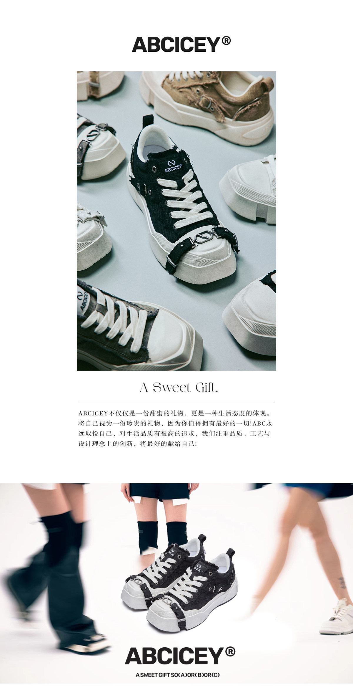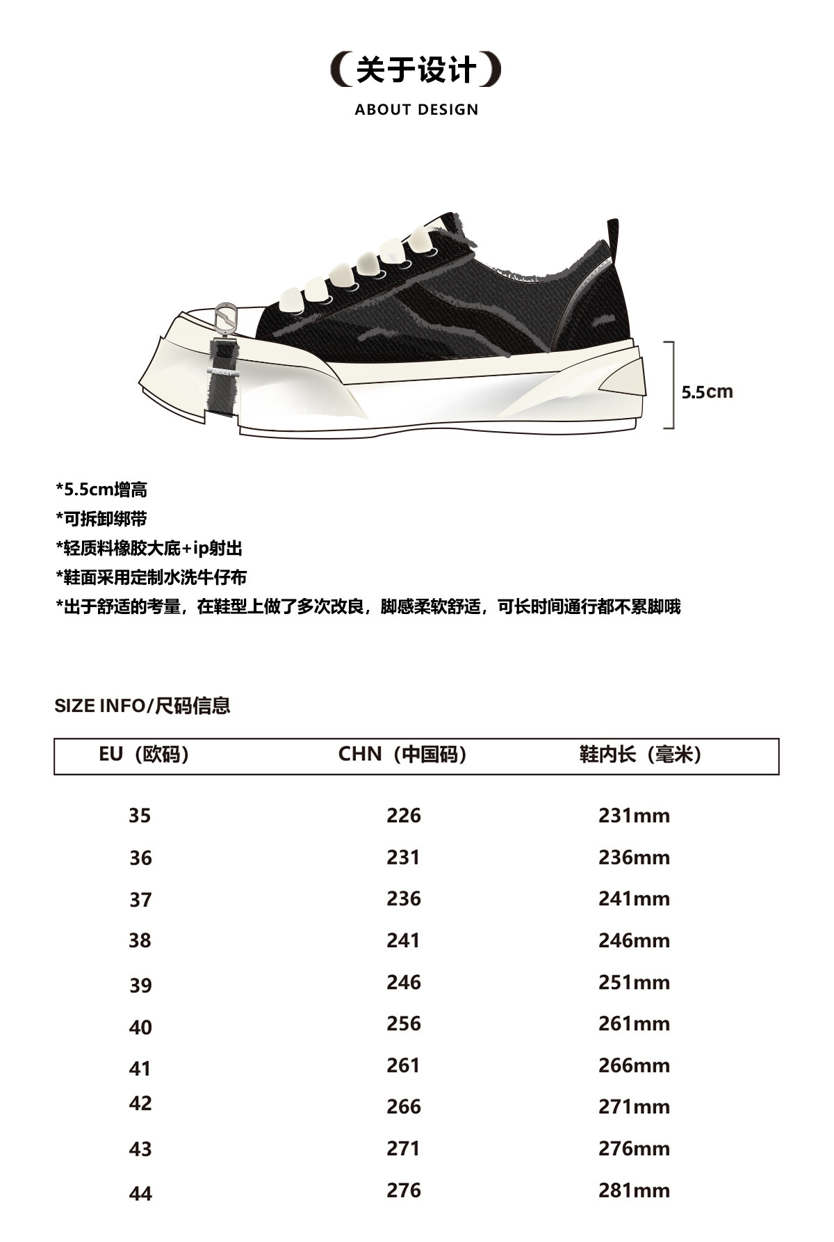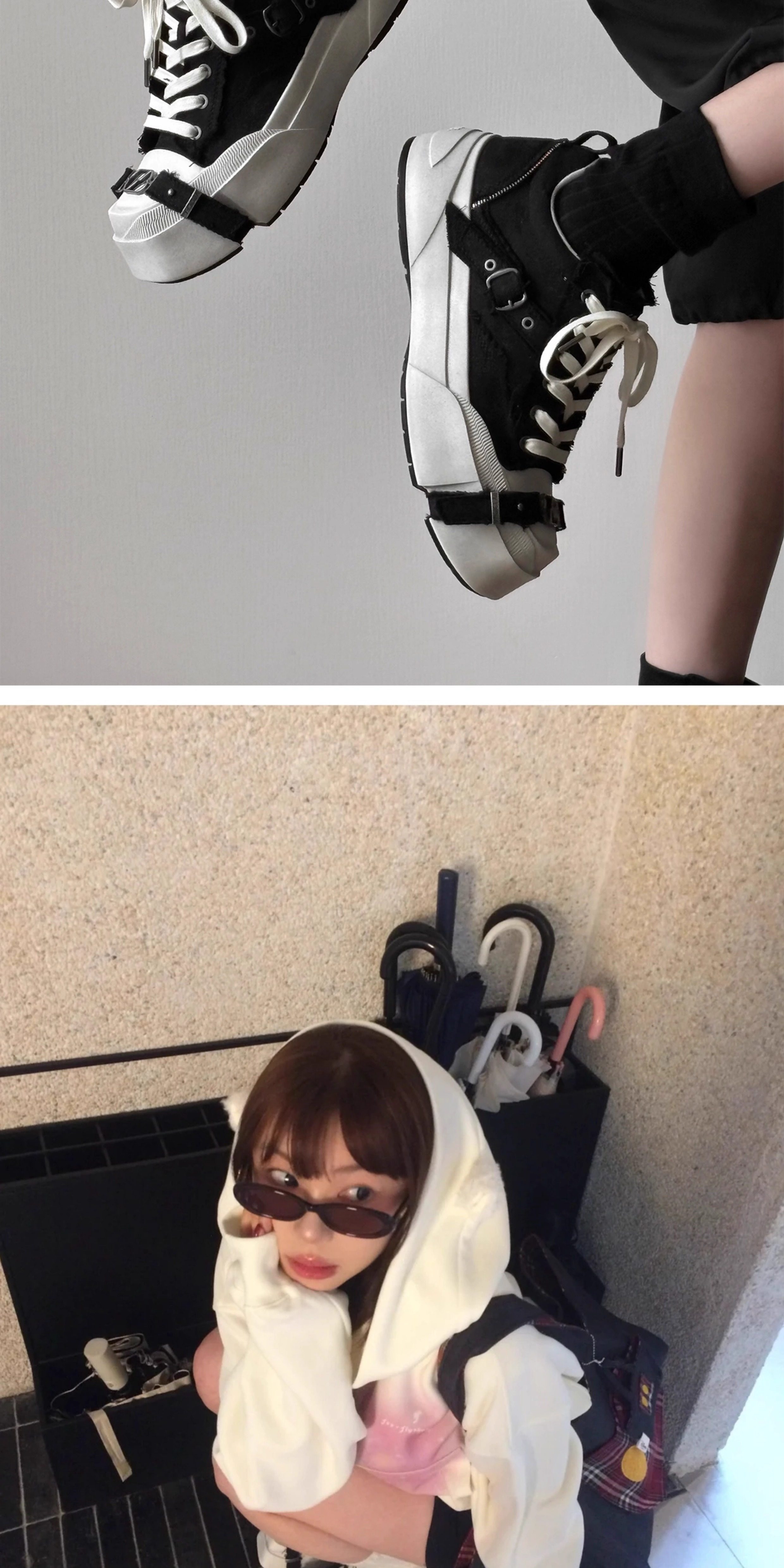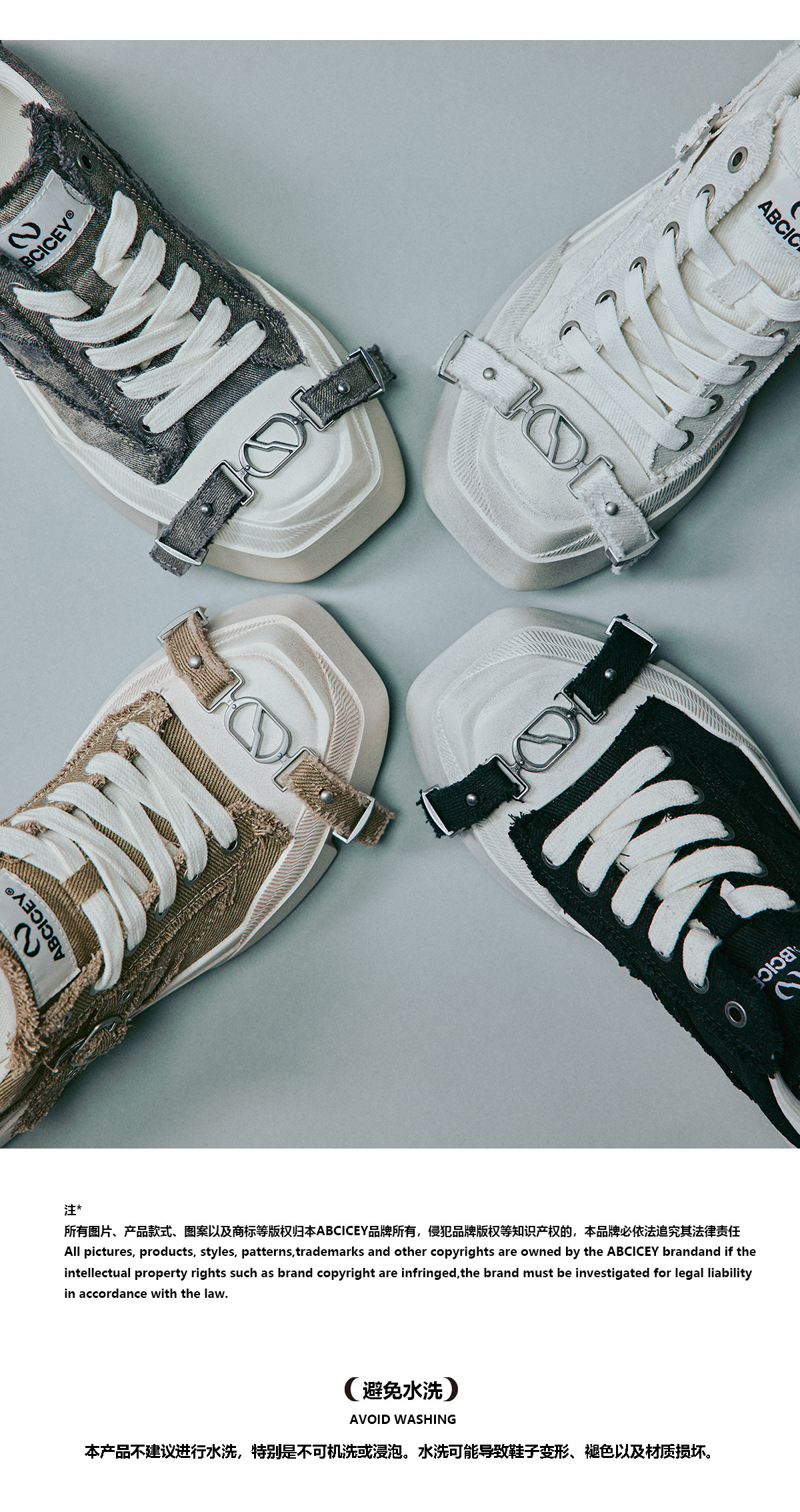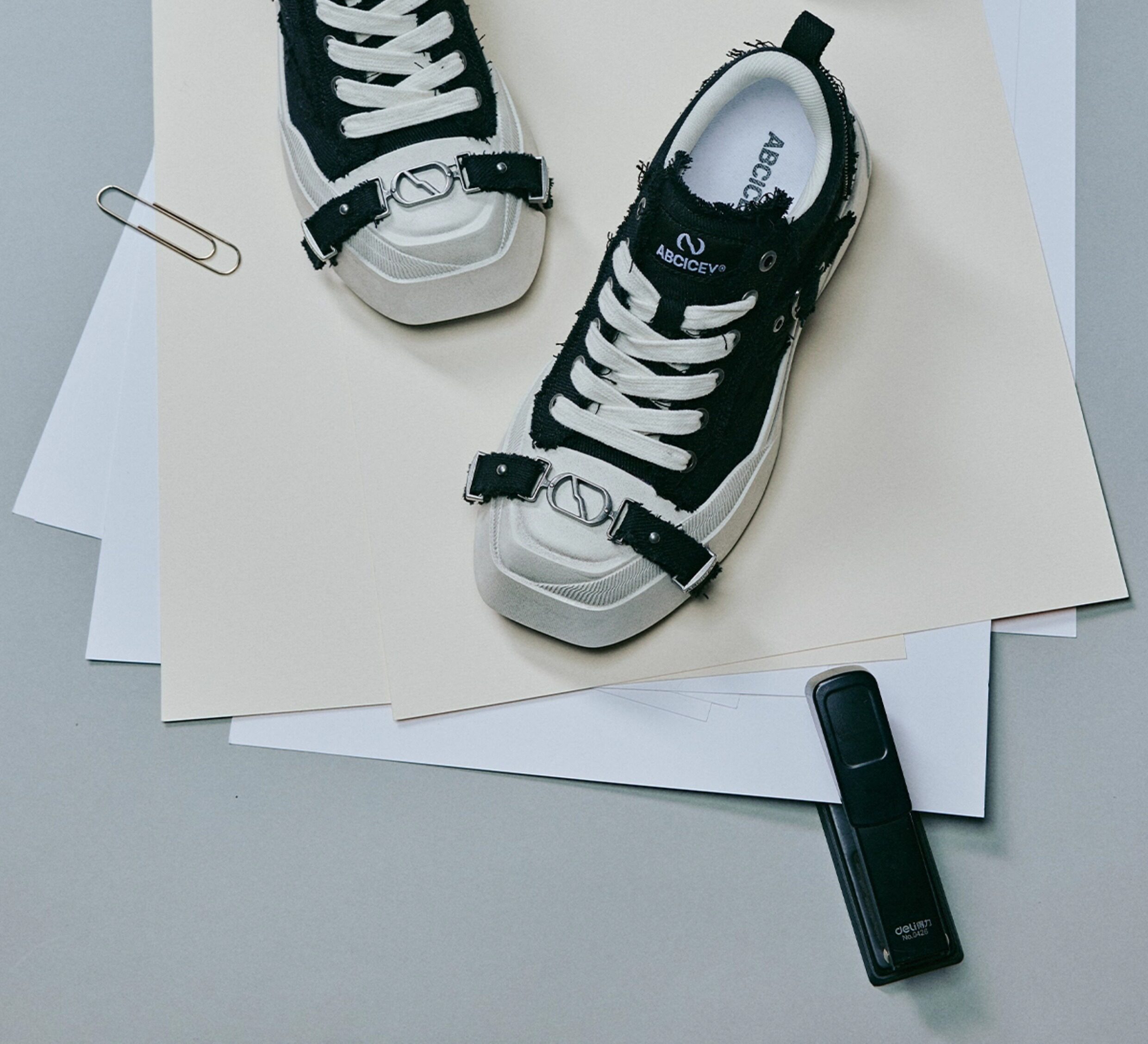 Abcicey Gravity Series Square-Toe Canvas Shoes, Washed Black, Niche Casual Lace-Up Shoes, Fashionable Height-Increasing Thick-Soled Shoes