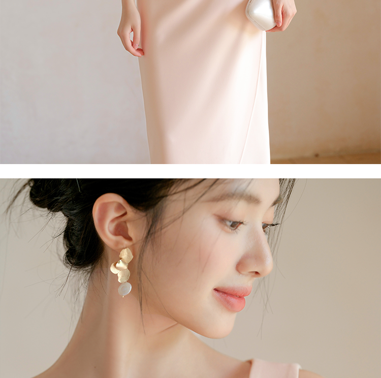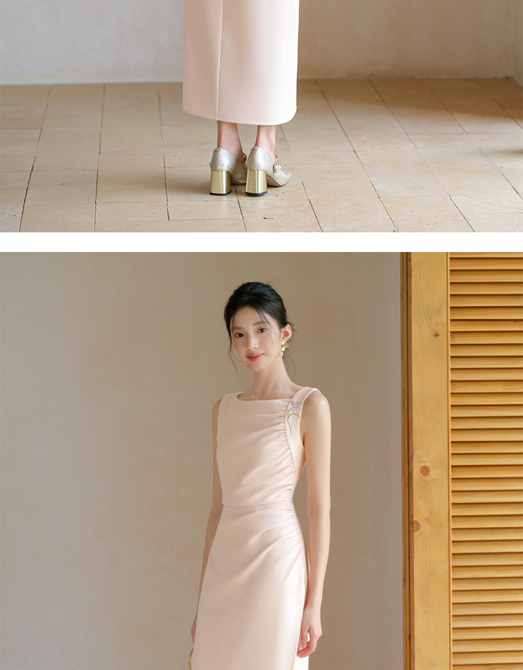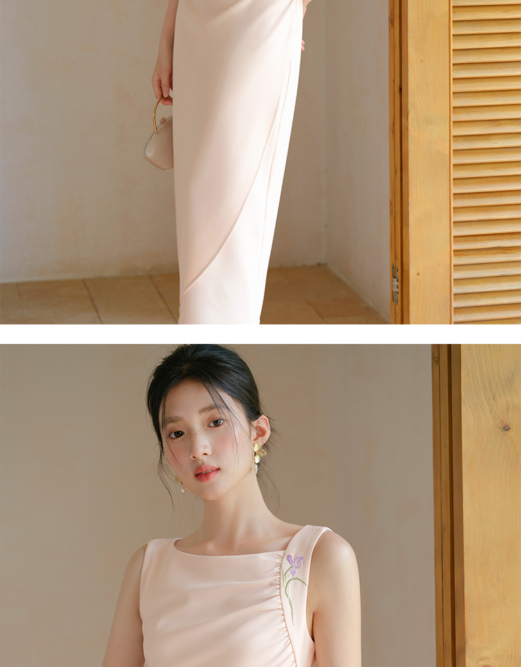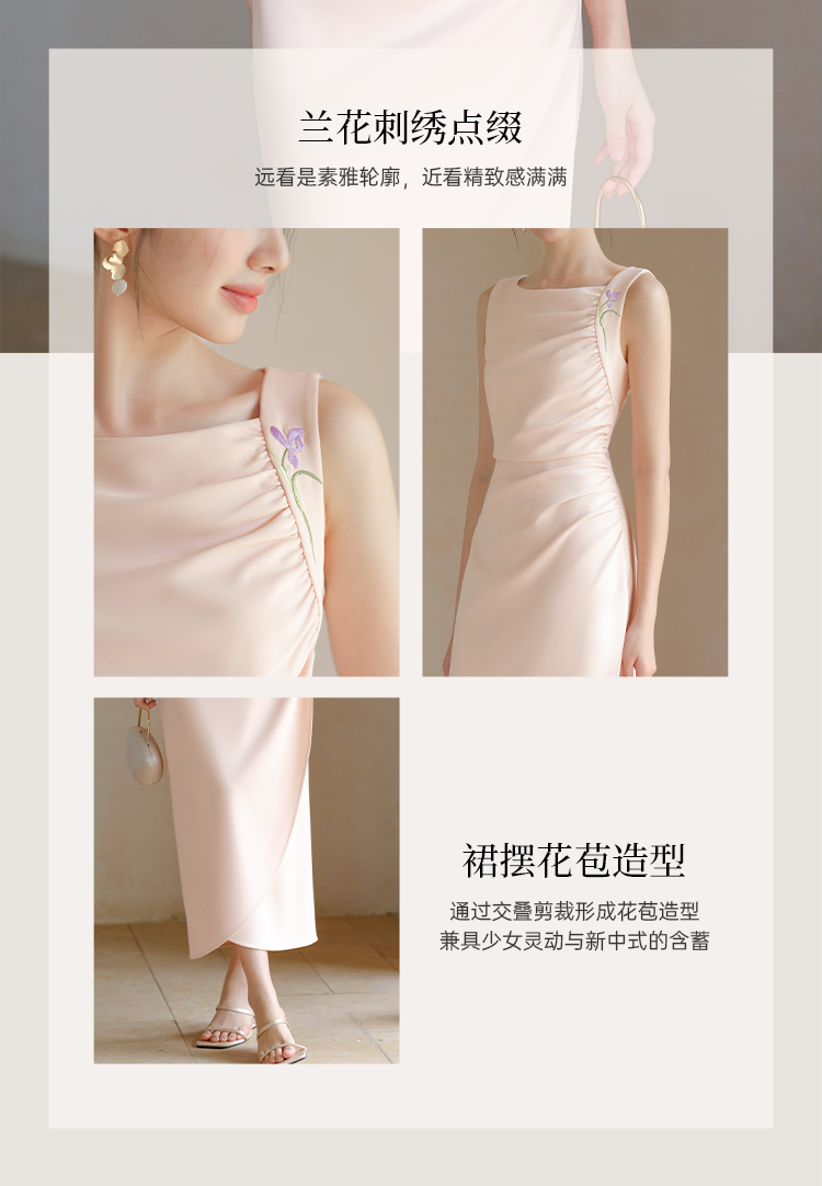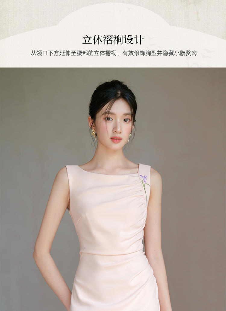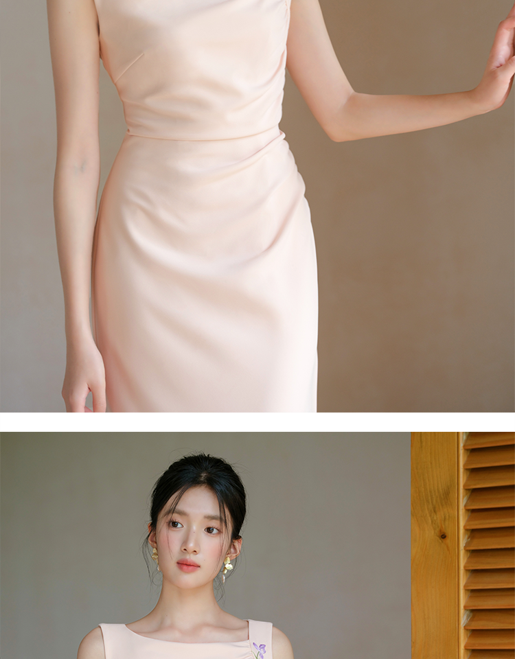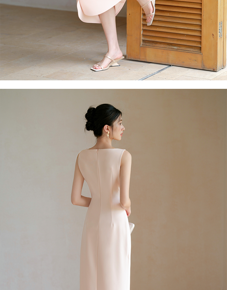 Chic and Elegant Champagne Pink Dress for Women, Summer 2025, High-End, Graceful, Waist-Cinching, Pleated, Light Formal Long Dress