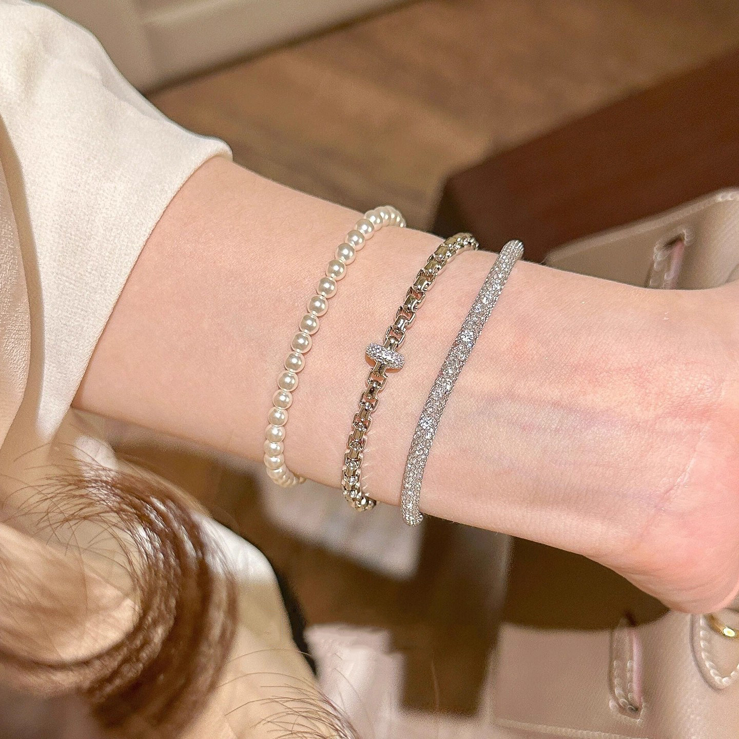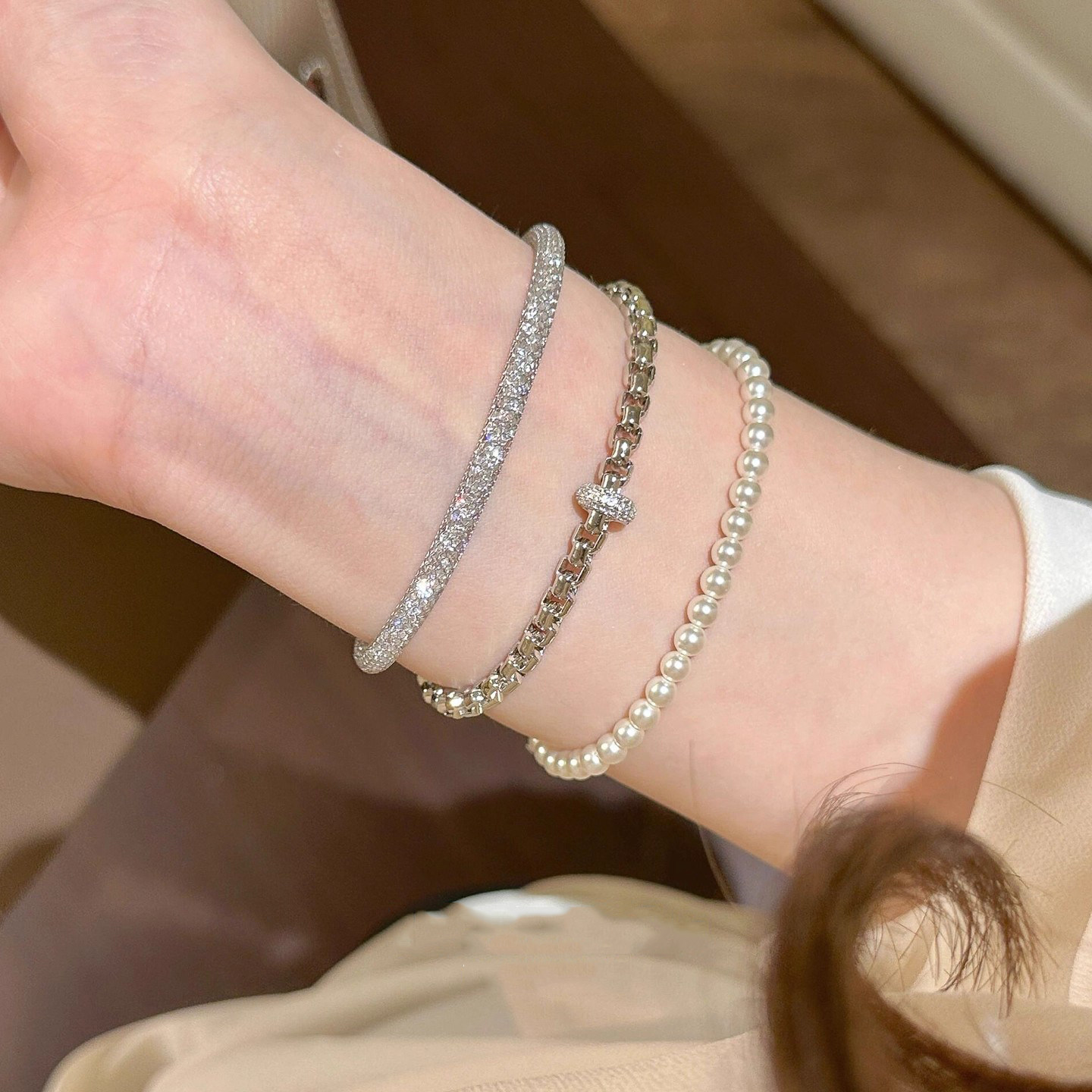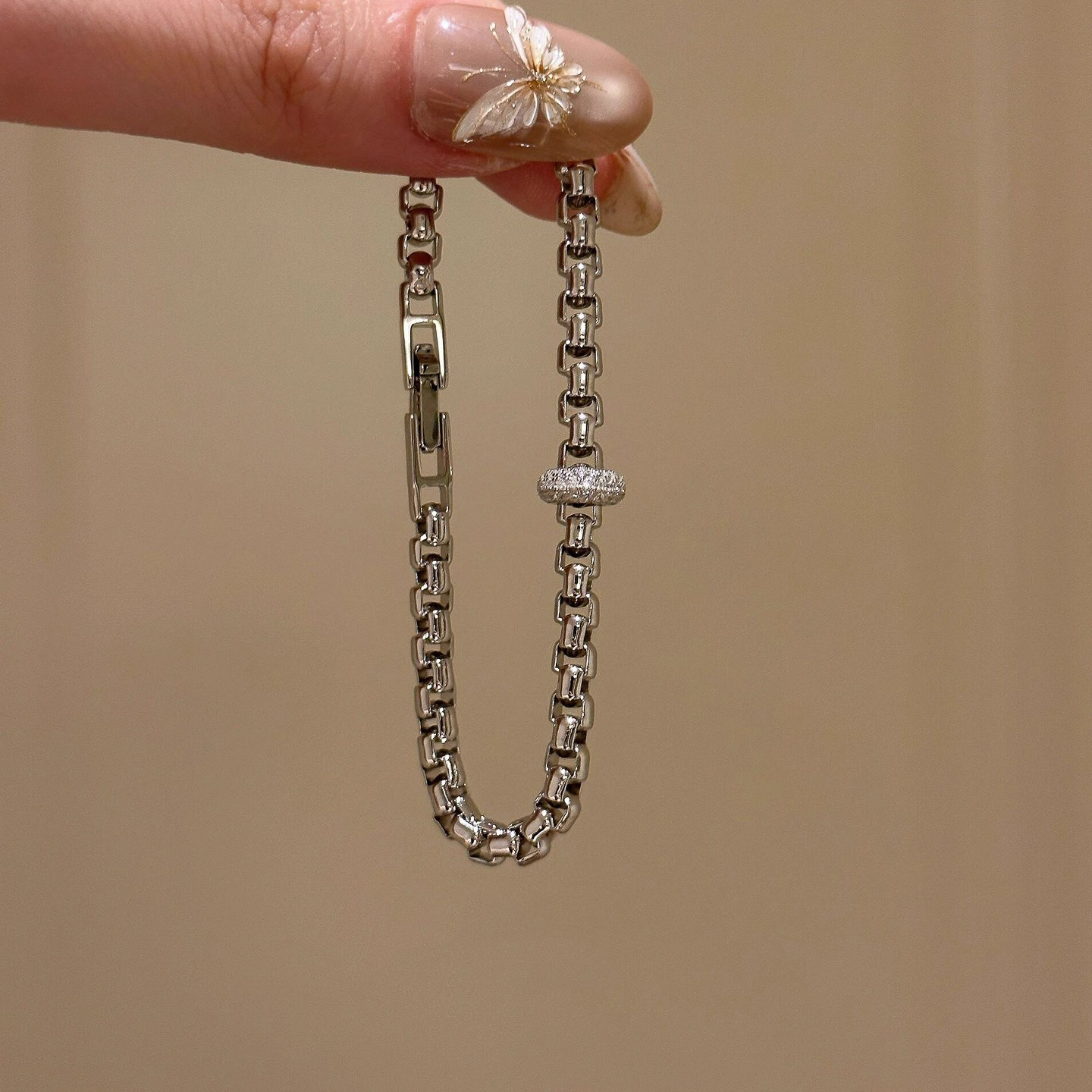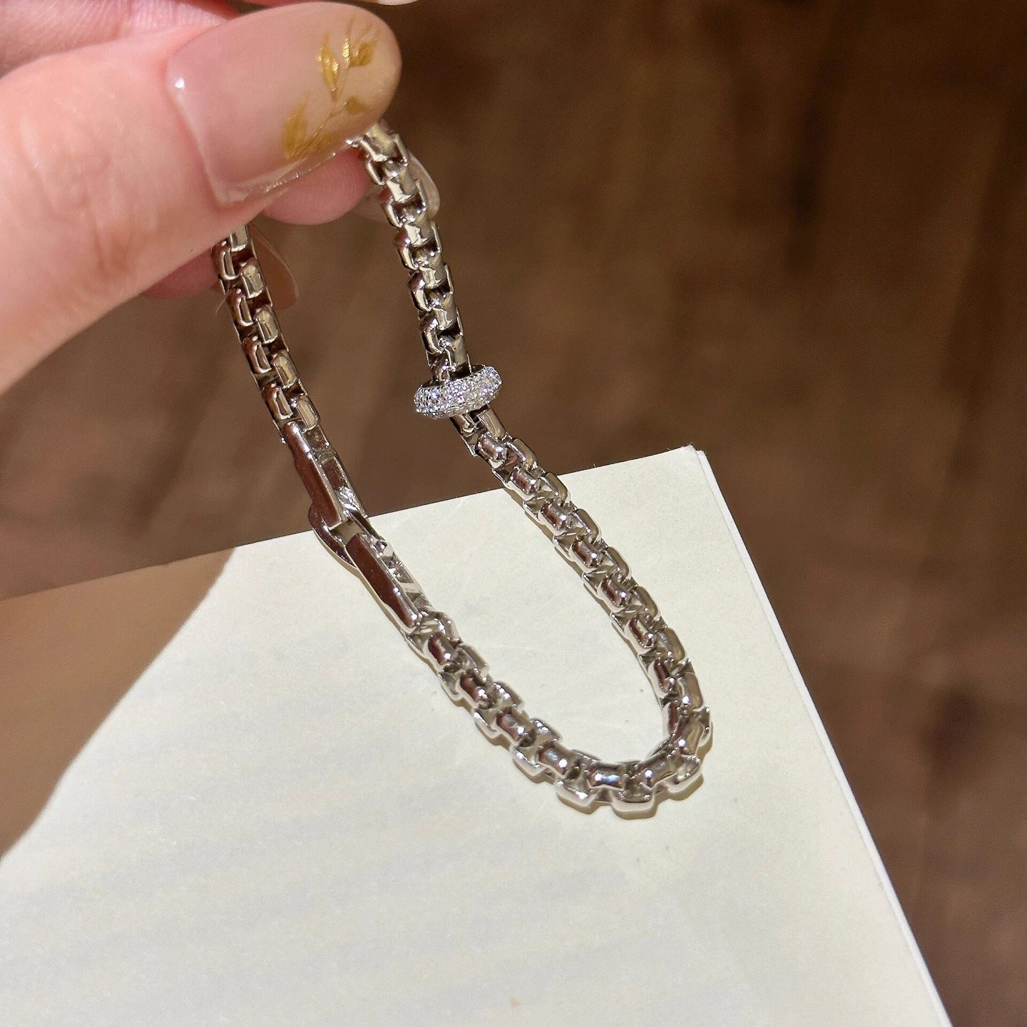 French [Designer] Meiakoin Minimalist Style Chain with Sparkling Diamonds Running Ring Bracelet Super Bracelet Accessory