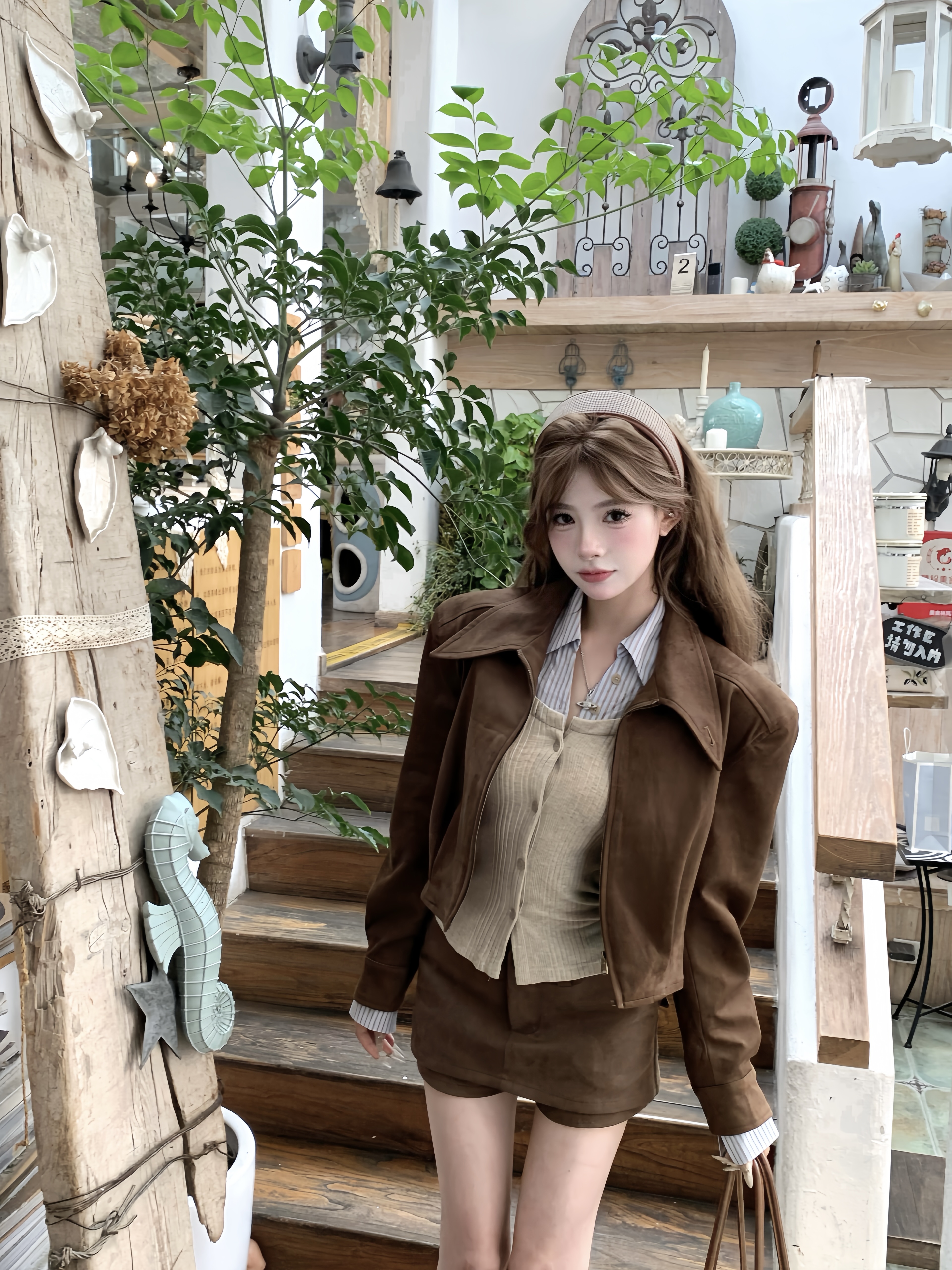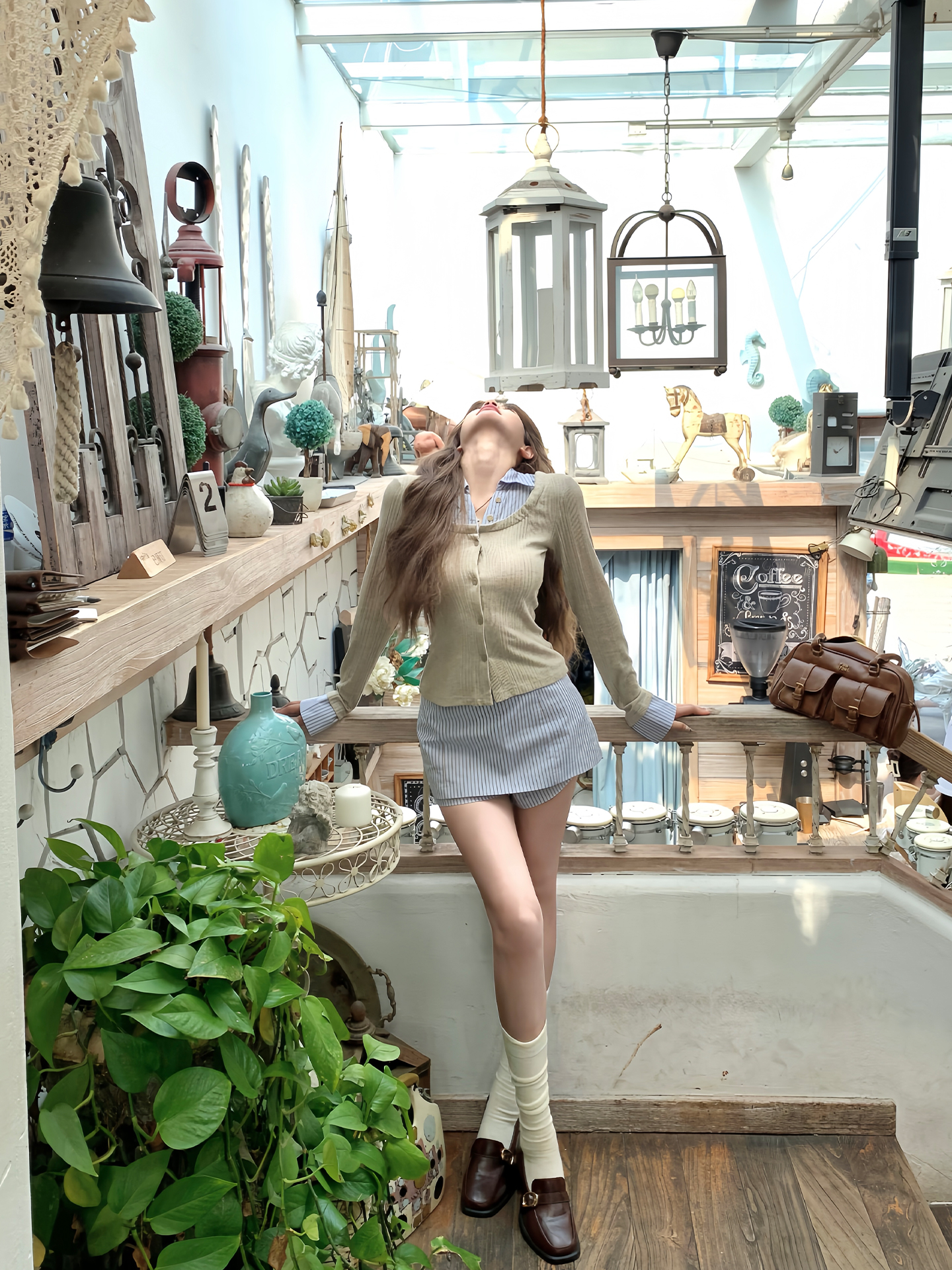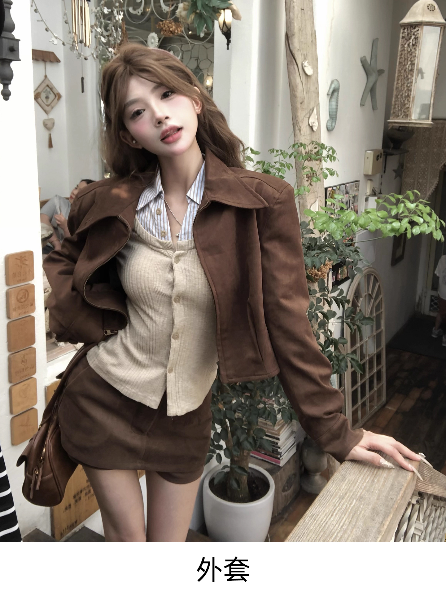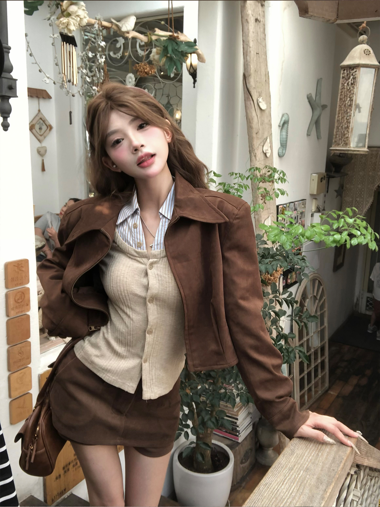 Seven-Piece Shrimp Paste Faux Two-Piece Shirt for Women, 2025 New Autumn Top, Paired with a Complete Korean-Style Outfit Set and Skirt