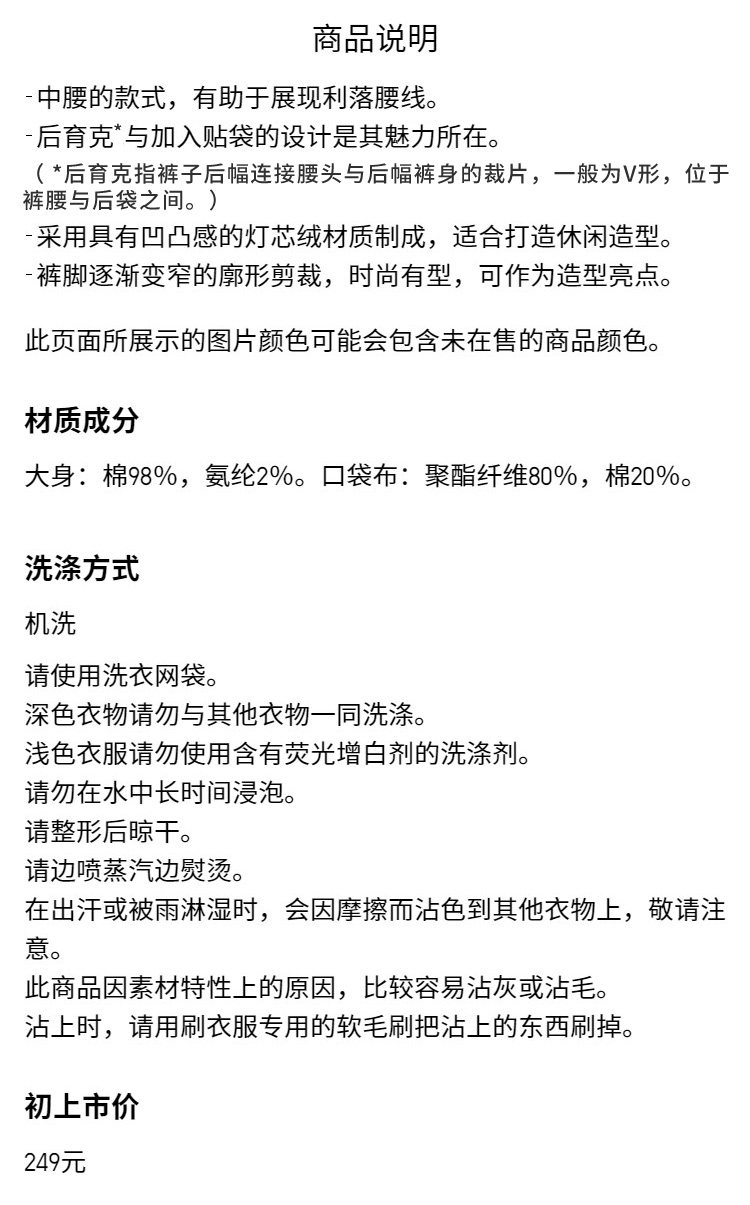 Uniqlo Collaboration/Women's Corduroy Silhouette Pants/Sickle Pants 479663