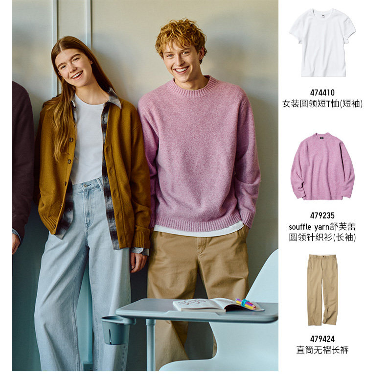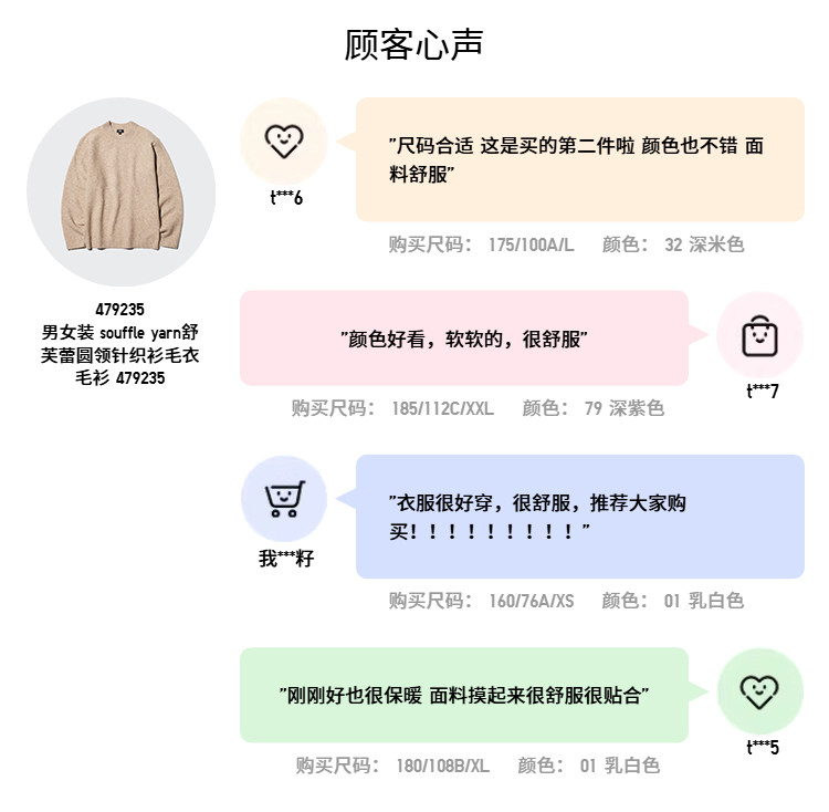 Uniqlo Men's and Women's Souffle Yarn Round Neck Knit Sweater 479235