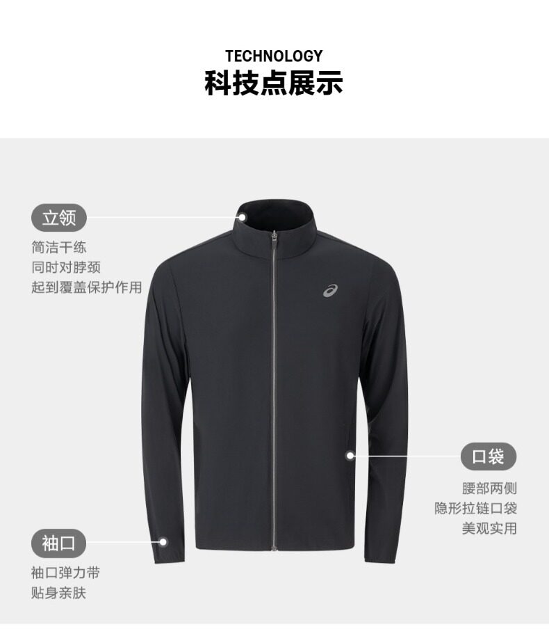 Asics New Men's Cool Moisture-Absorbent Quick-Drying Sports Jacket Elastic Breathable Jacket