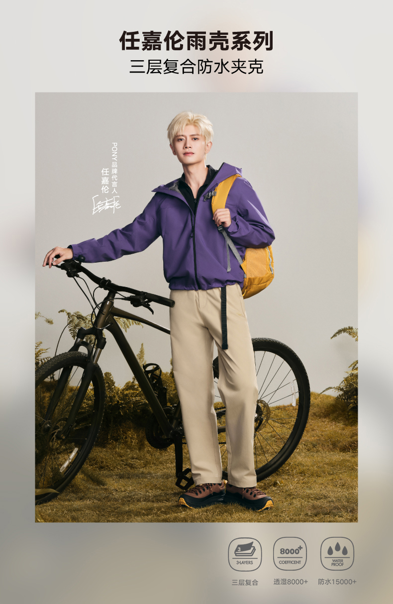 [Ren Jialun Same Model] PONY Rain Shell Sports jacket Waterproof Moisture Permeable Composite Men and Women Same Model Waterproof jacket