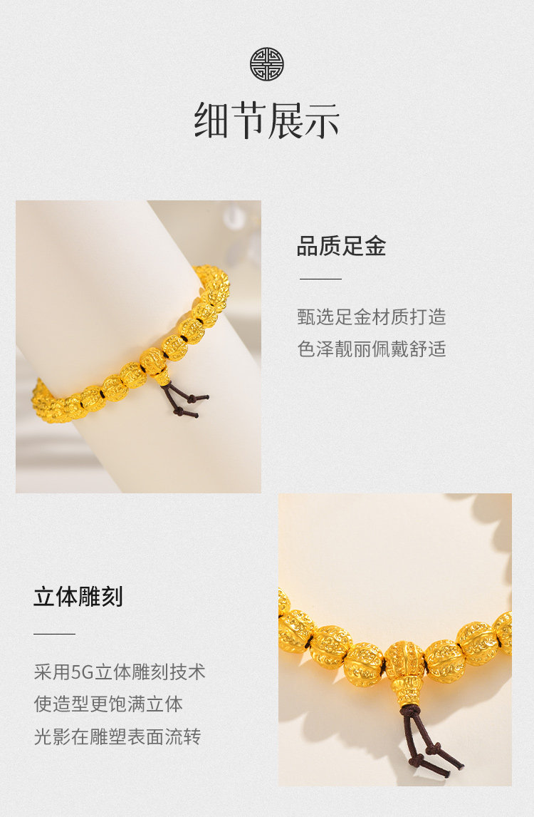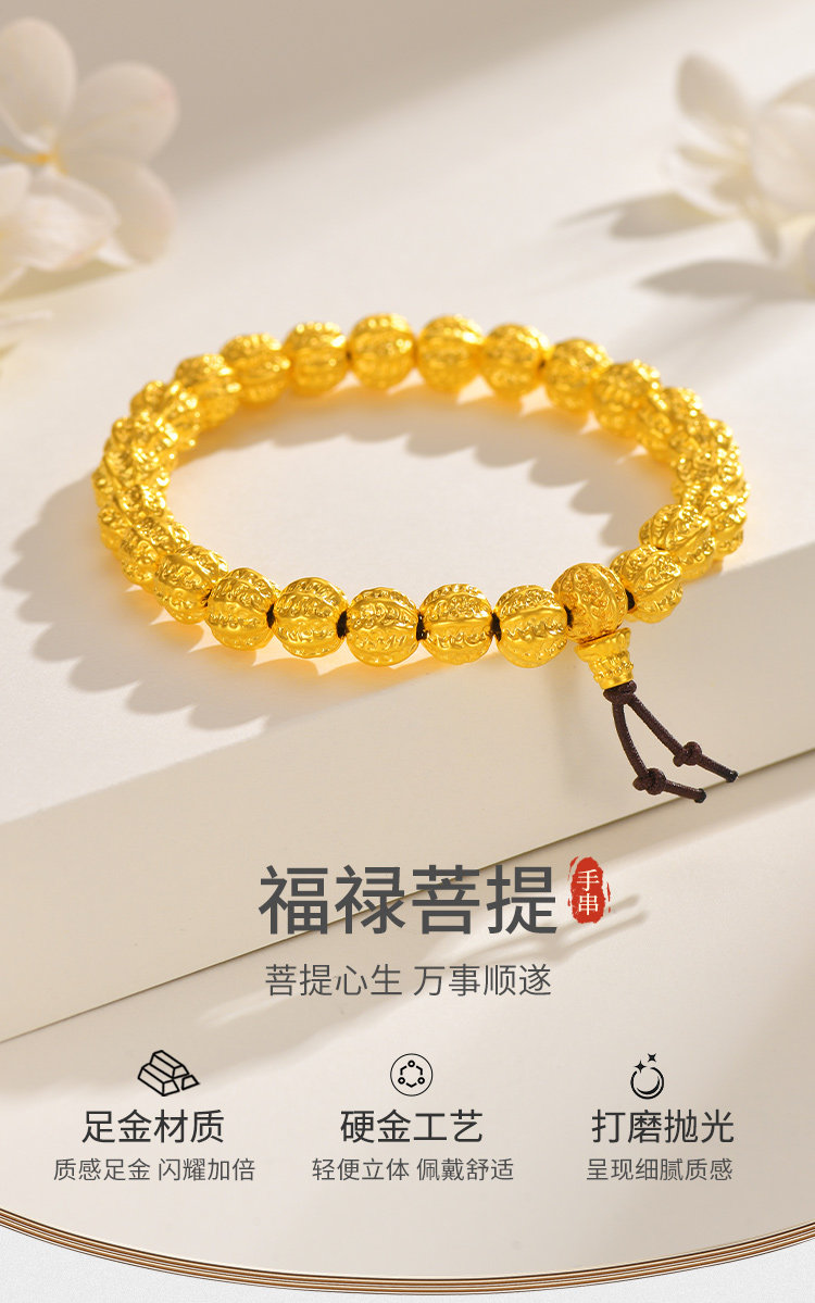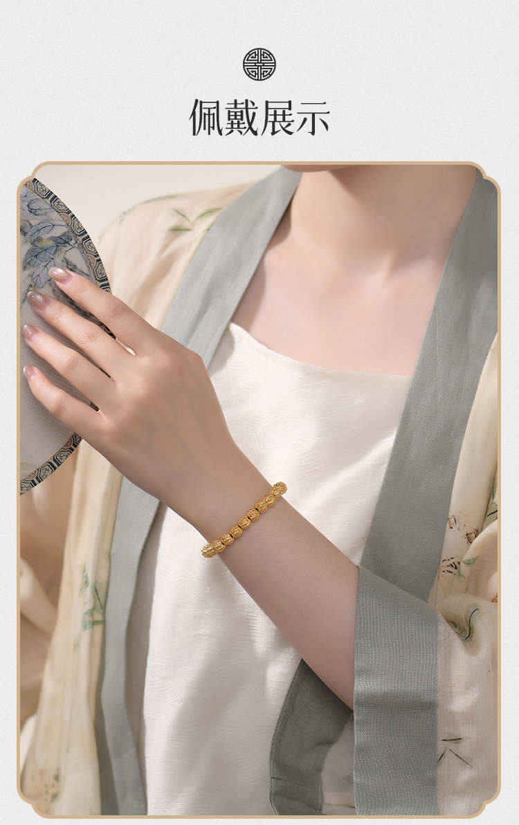 Bodhi Seed Gold Bracelet, Pure Gold Fortune and Prosperity Bodhi Transfer Beads, Vajra Bodhi Bracelet, Phoenix Eye Bodhi Gold Bracelet for Men