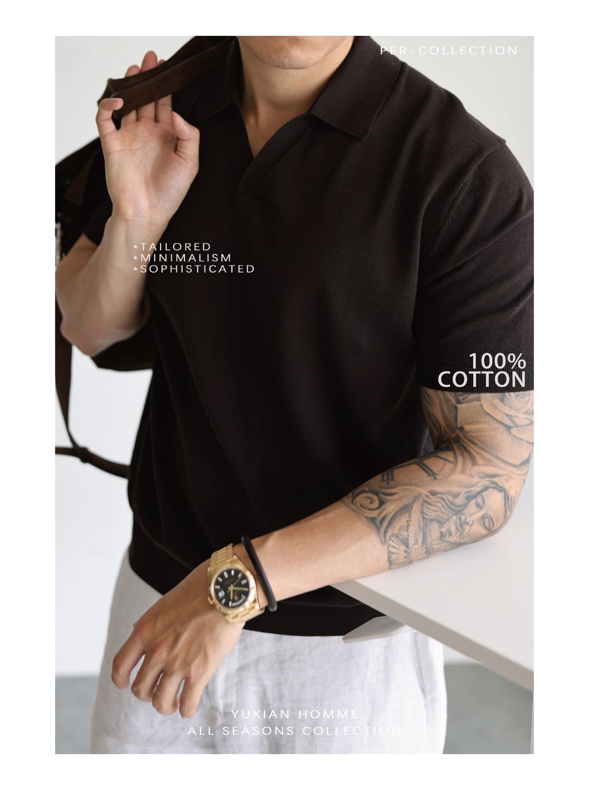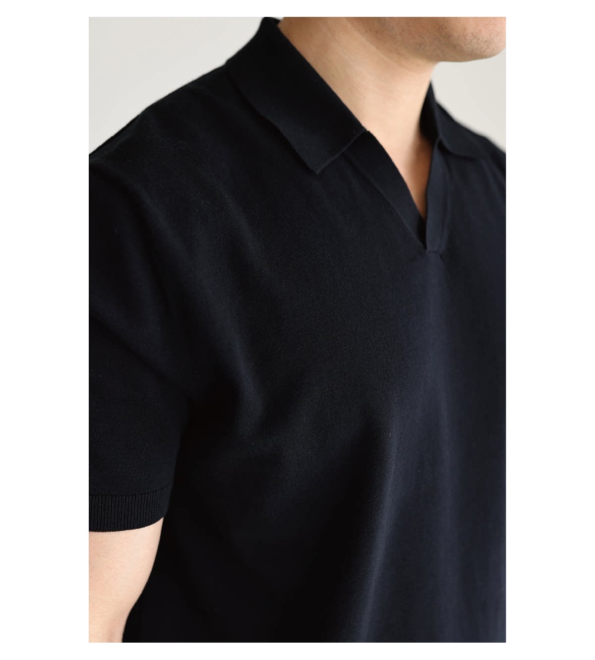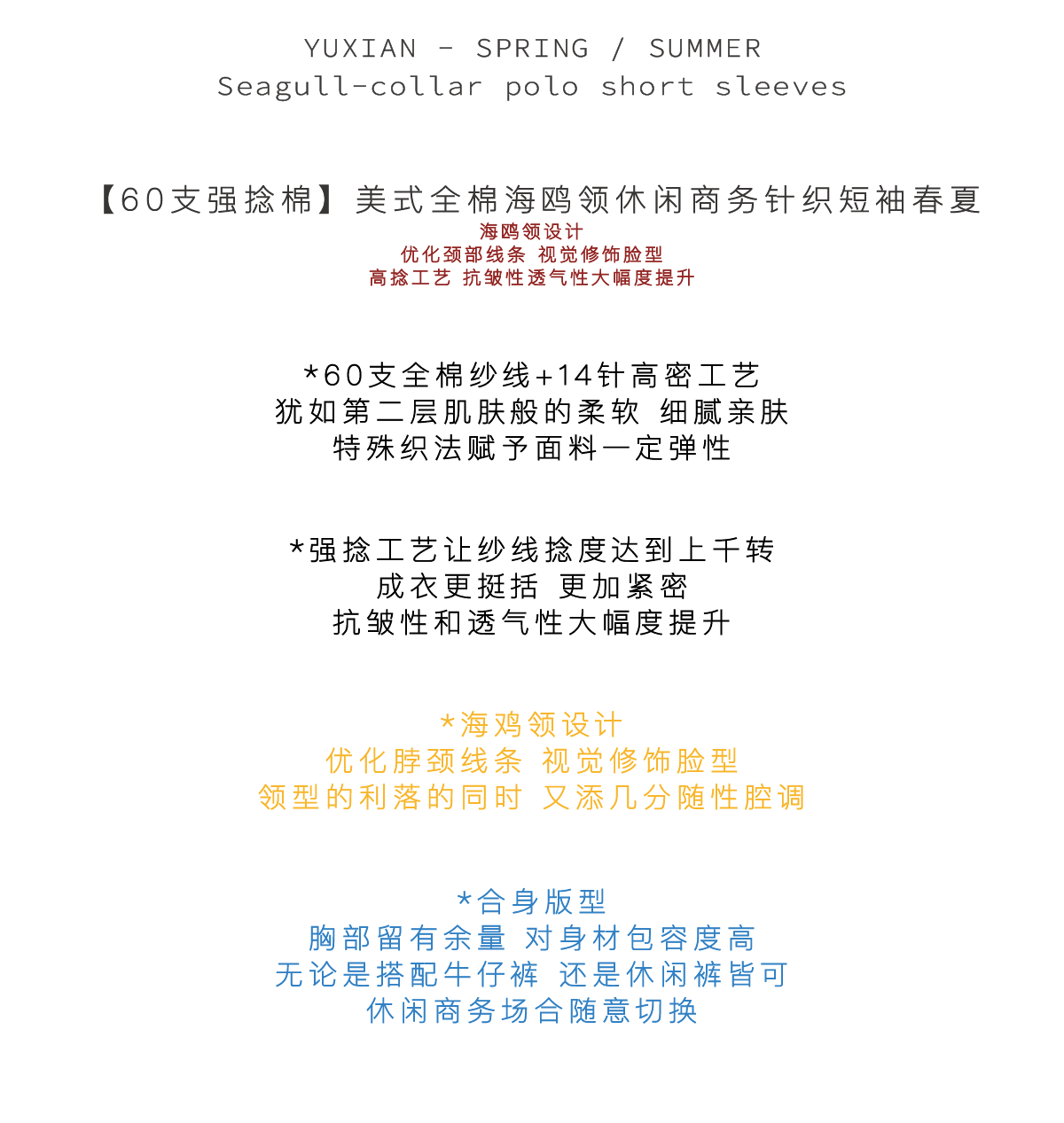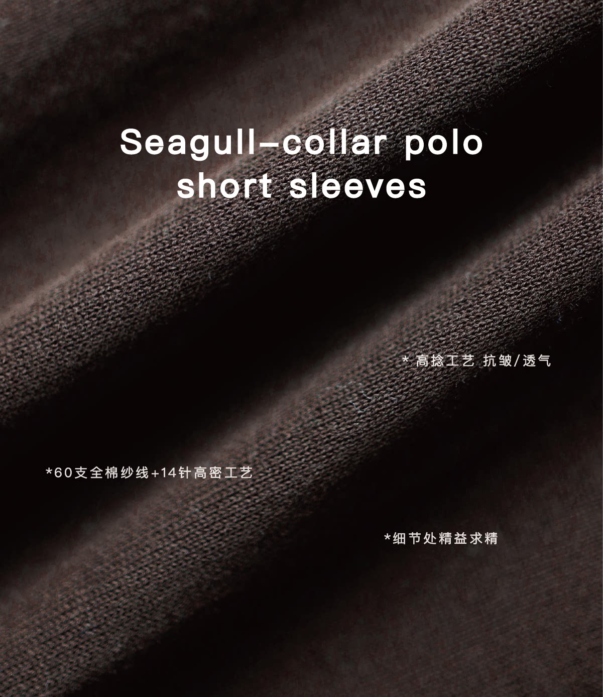 [60-Count Strong Twisted Cotton] American-Style Pure Cotton Seagull Collar Retro Polo Casual Business Knit Short-Sleeve Turn-Down Collar Spring and Summer