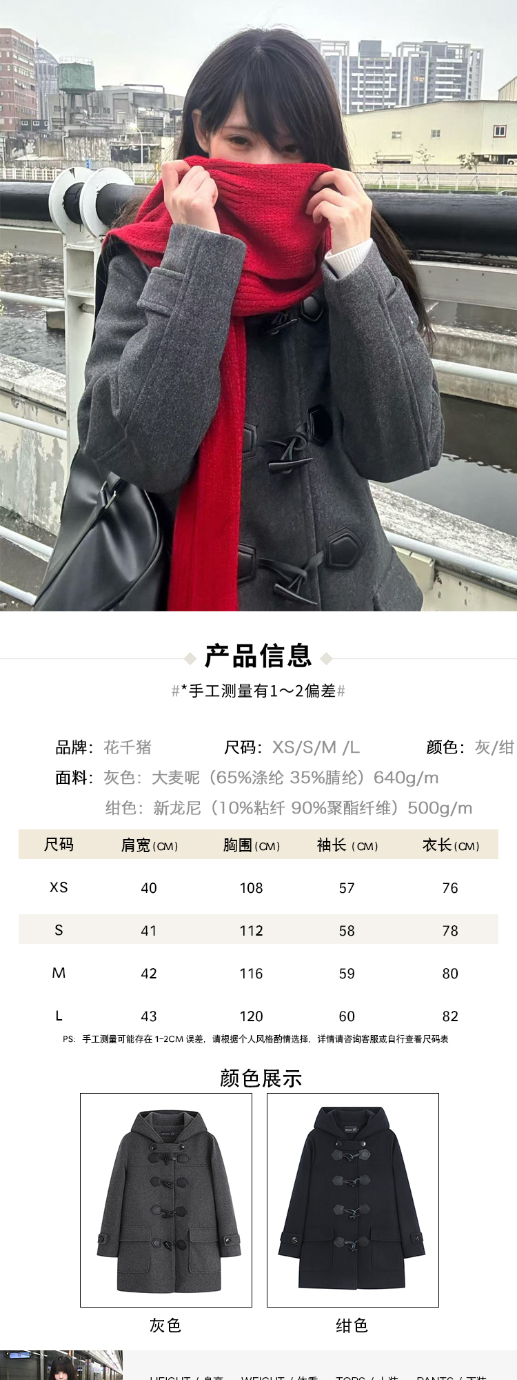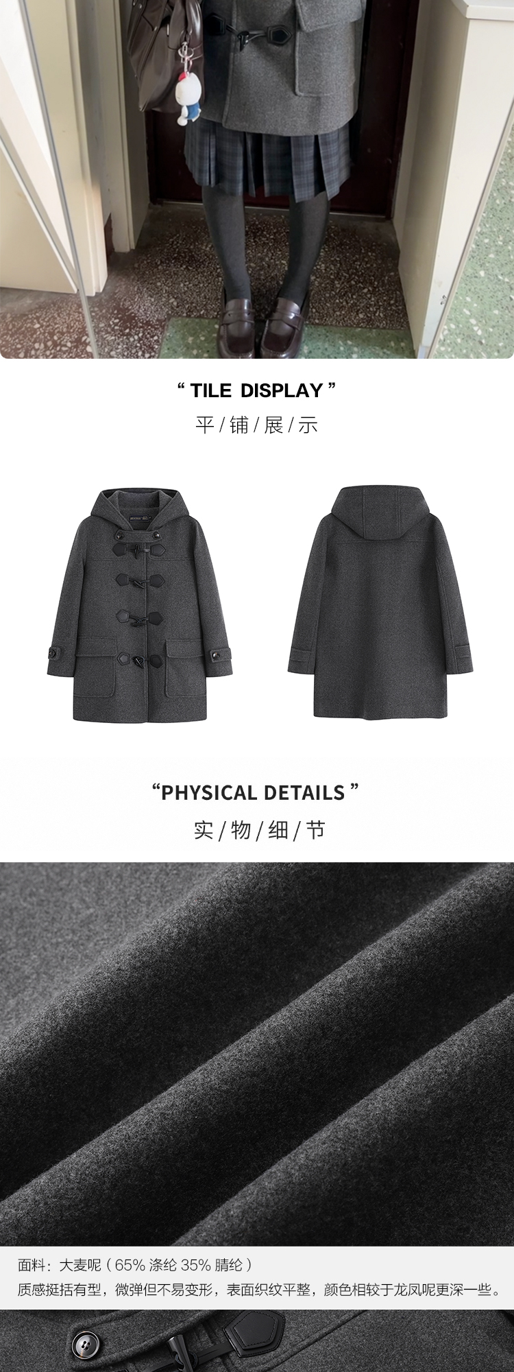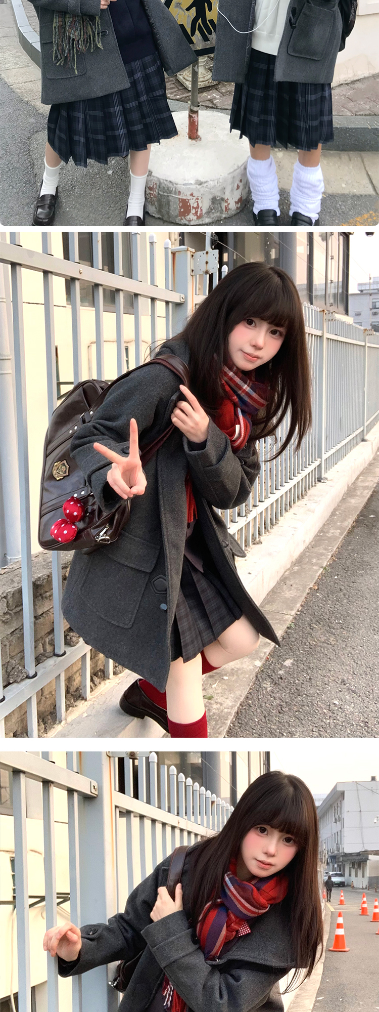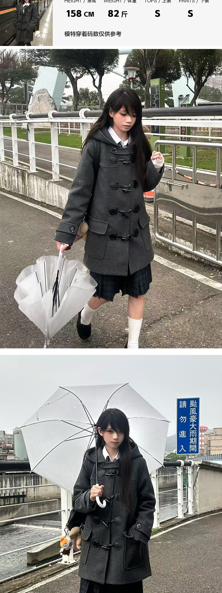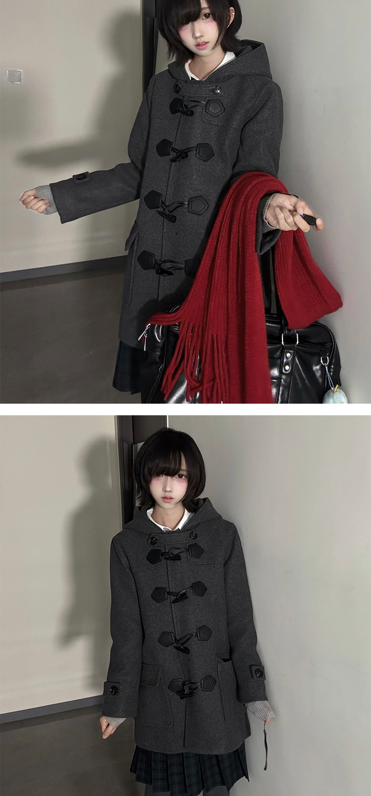 Huaqianzhu Original Kurihara Zhongda Coat, Academy Style School Uniform-Inspired Jk Uniform, Mid-Short Gray Hooded Wool Coat