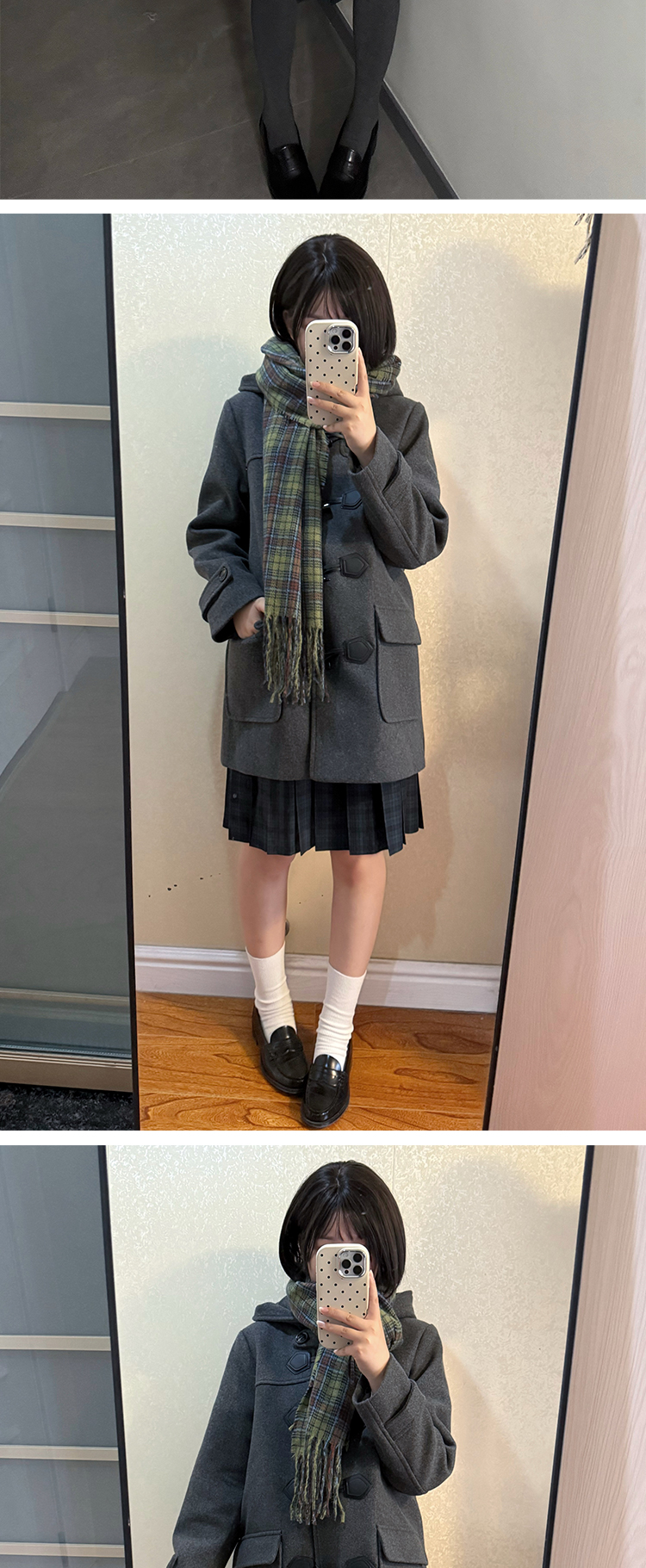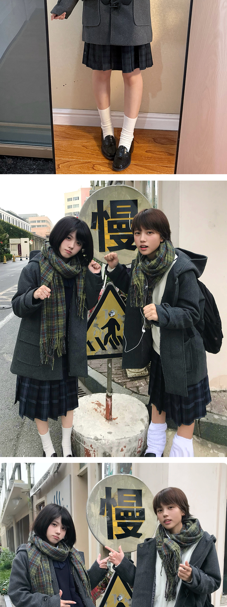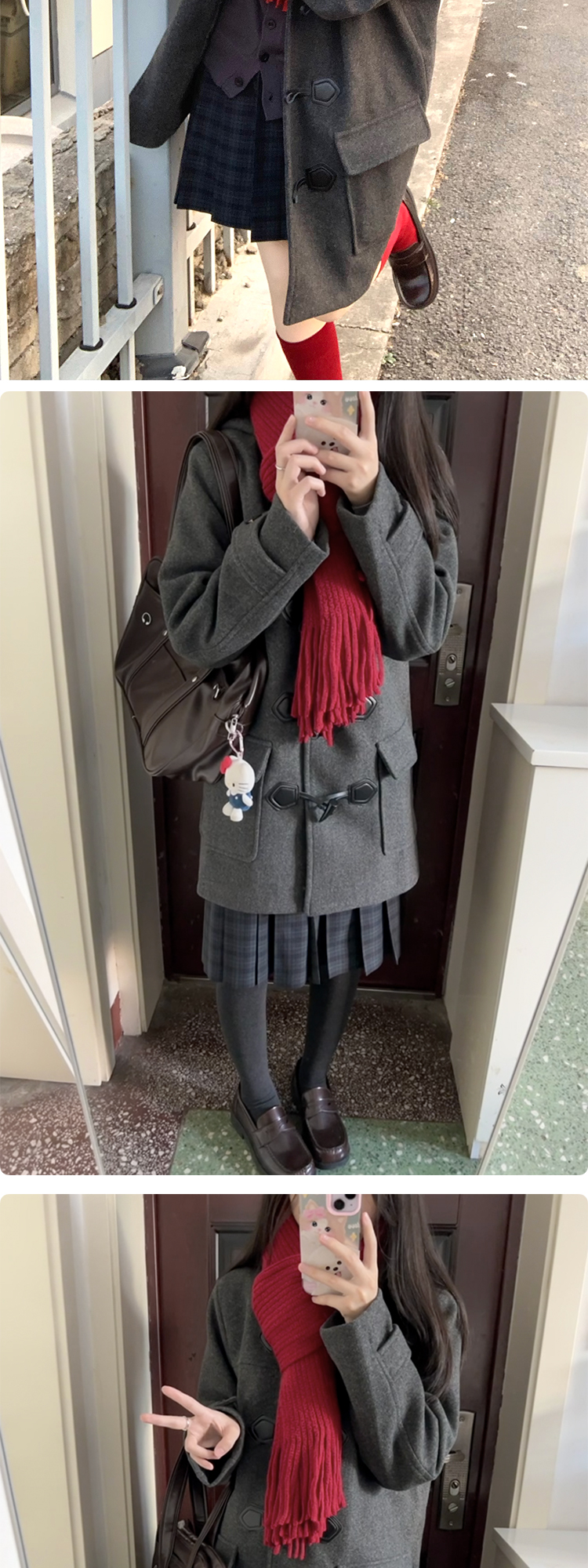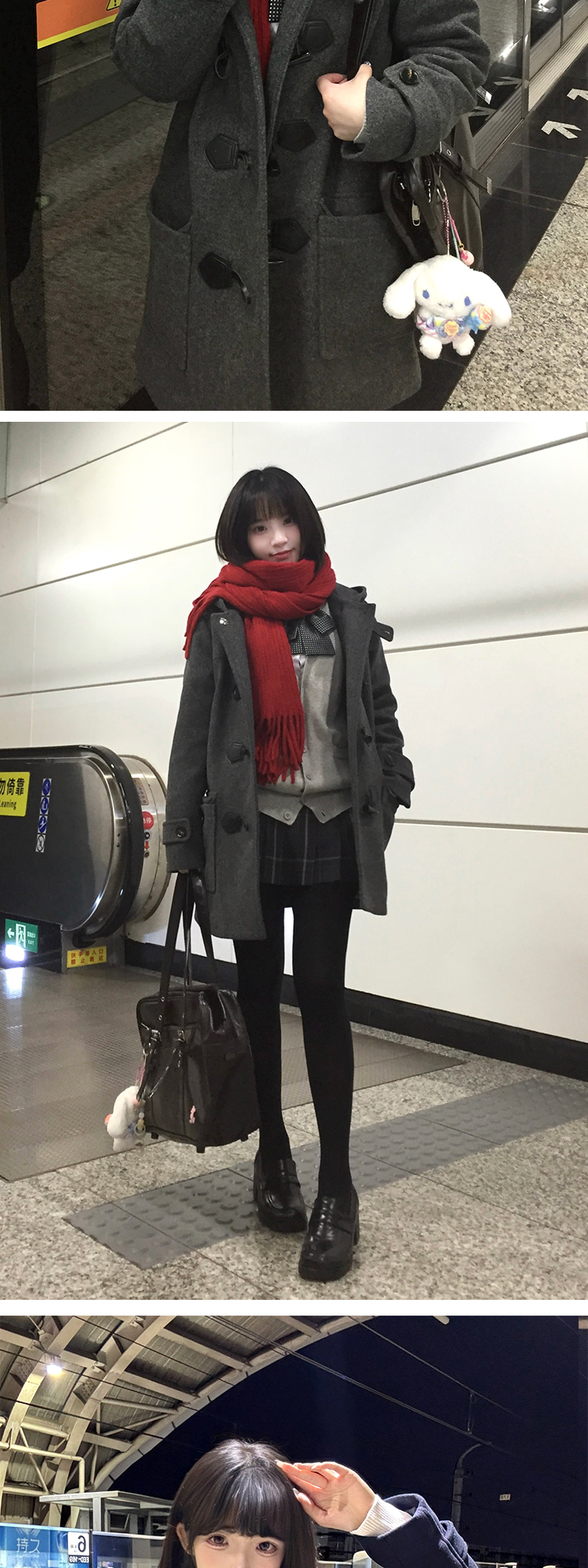 Huaqianzhu Original Kurihara Zhongda Coat, Academy Style School Uniform-Inspired Jk Uniform, Mid-Short Gray Hooded Wool Coat