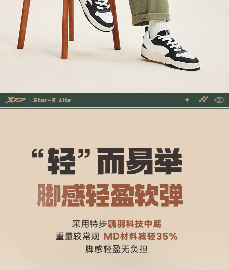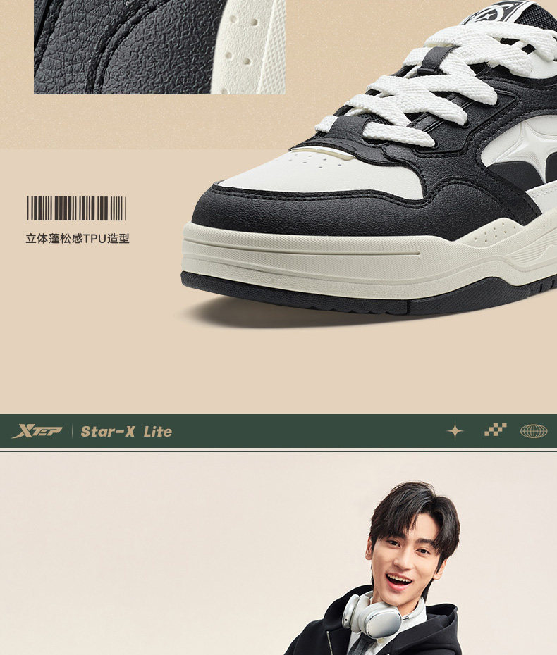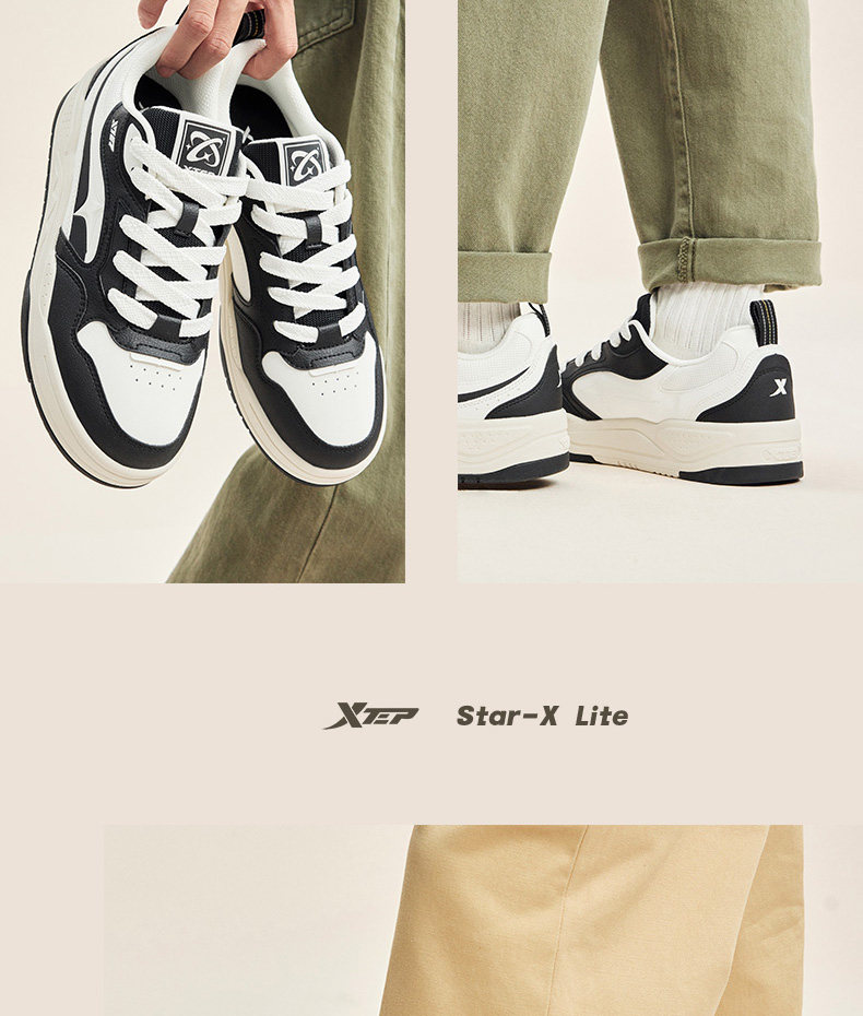Xtep Journey | Men's Sneakers, New Winter Low-Top Black and White Casual Shoes, Lightweight and Versatile Men's Sports Shoes