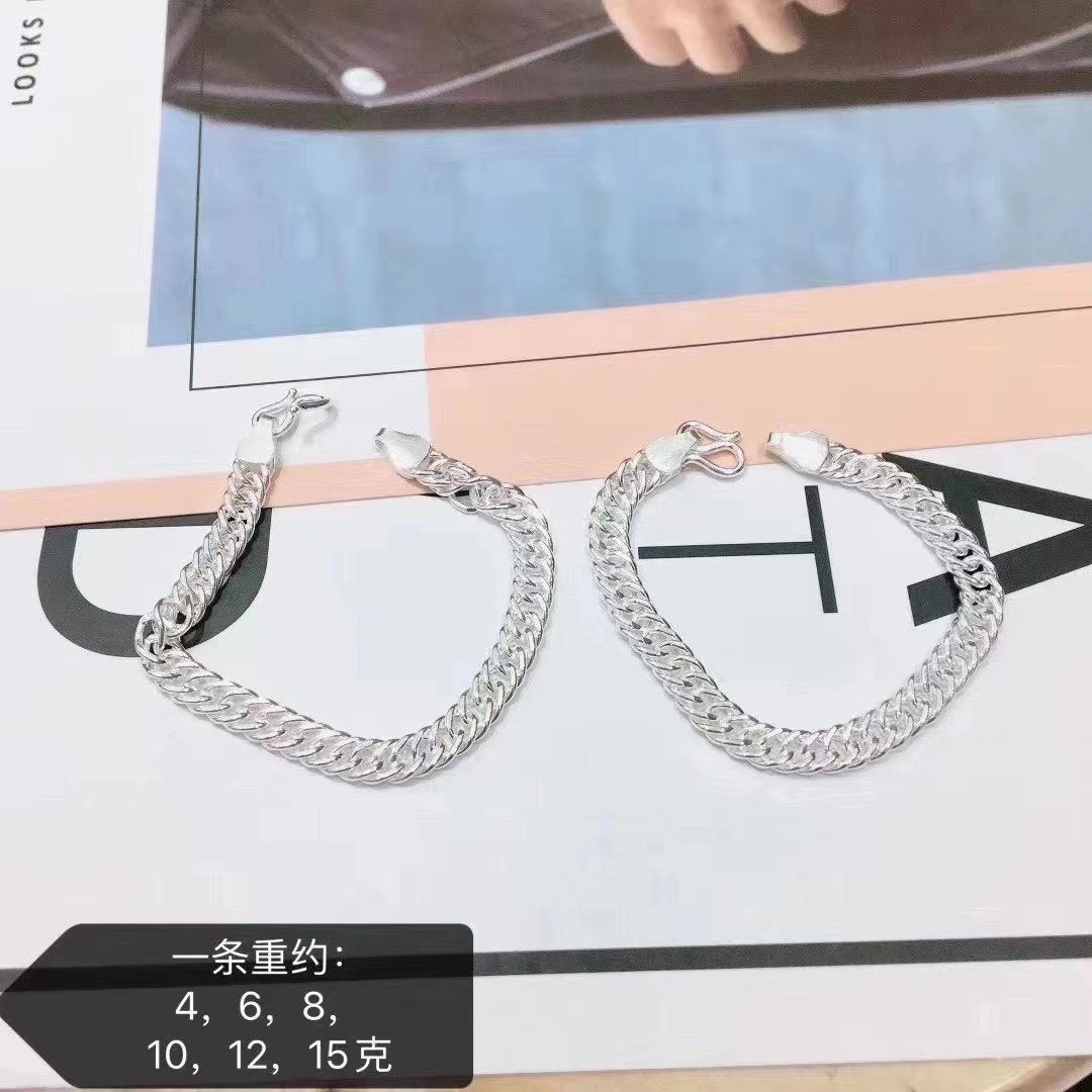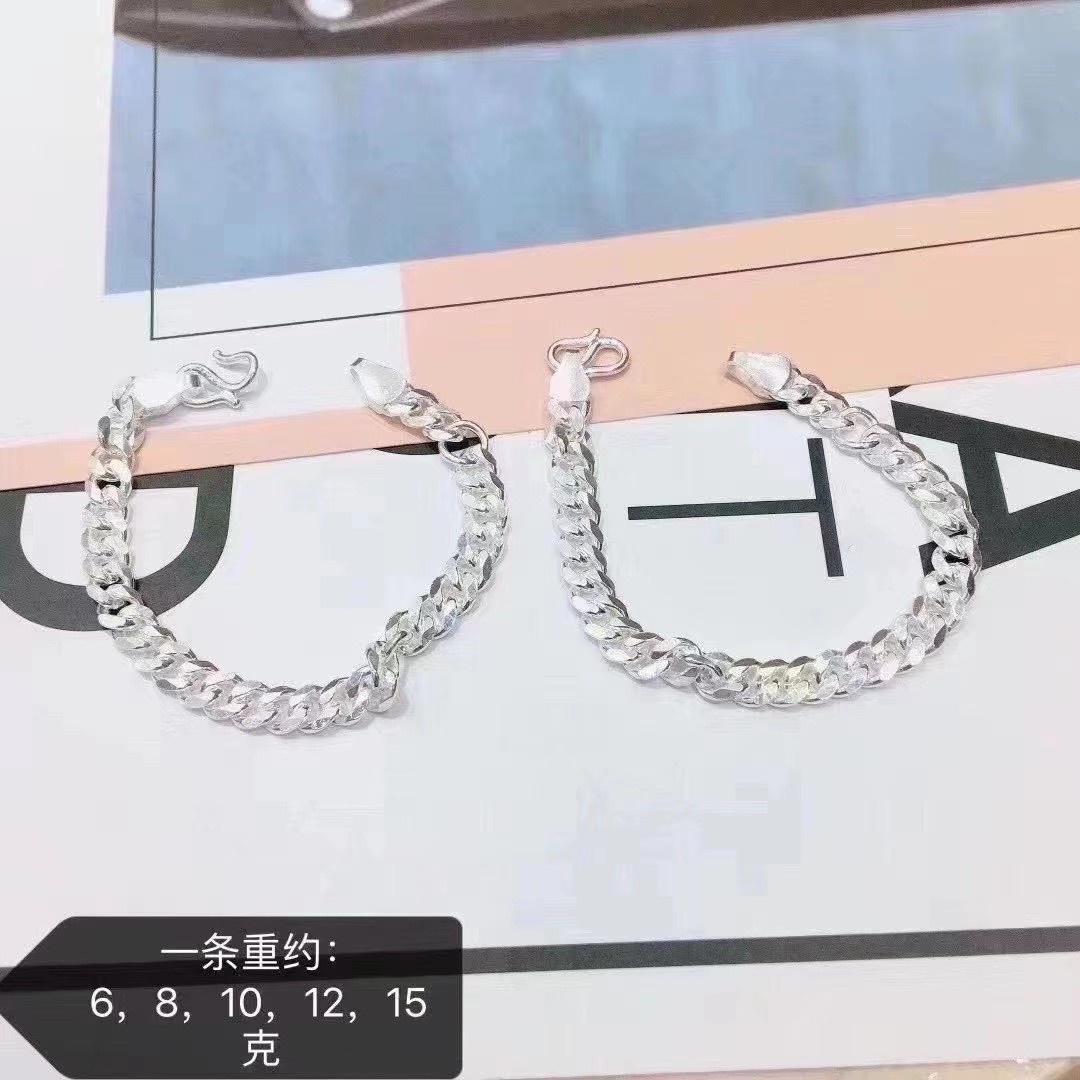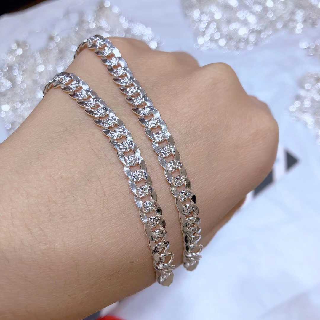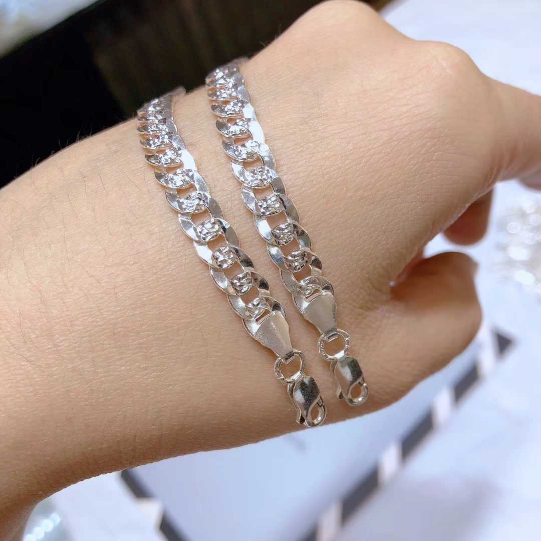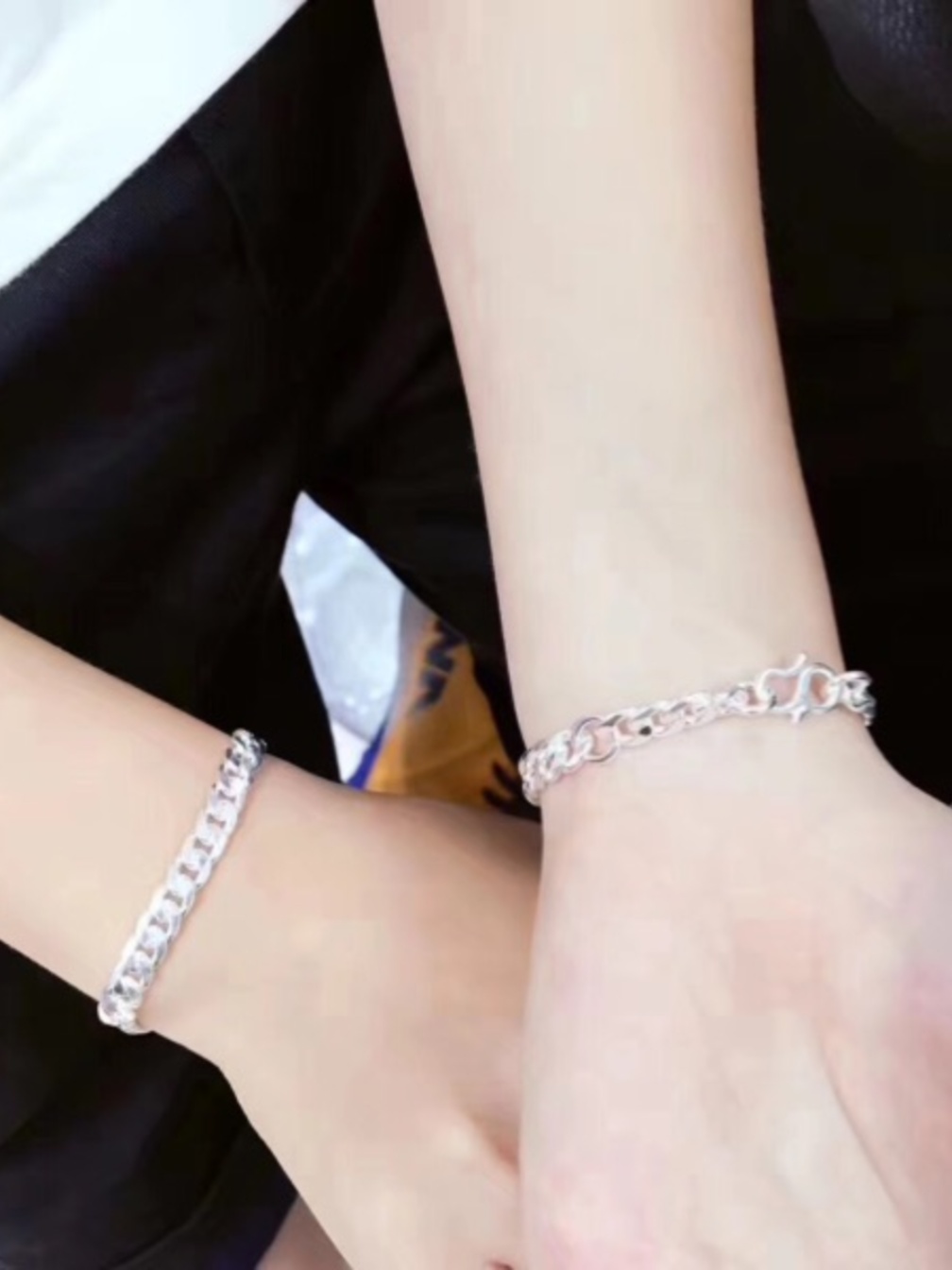 Sterling Silver White Gold Bracelet for Boys and Girls, 999 Pure Silver Boy's Denim Chain, One-Year-Old Full-Month Baby Gift