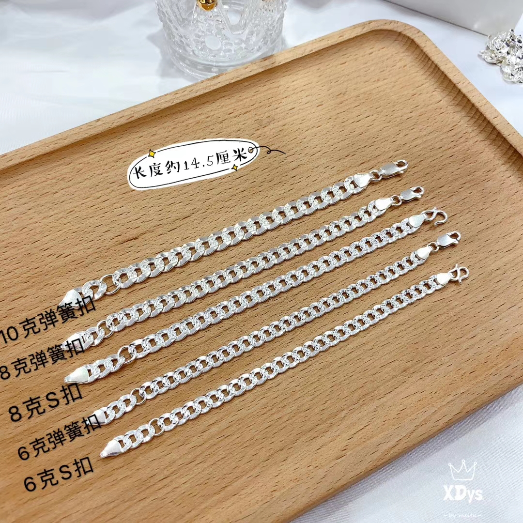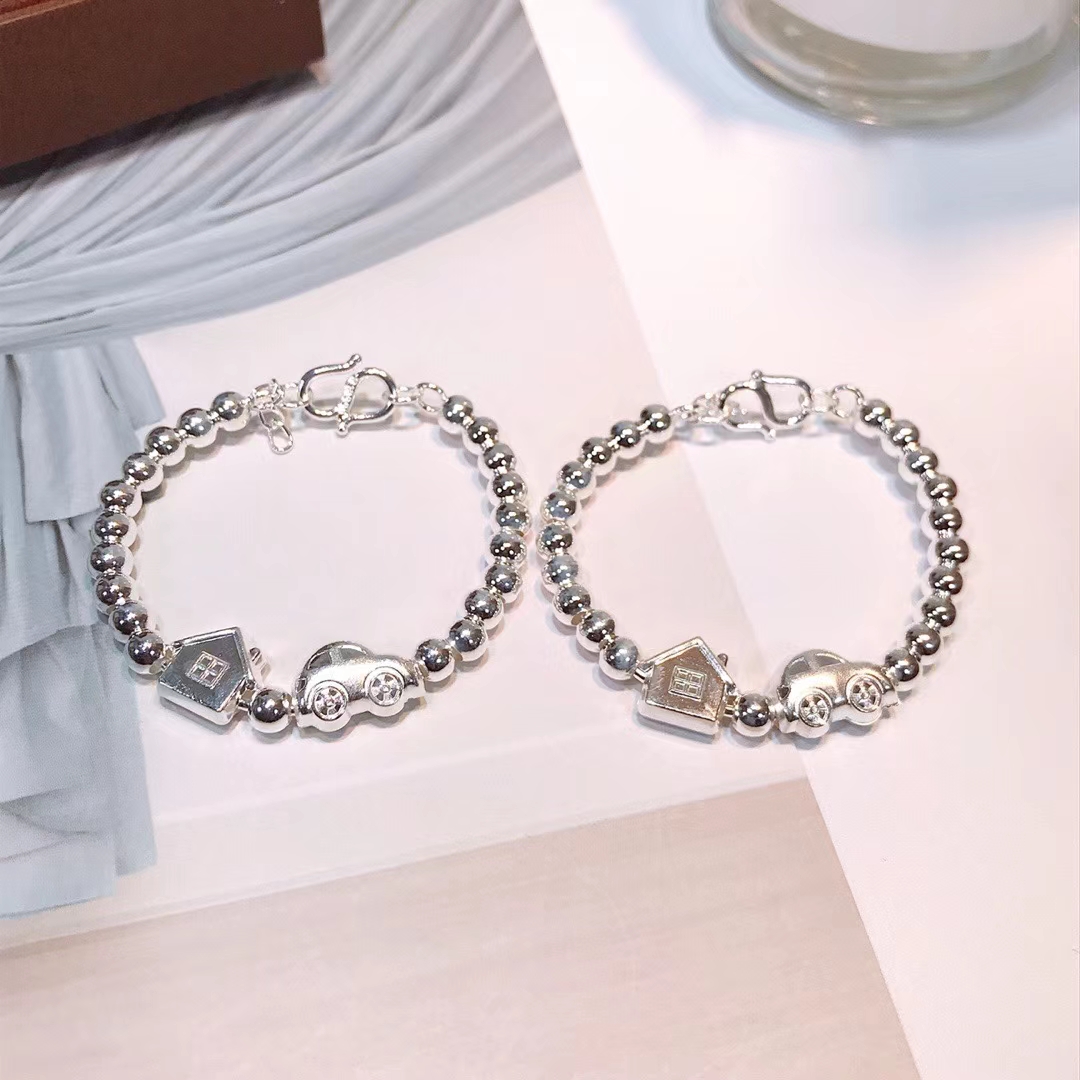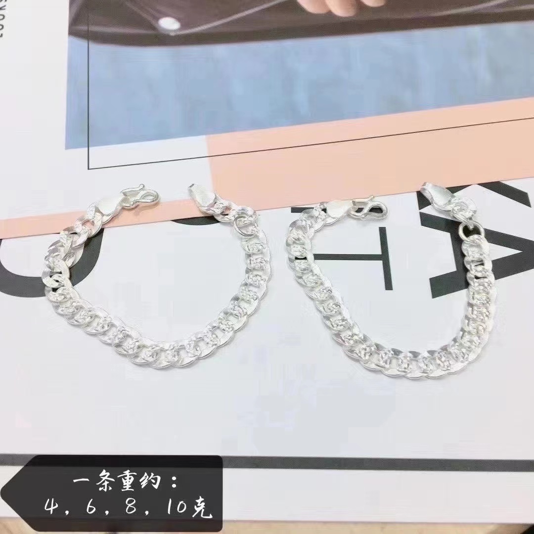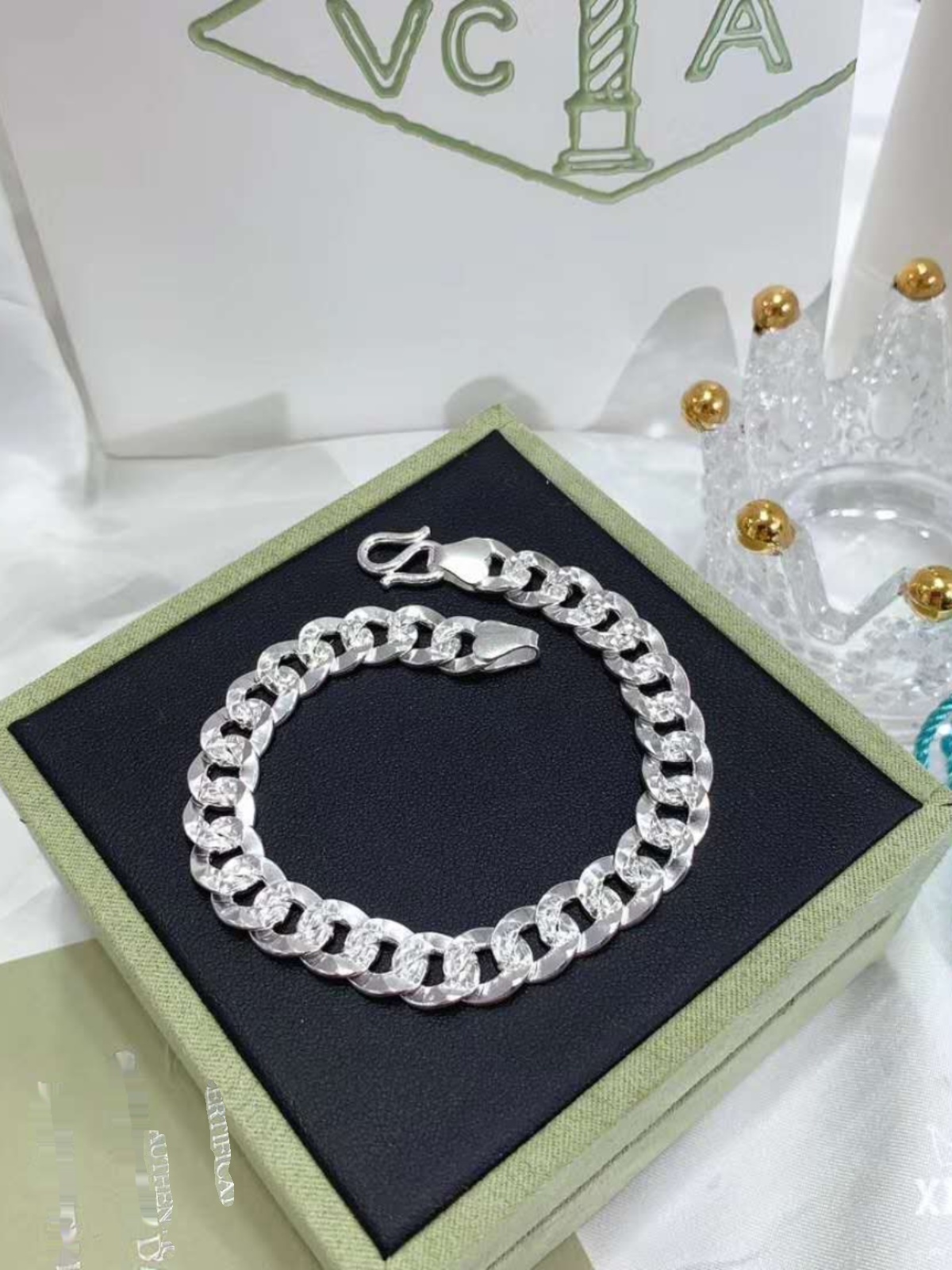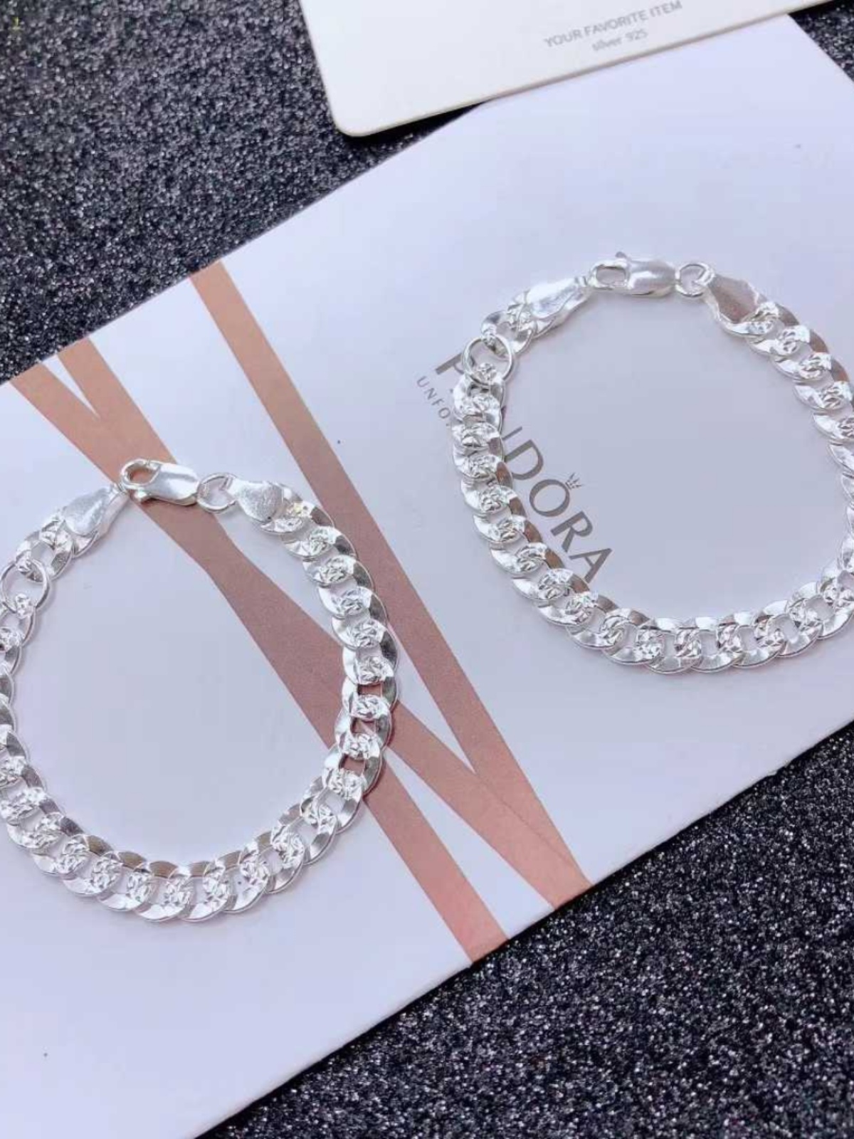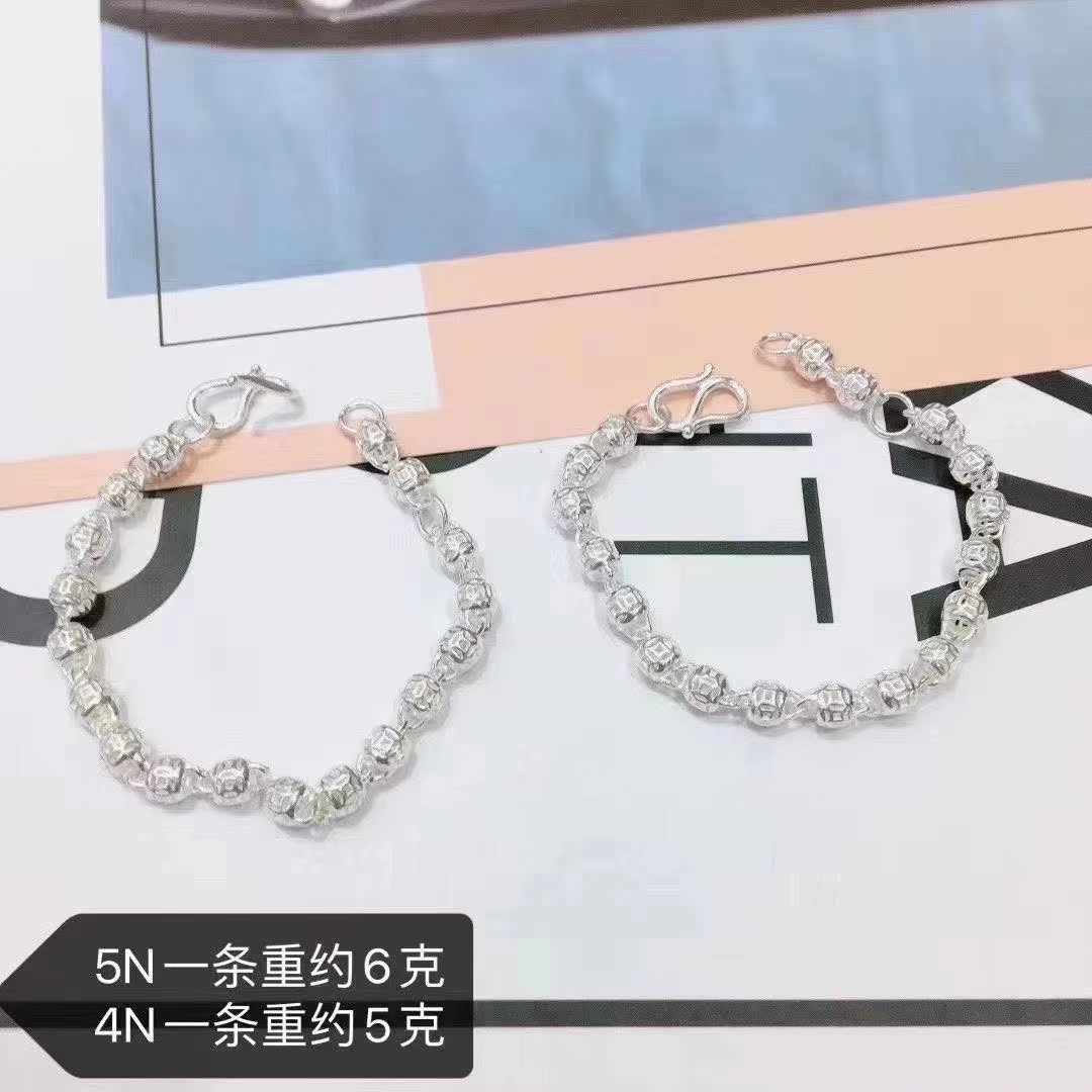 Sterling Silver White Gold Bracelet for Boys and Girls, 999 Pure Silver Boy's Denim Chain, One-Year-Old Full-Month Baby Gift