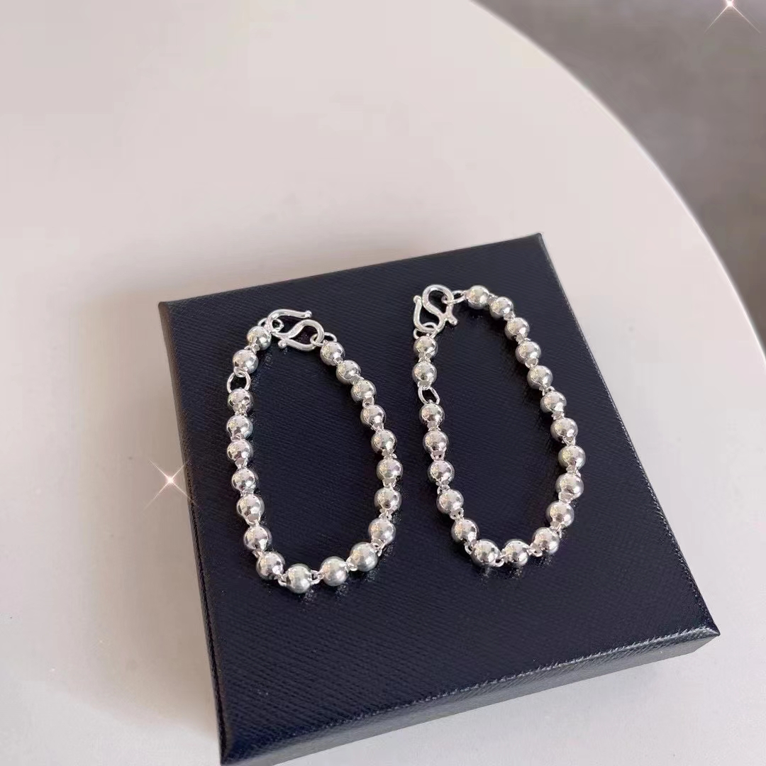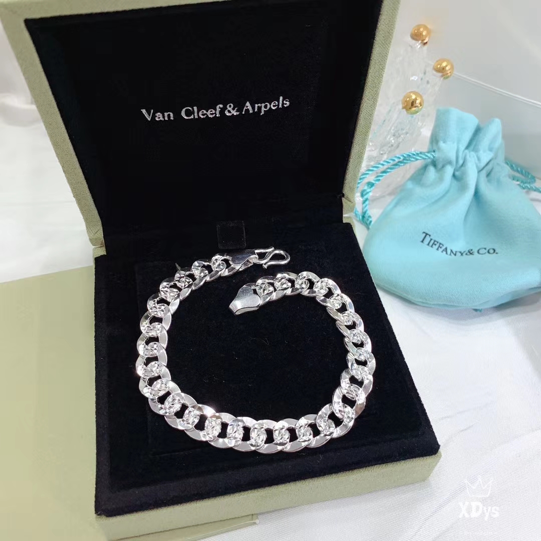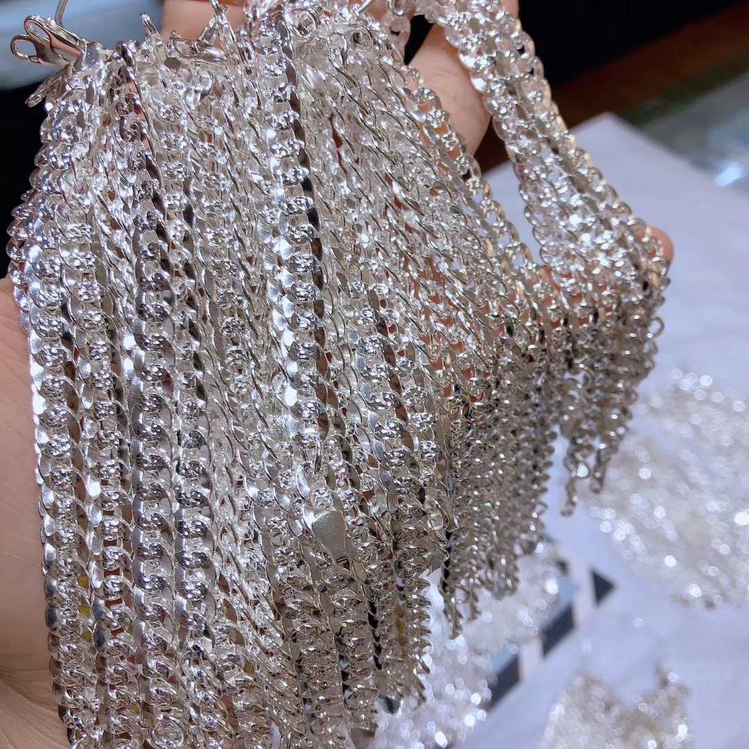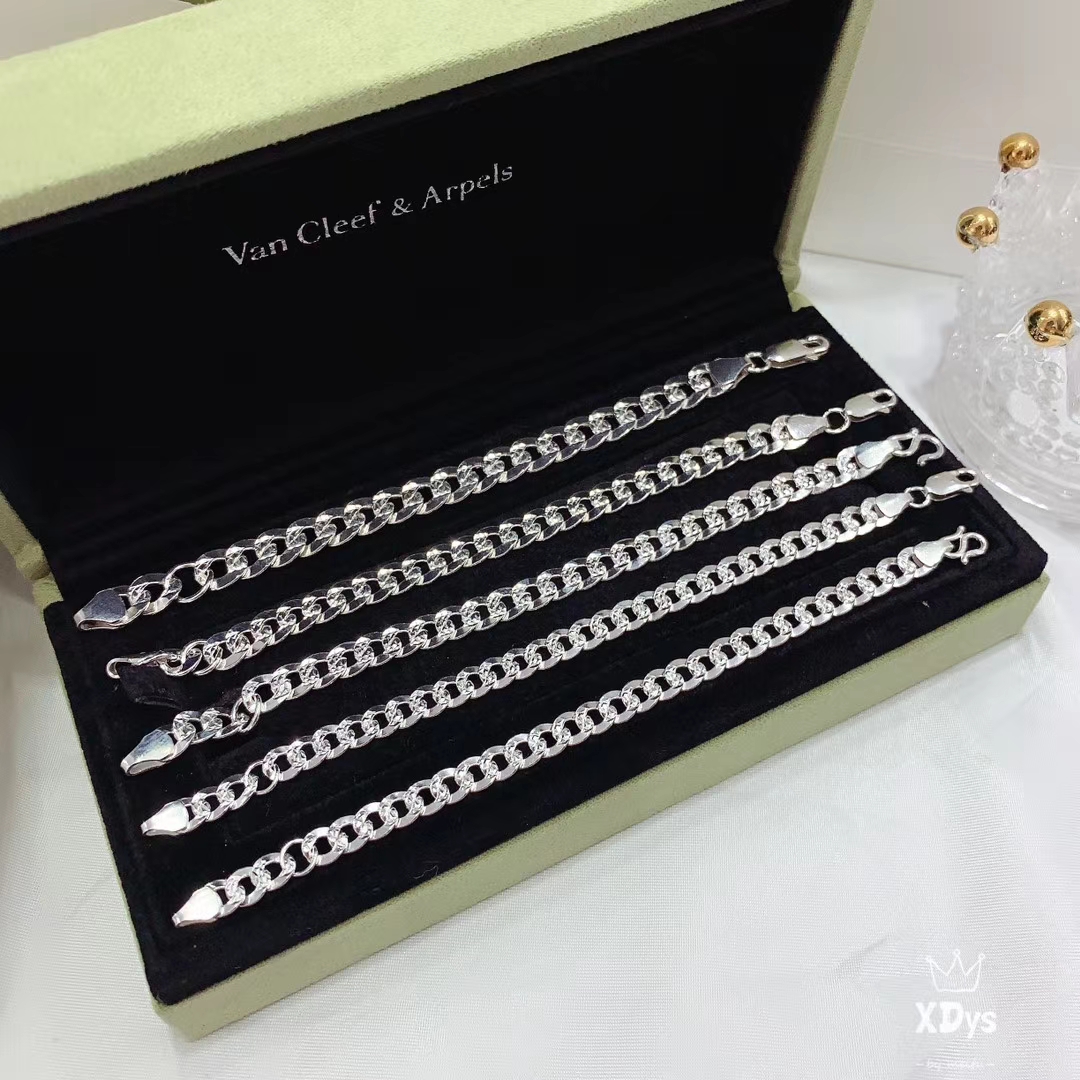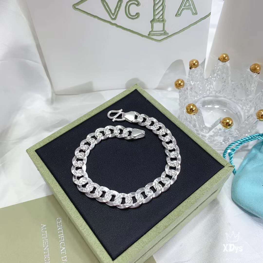 Sterling Silver White Gold Bracelet for Boys and Girls, 999 Pure Silver Boy's Denim Chain, One-Year-Old Full-Month Baby Gift