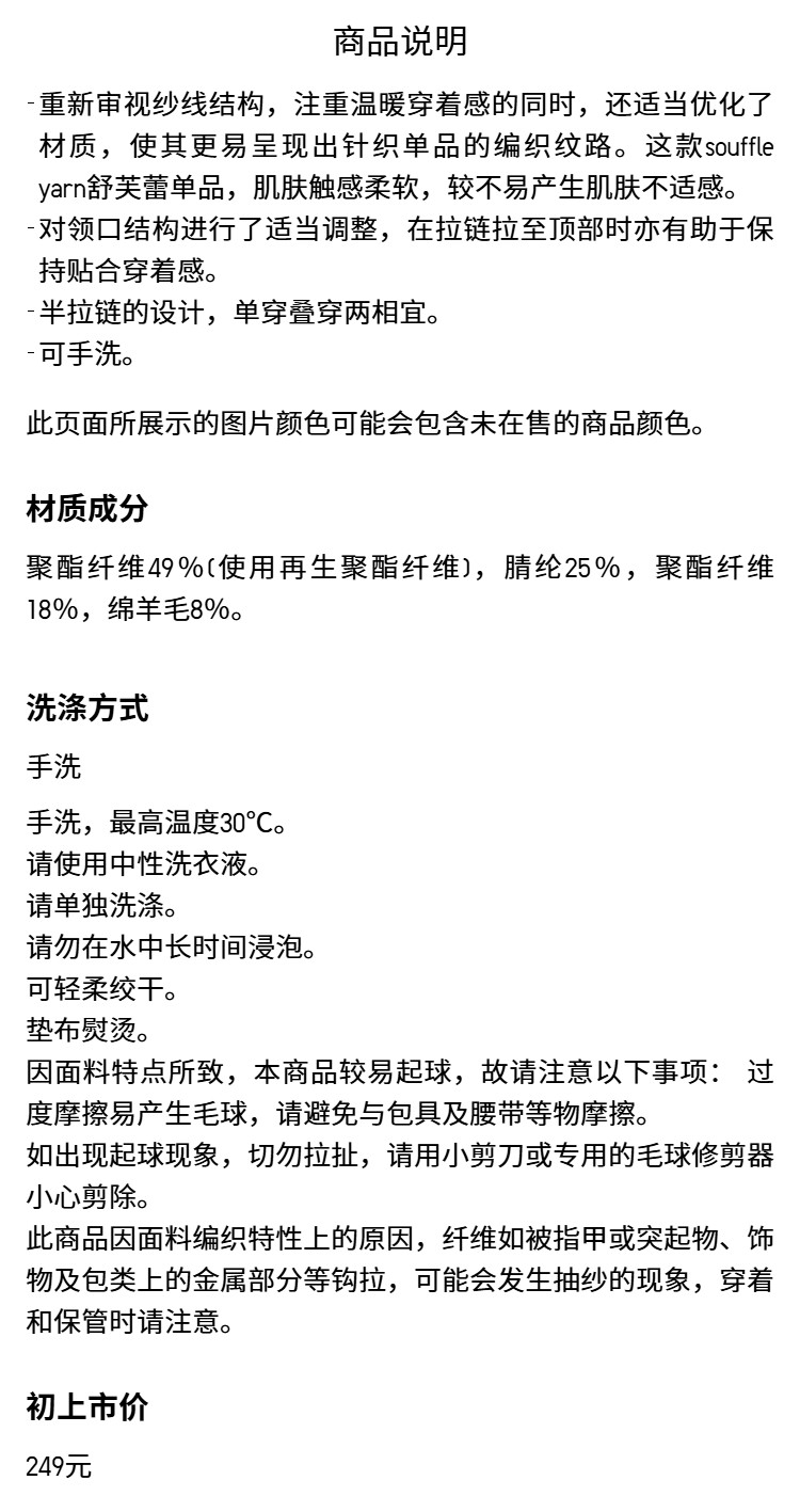 UNIQLO men's and women's souffle yarn shuffle half zipper Knitwear Sweater sweater New arrival 478546