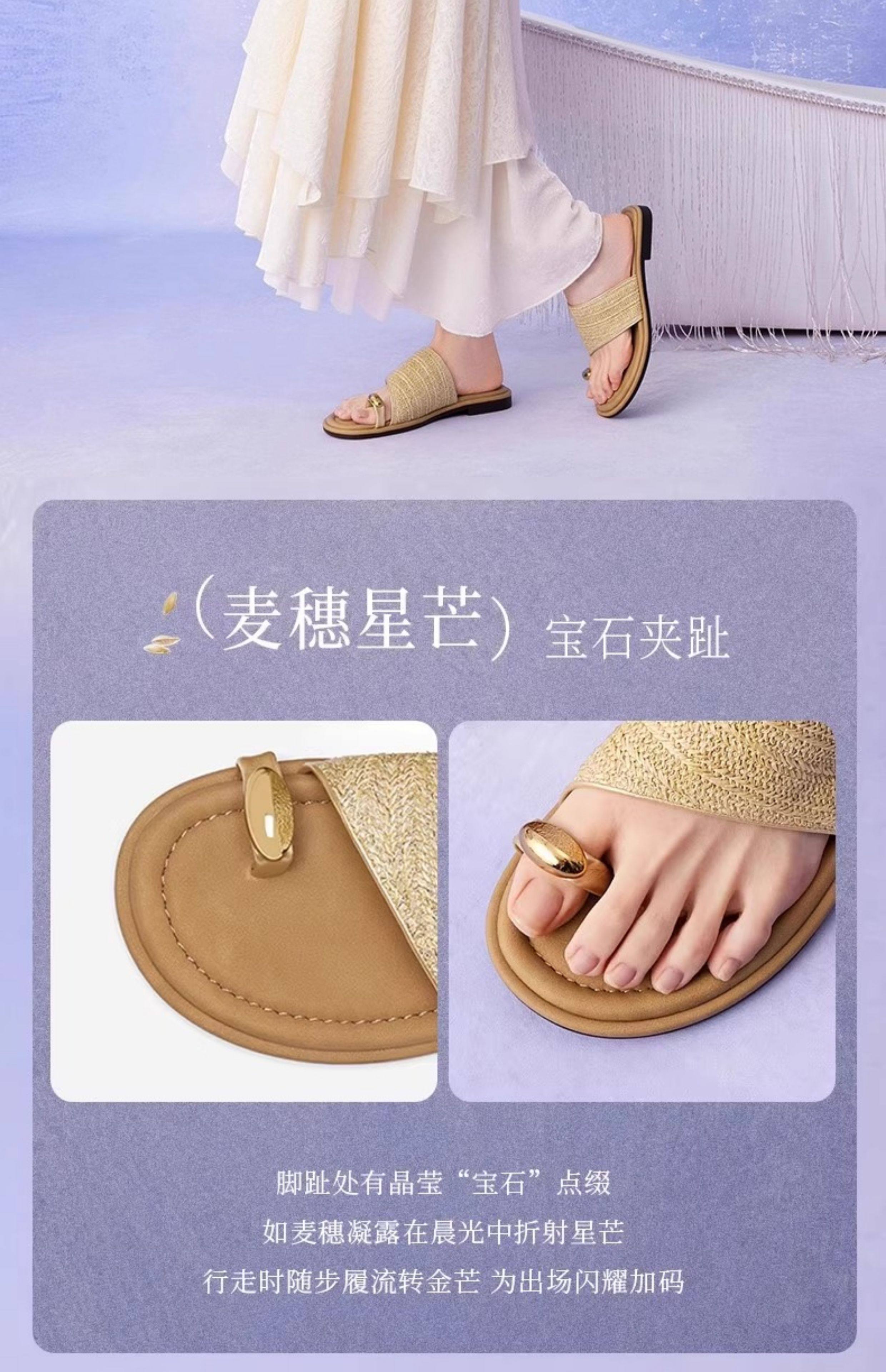 Sun Leyan's Same Style Golden Wheat Wave Sandals, 2025 Summer Hot-Selling Versatile Non-Slip Beach Slippers for Seaside Vacations