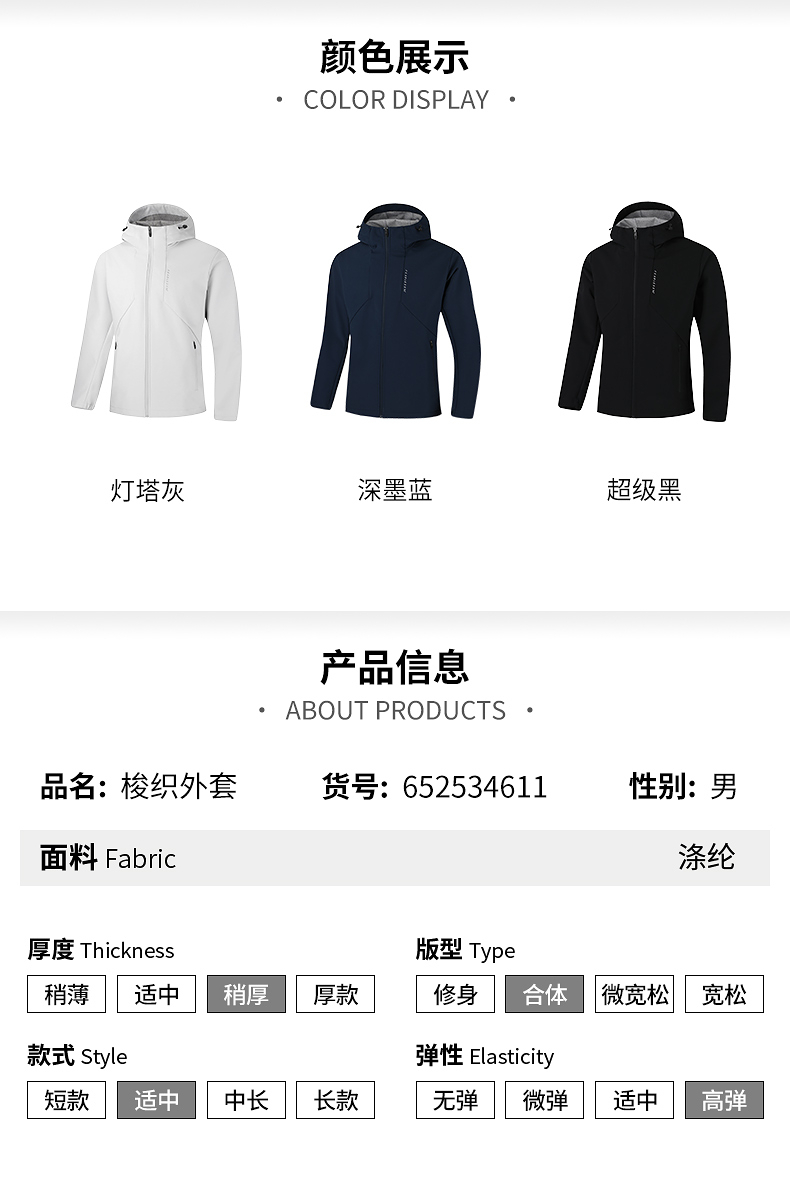 361 Jacket U Series Aerogel Jacket Autumn Rainproof Water-Repellent Hooded Softshell Windbreaker 652534611