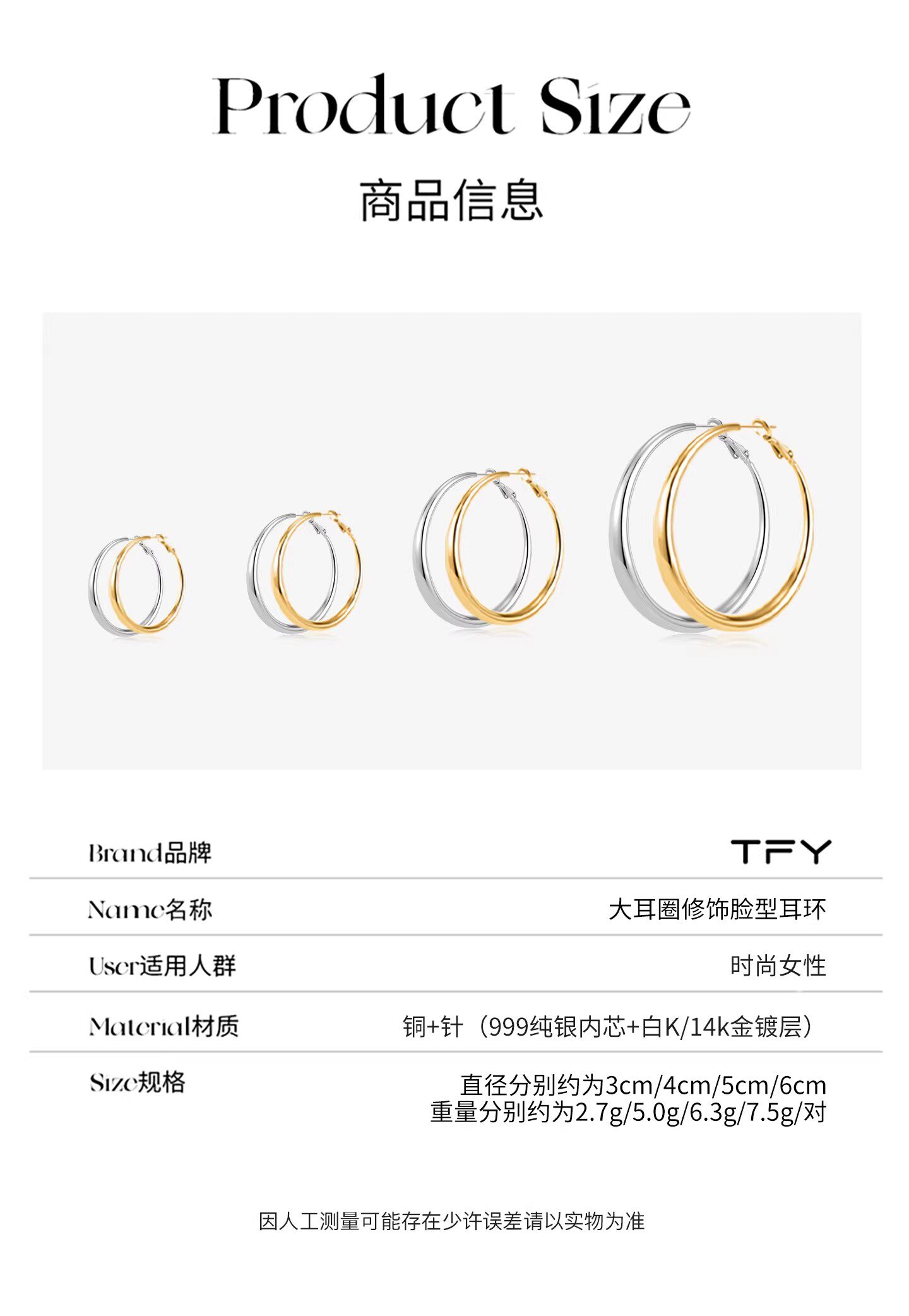 Ning Yizhuo's Same Style Plain Hoop Earrings for Women 2026 New Popular High-End Large Hoop Circle Earrings Exaggerated Hoops