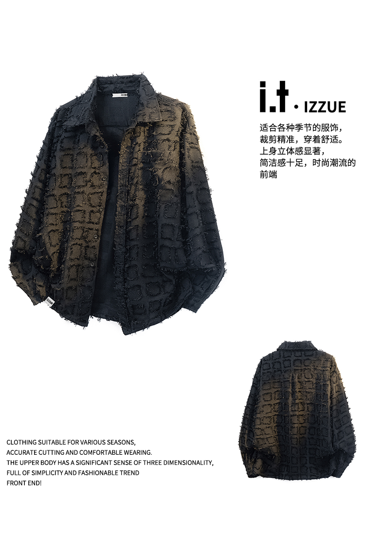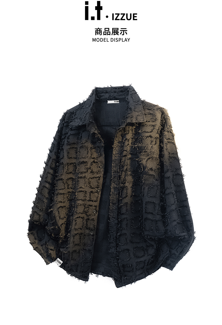 It Izzue Trendy Brand Tassel Shirt for Men 2025 Autumn New Loose Casual Versatile Long-Sleeve Top Y