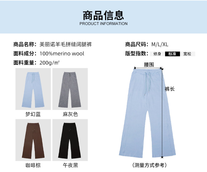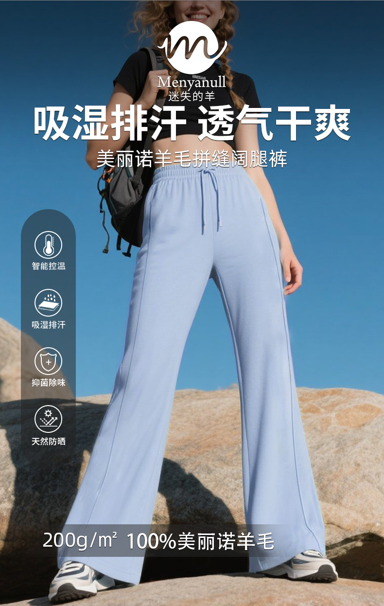 Lost Sheep Merino Wool Spring and Autumn Breathable Flared Wide-Leg Pants 100% Merino Wool Outdoor Sports Pants